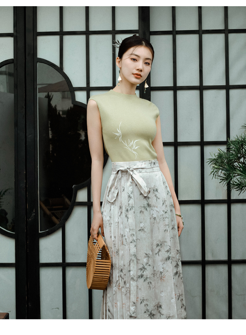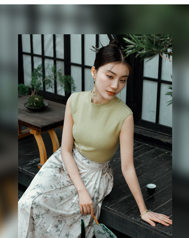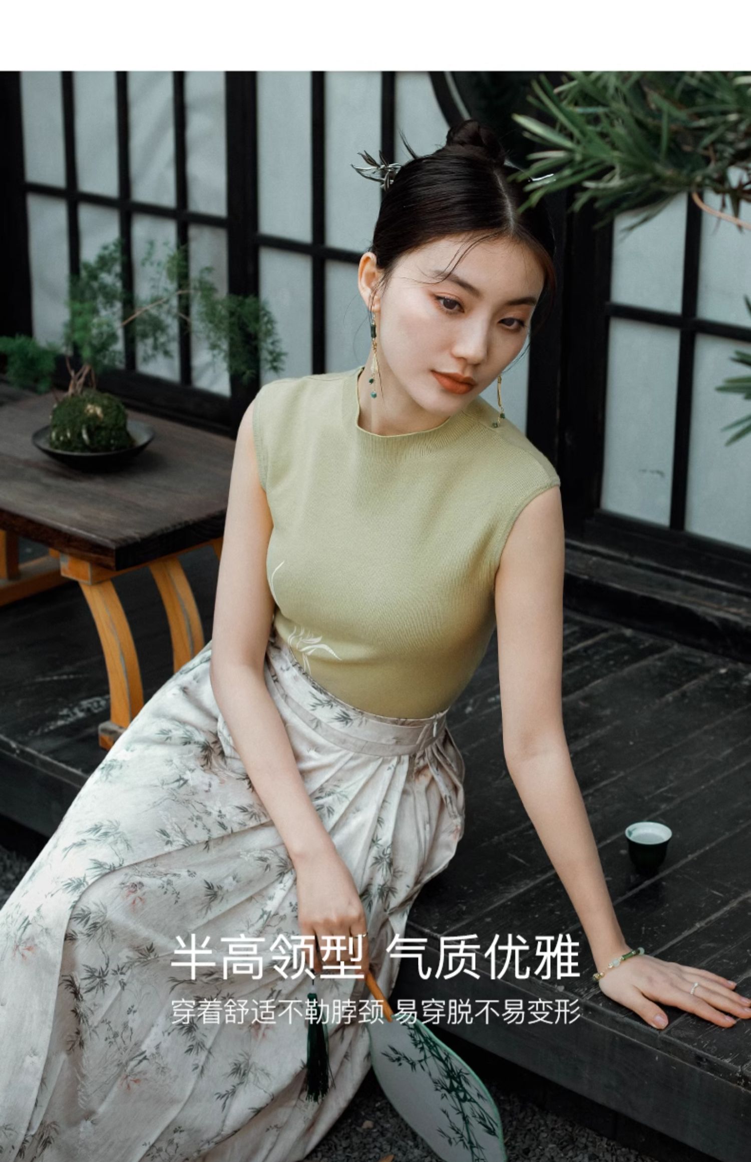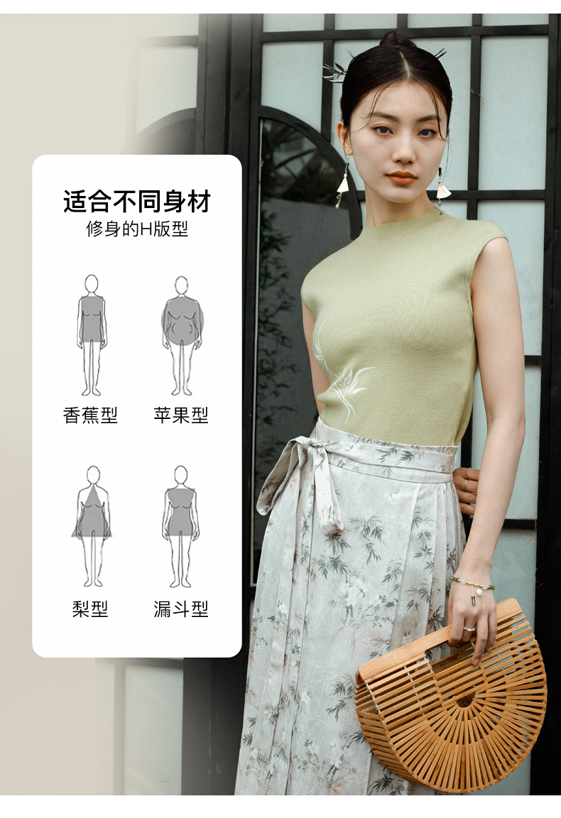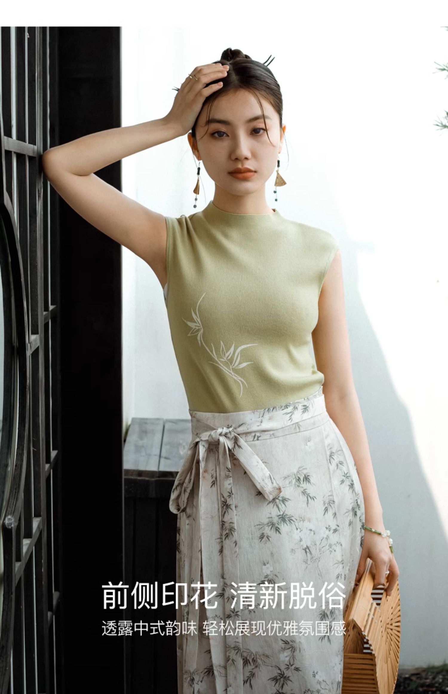OLrain欧芮儿绿色针织衫女春季2024年新款新中式国风刺绣背心