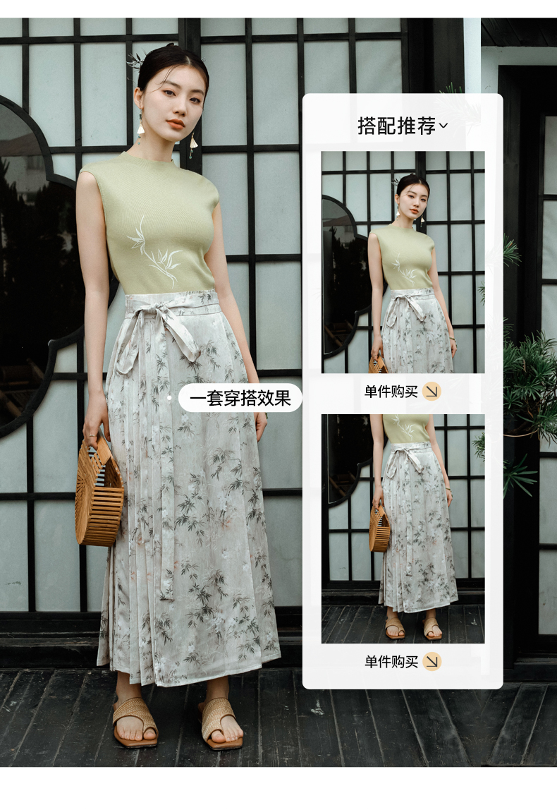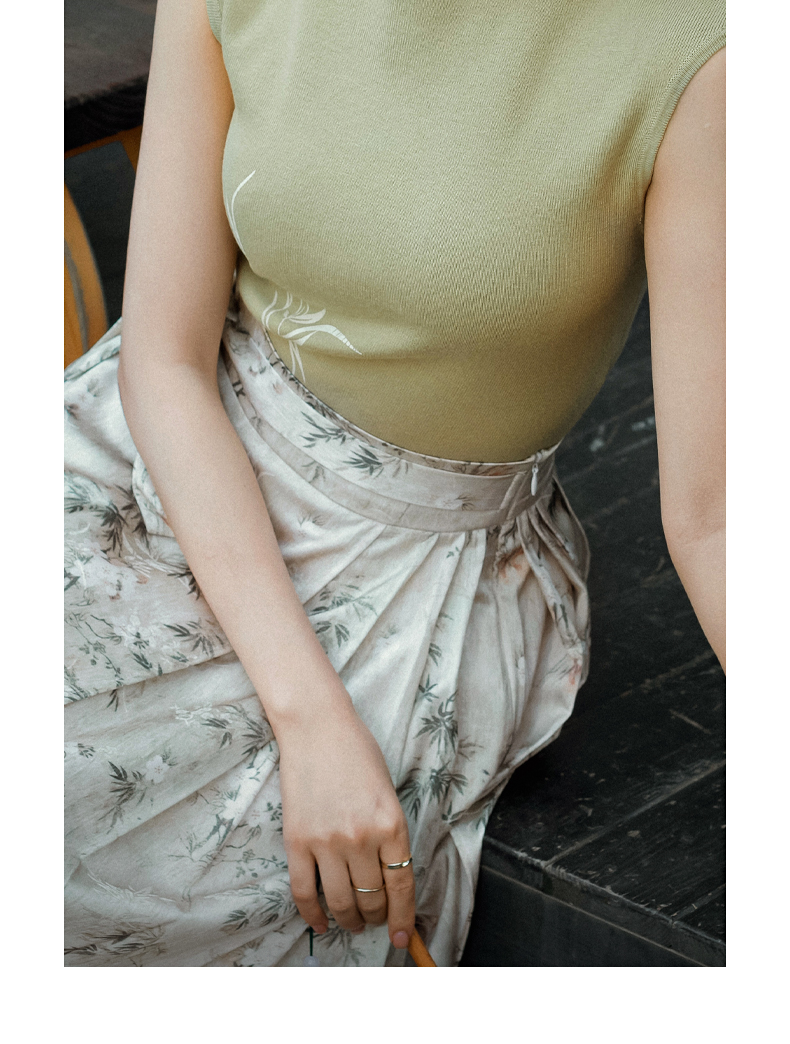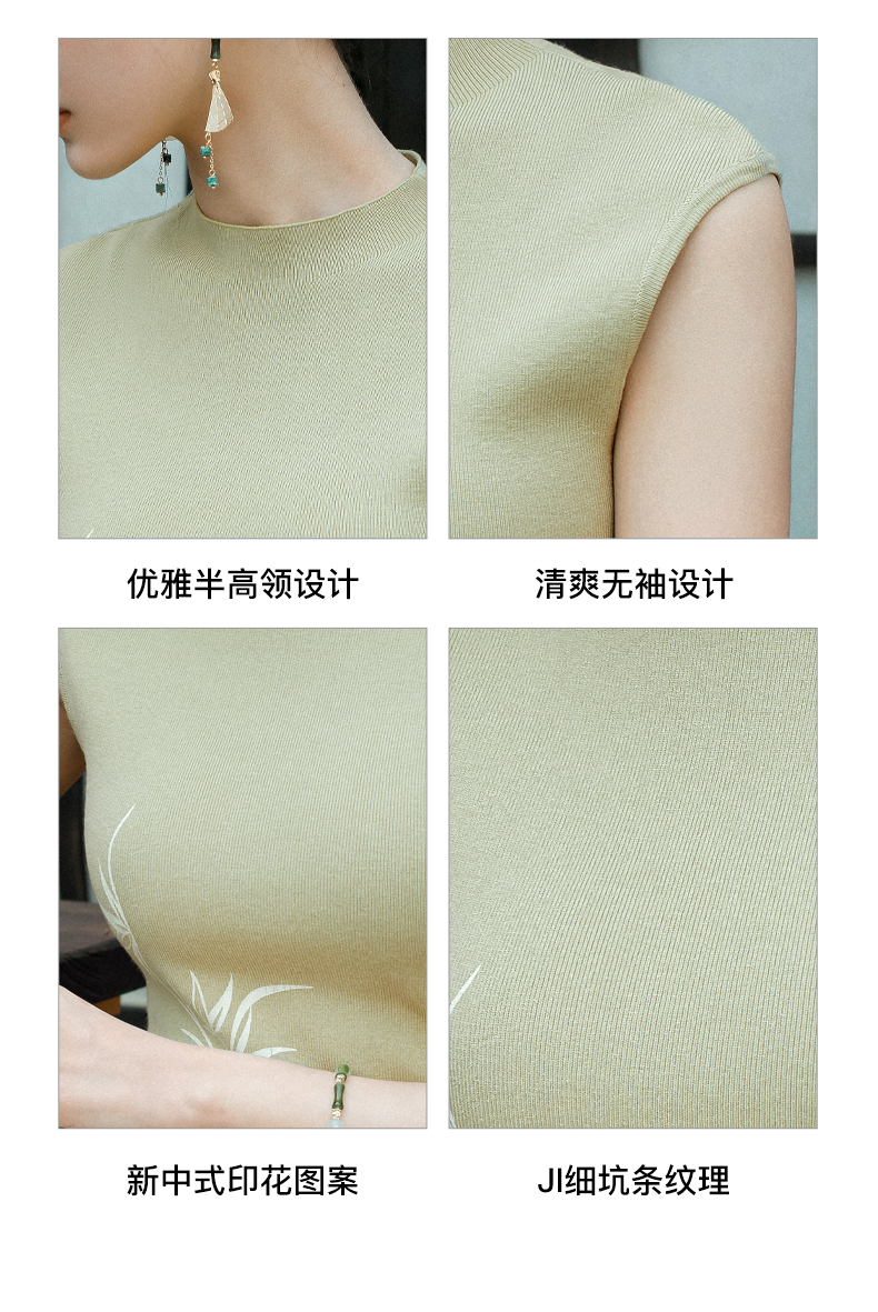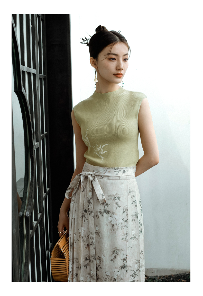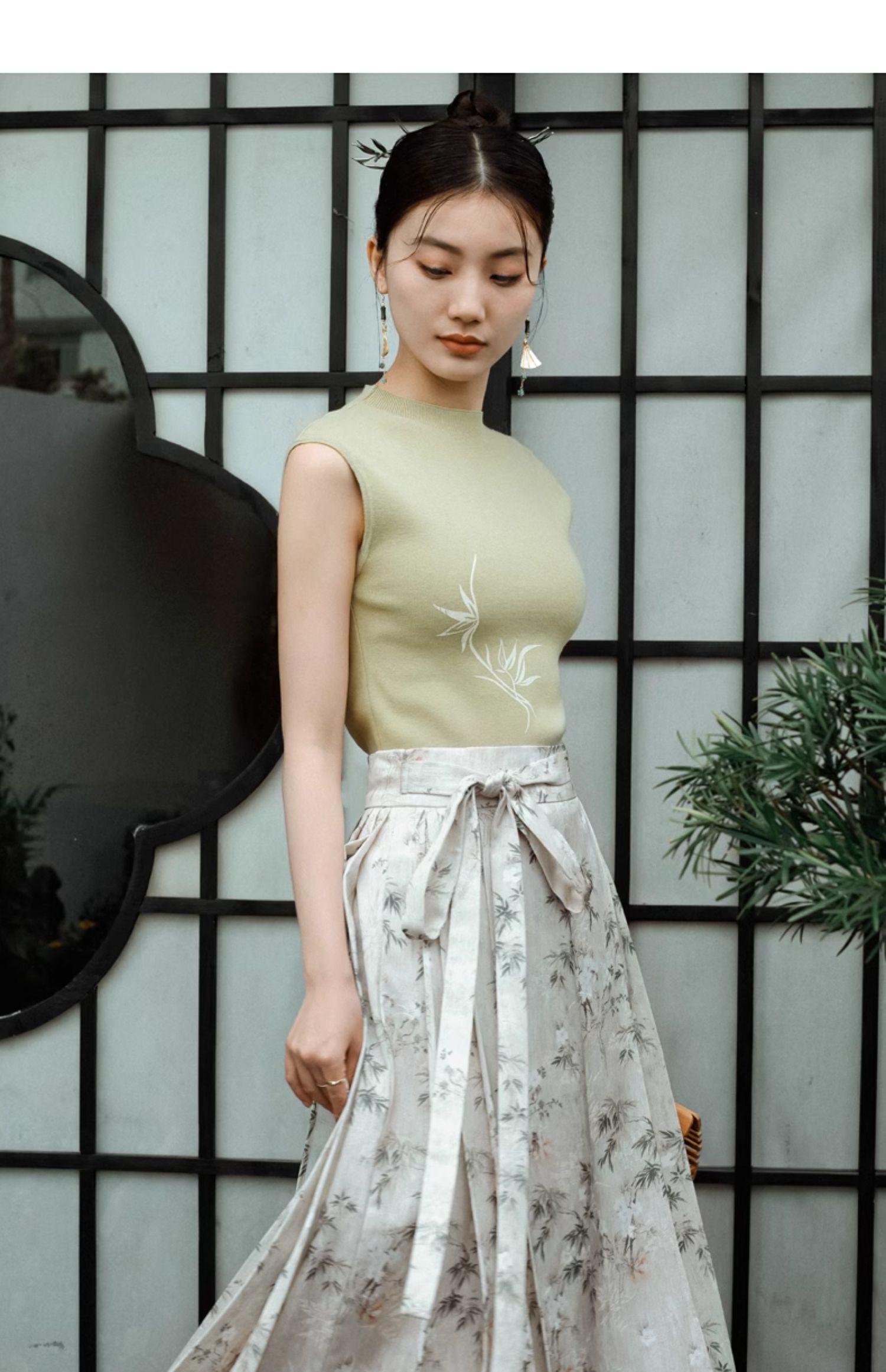 OLrain欧芮儿绿色针织衫女春季2024年新款新中式国风刺绣背心