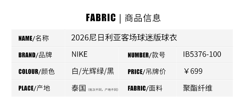 SFS耐克Nike2026尼日利亚客场球迷版球衣短袖足球服 IB5376-100