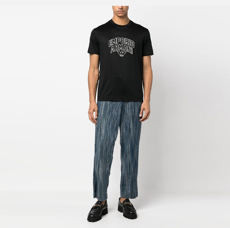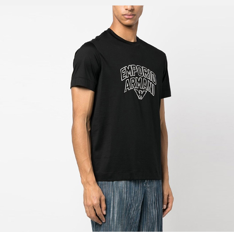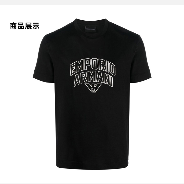 EMPORIO ARMANI 阿玛尼 男士字母徽标印花圆领短袖T恤 黑色 3R1TBF 1JUVZ 0999