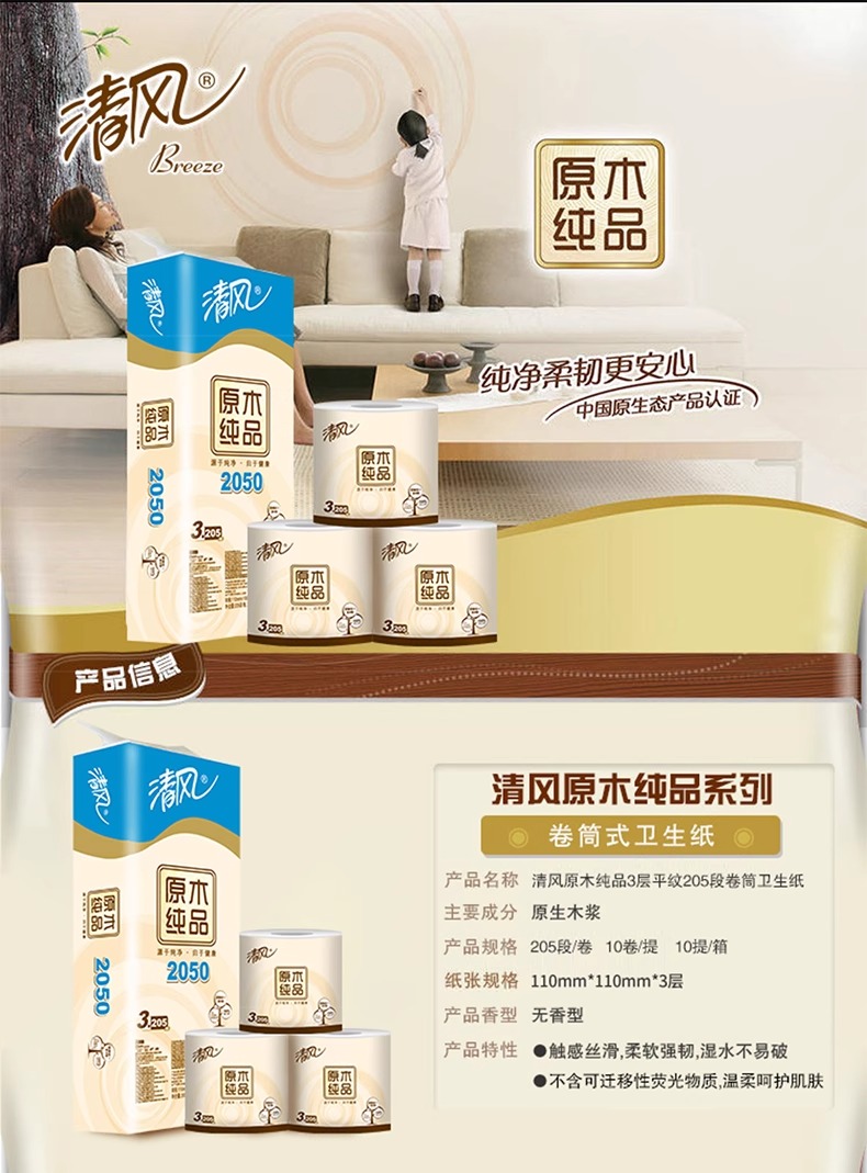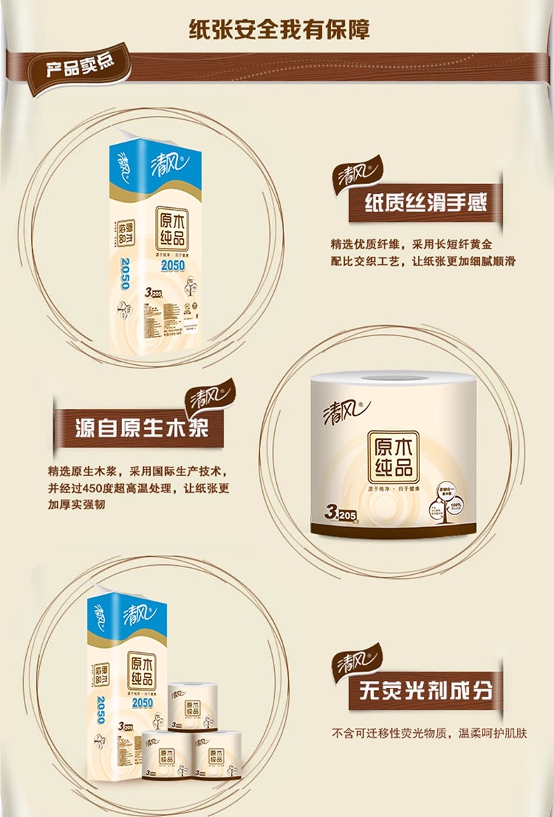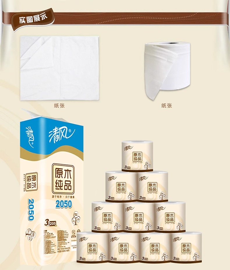 【秒杀】清风原木纯品3层110g卷筒卫生纸10卷