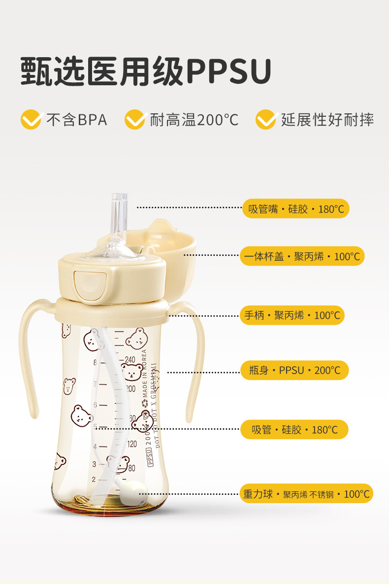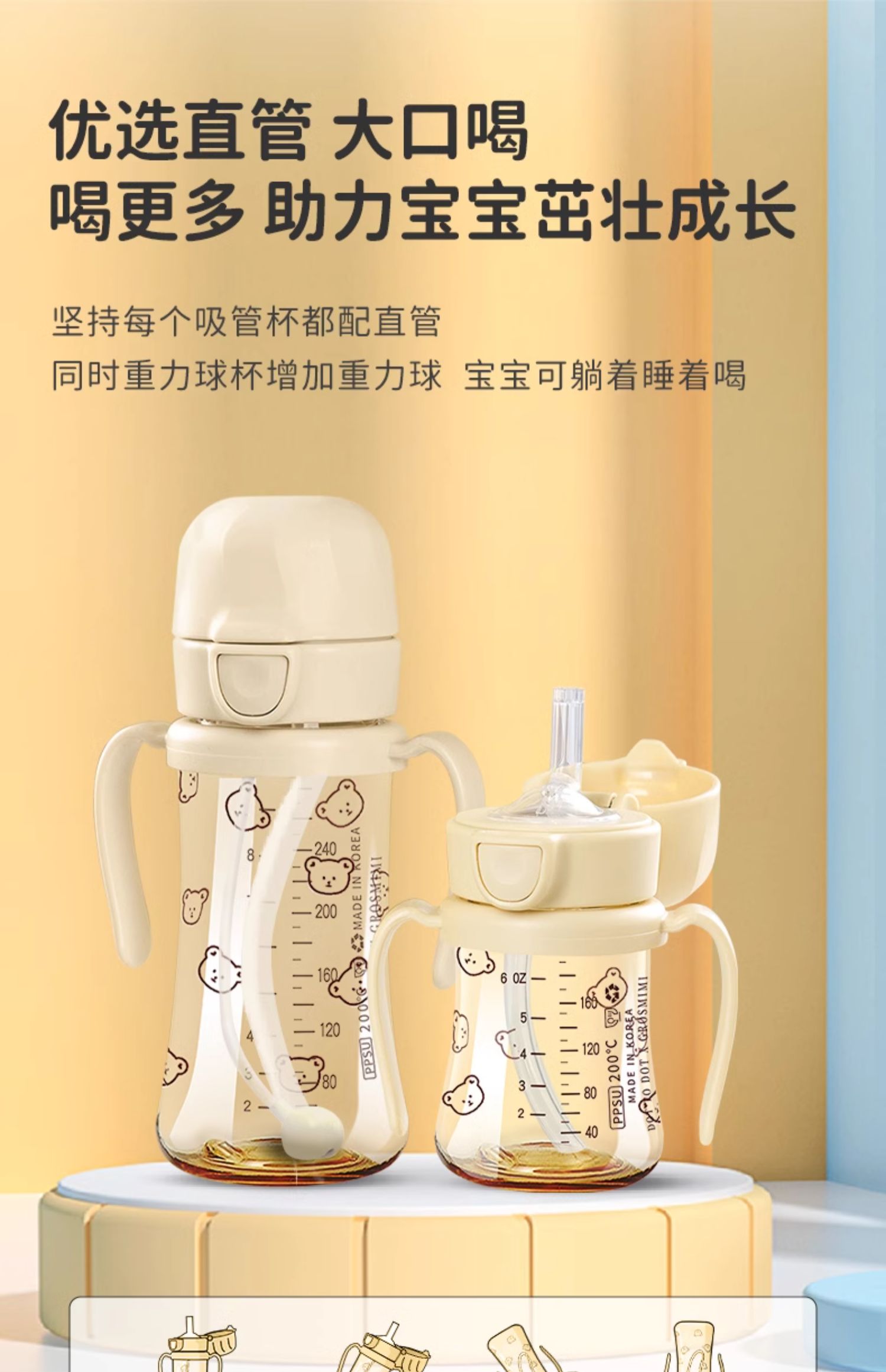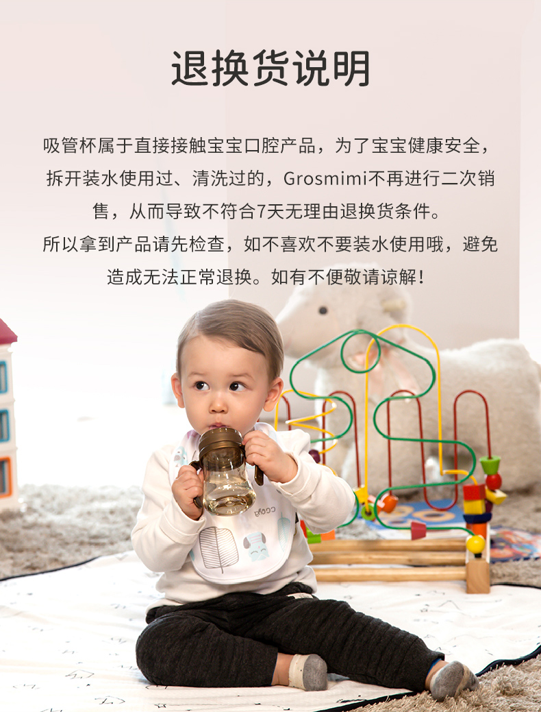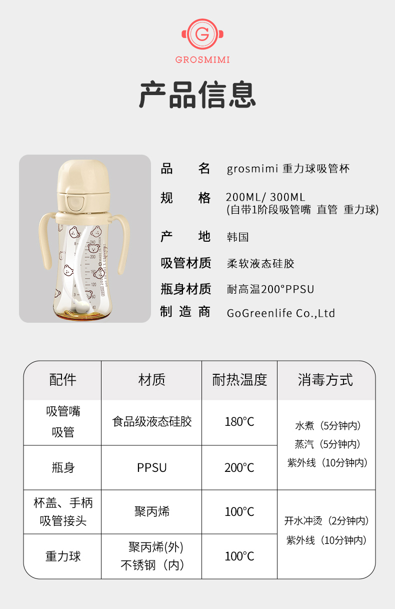 格罗咪咪Grosmimi韩国进口吸管杯宝宝奶瓶婴儿童防呛学饮喝水杯GLM-87450/GLM-87474/GLM-87696