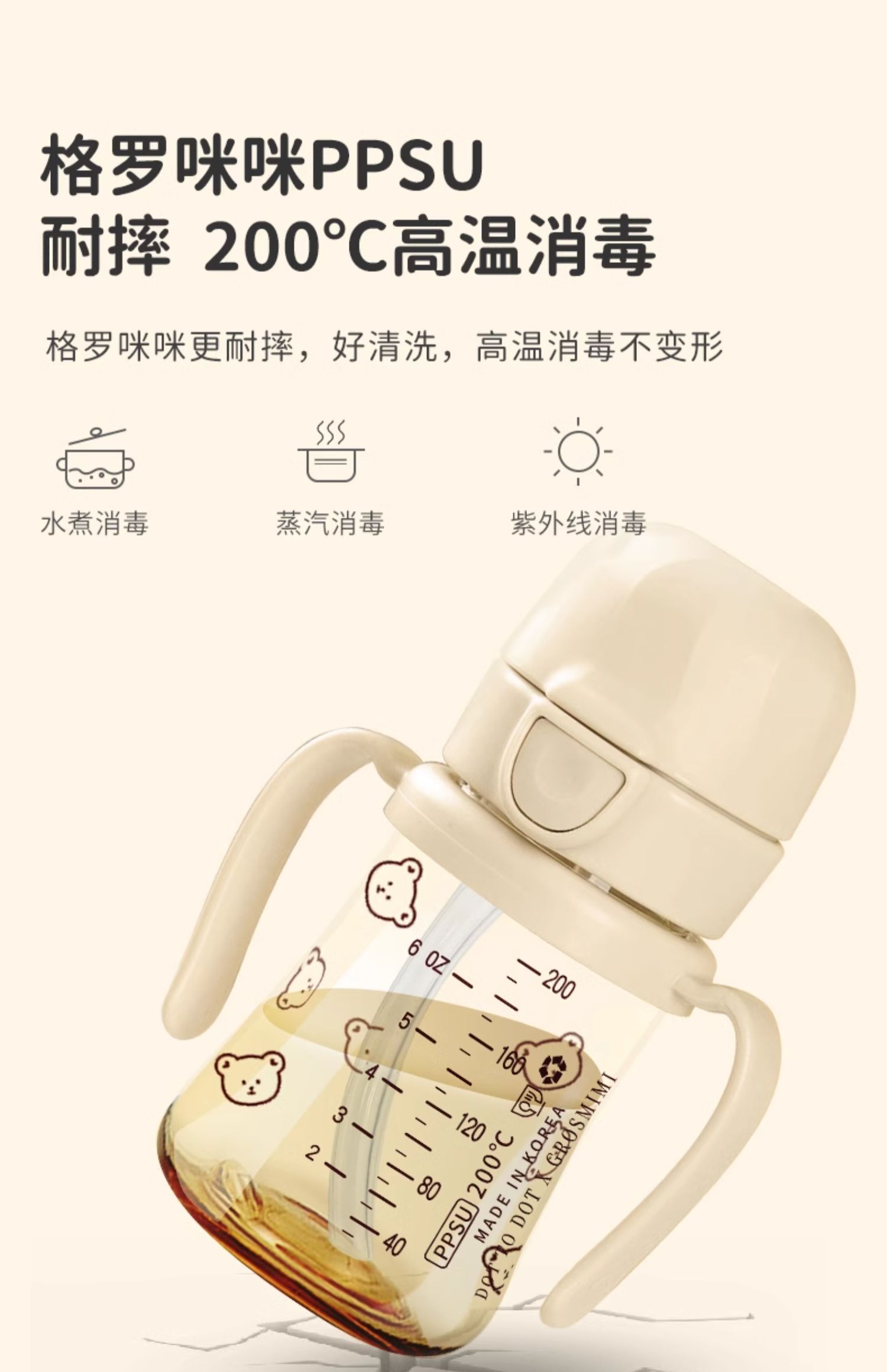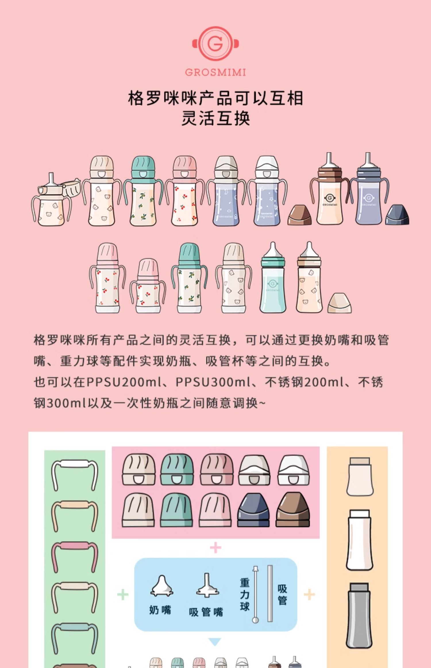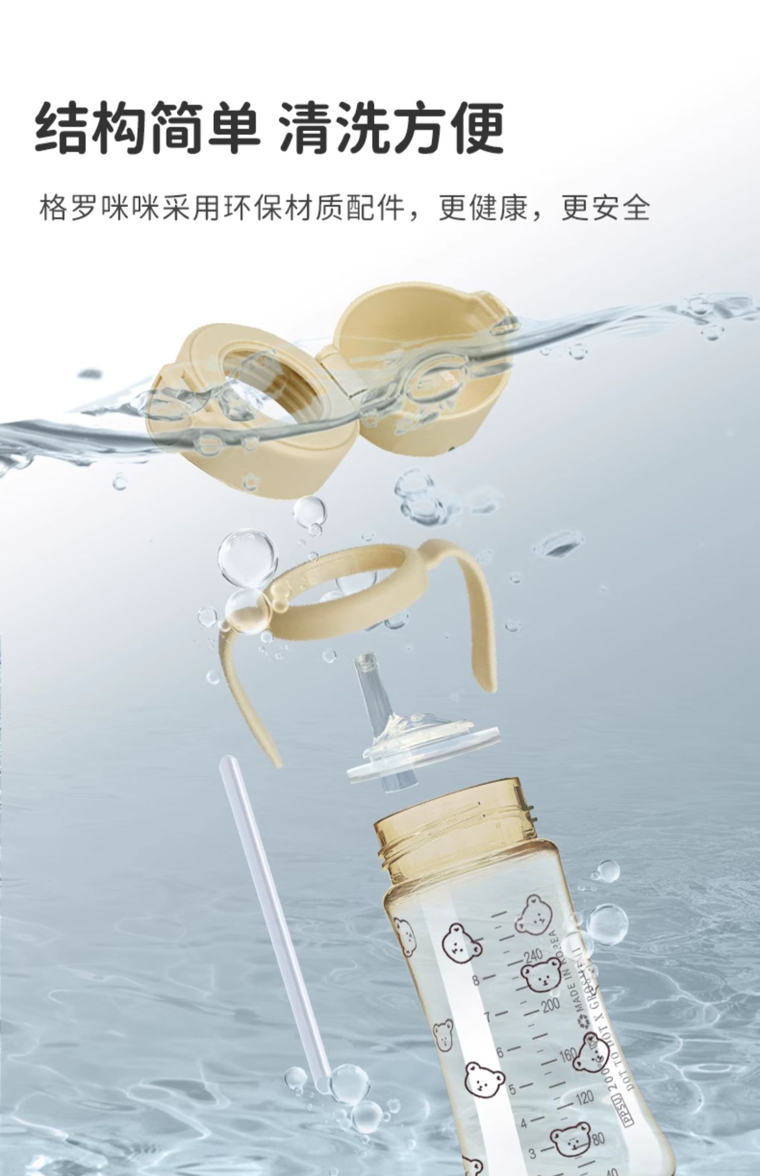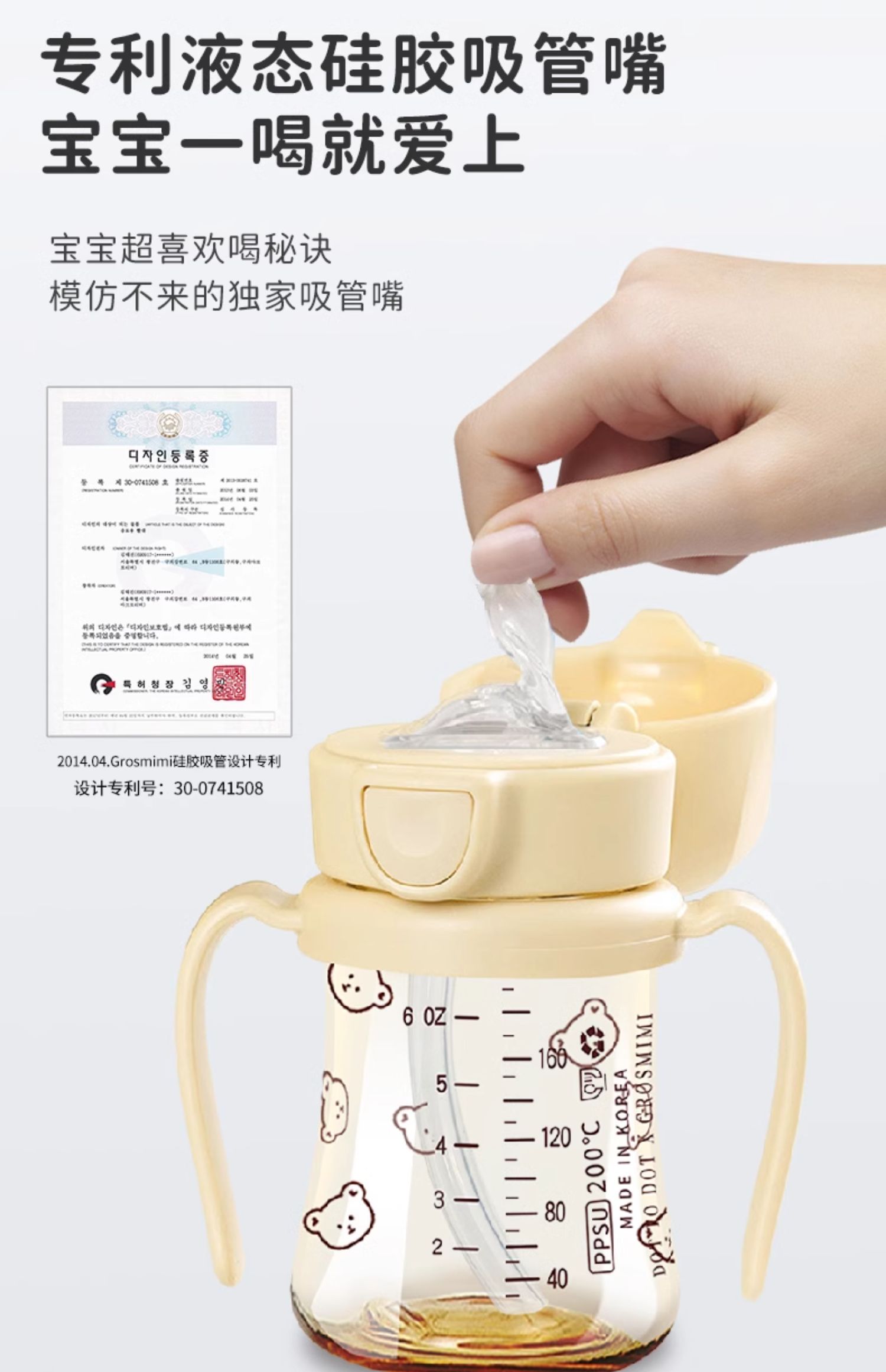 格罗咪咪Grosmimi韩国进口吸管杯宝宝奶瓶婴儿童防呛学饮喝水杯GLM-87450/GLM-87474/GLM-87696