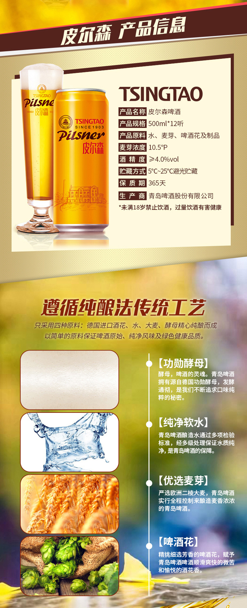 皮尔森10.5度 500ml*12罐 啤酒 青岛啤酒 包邮