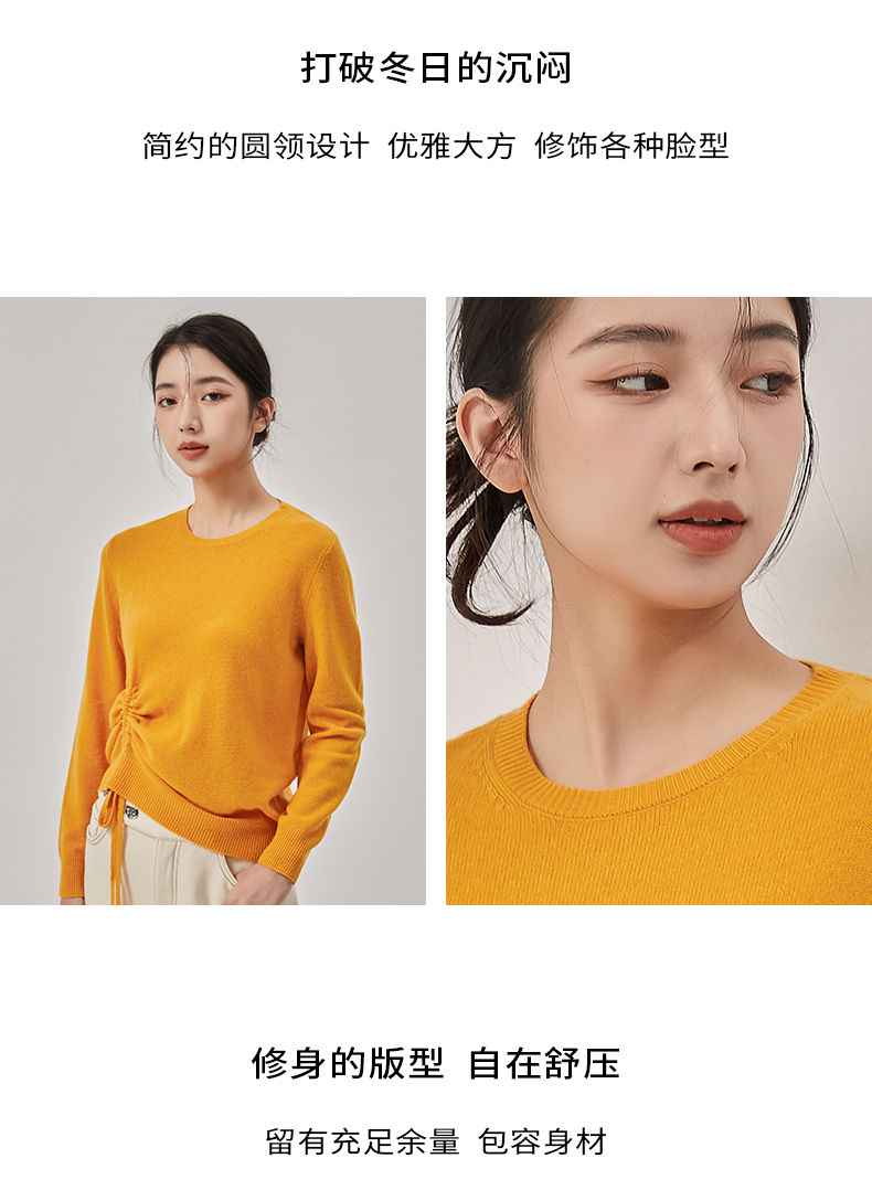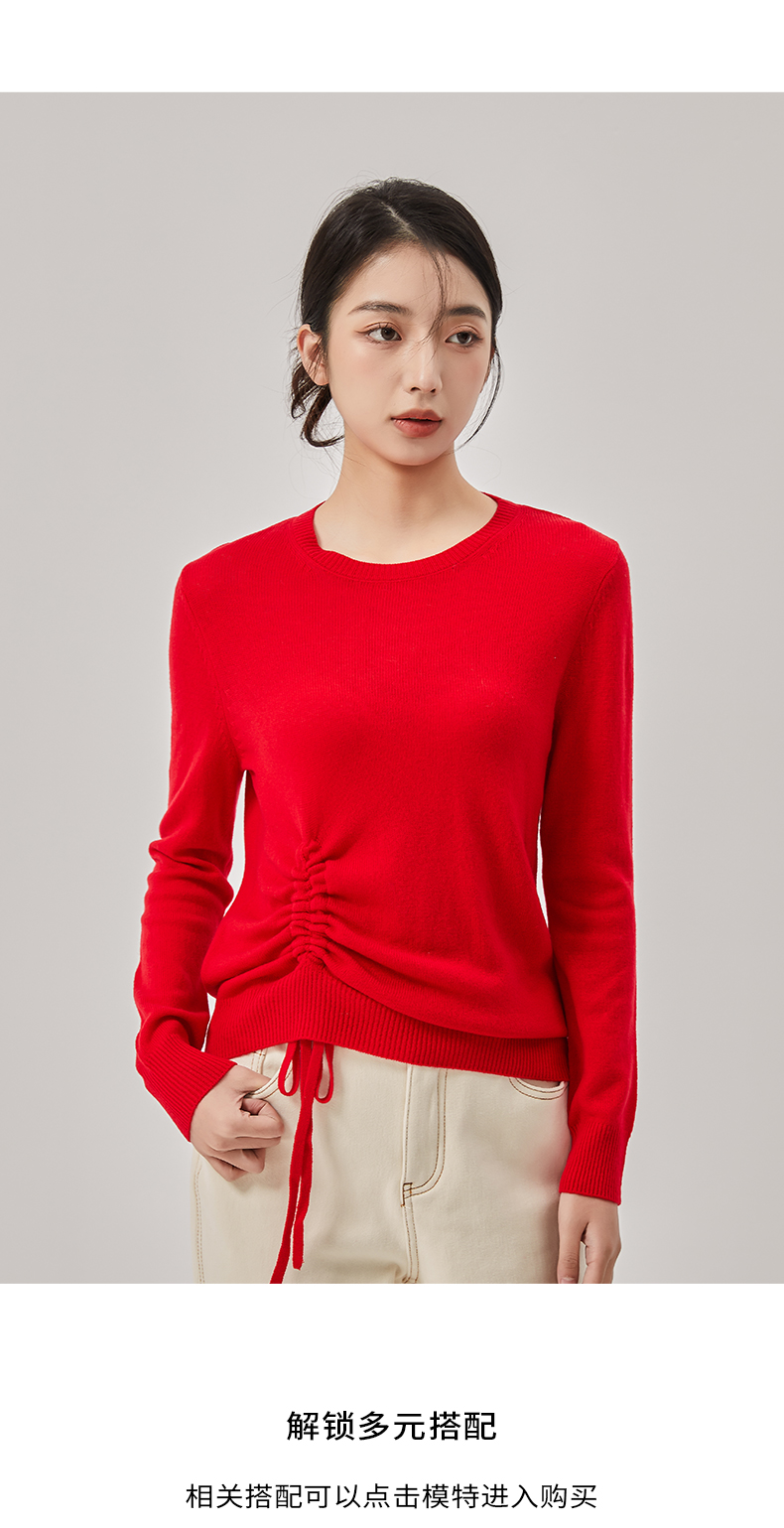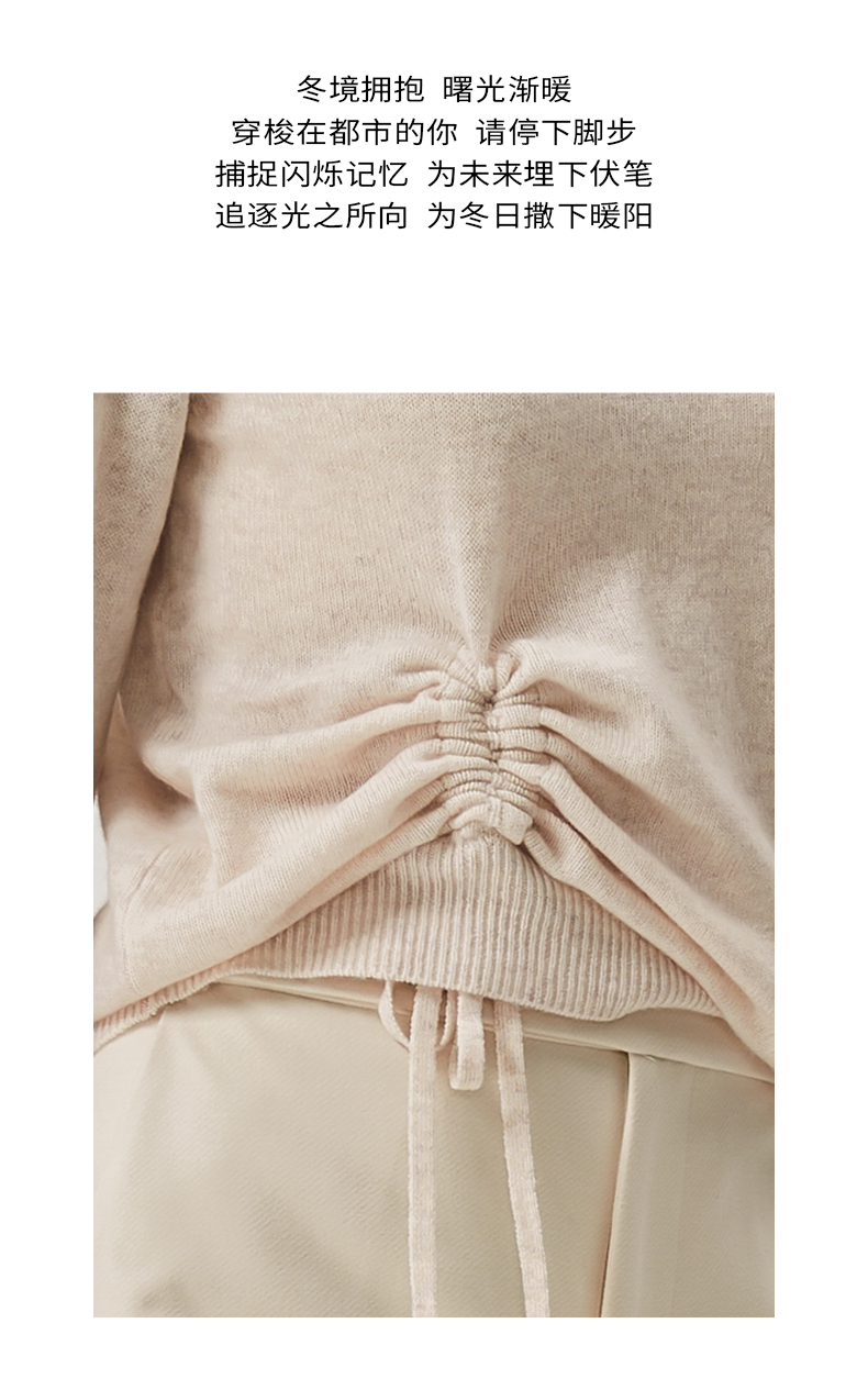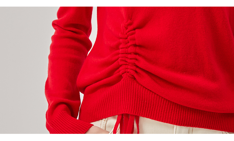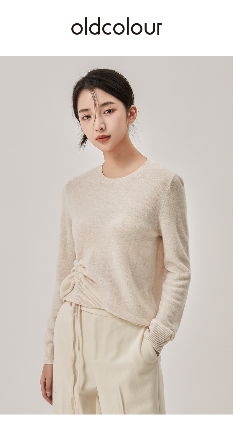 oldcolour冬季新款修身显瘦抽褶打底羊毛针织衫女O42052225