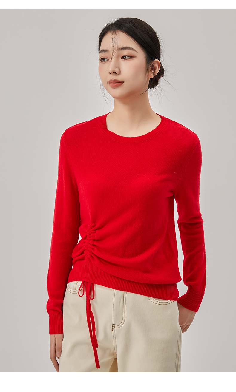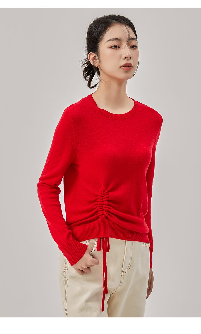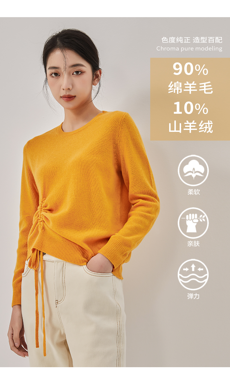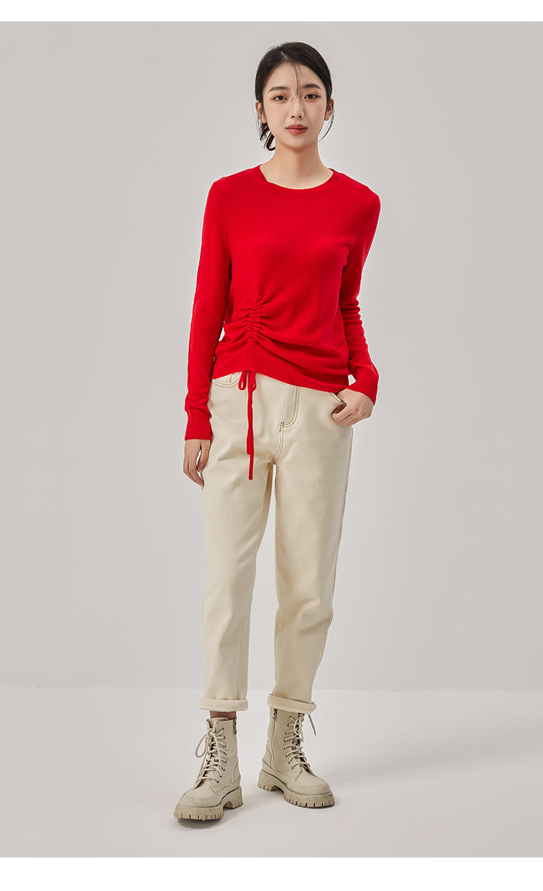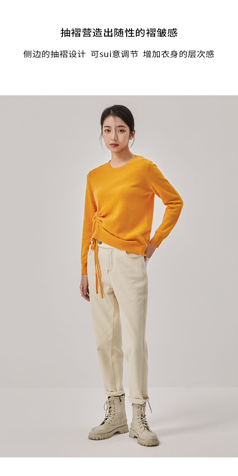 oldcolour冬季新款修身显瘦抽褶打底羊毛针织衫女O42052225