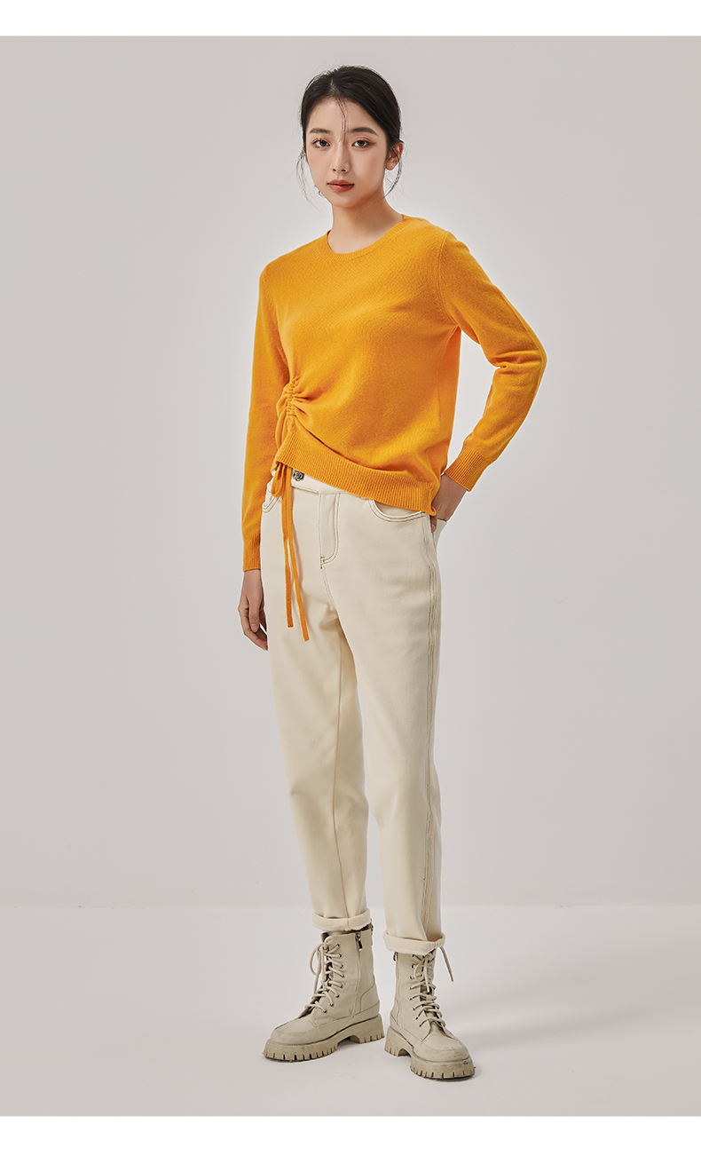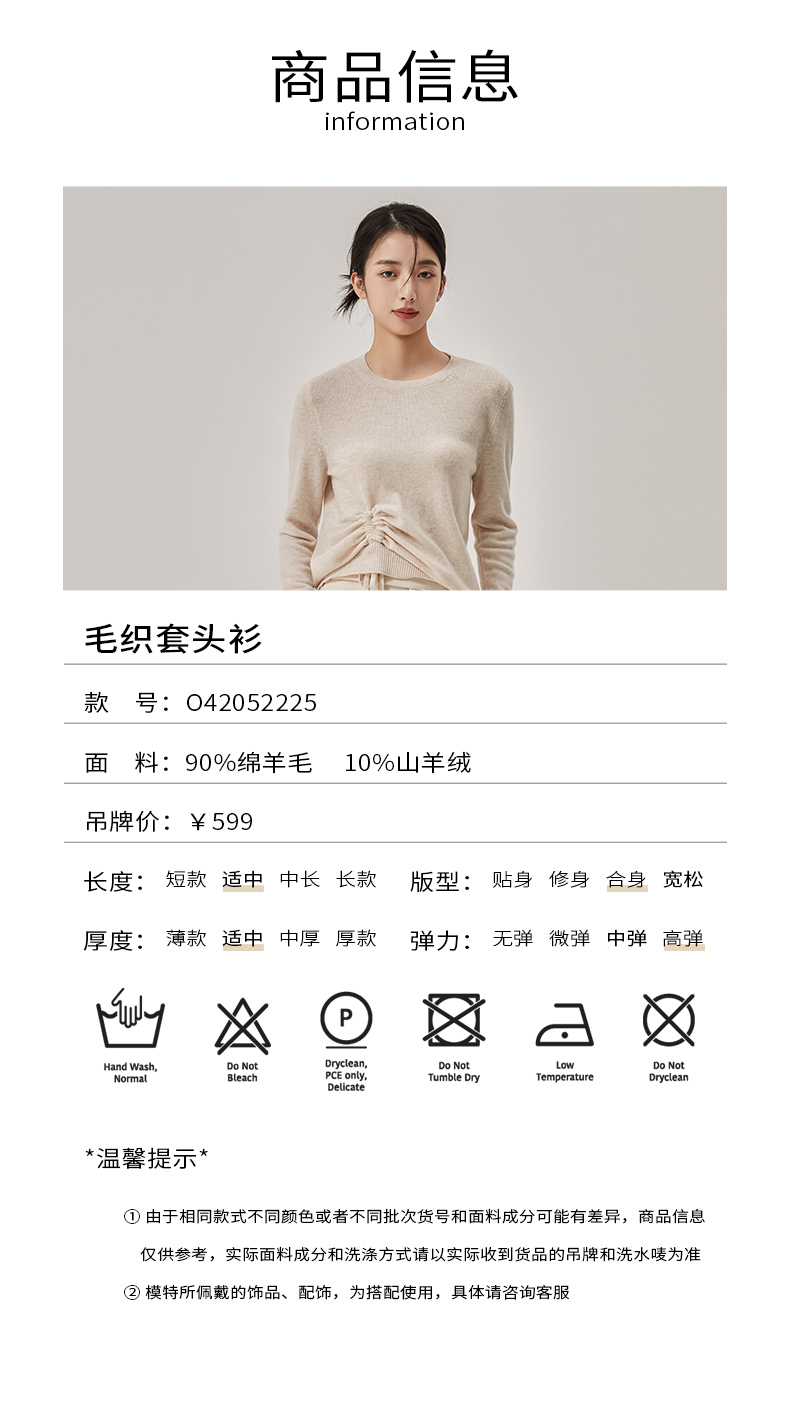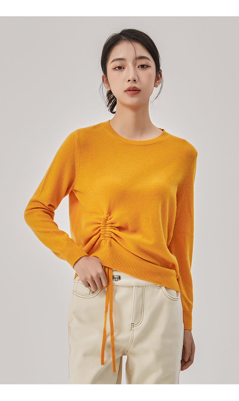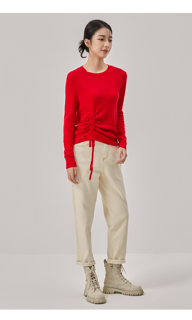 oldcolour冬季新款修身显瘦抽褶打底羊毛针织衫女O42052225