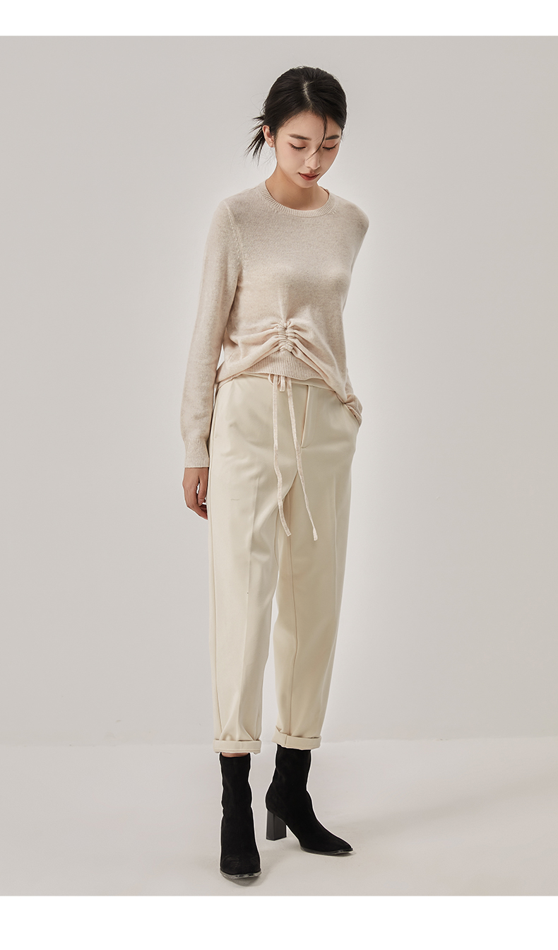 oldcolour欧珂夏季纯色抽绳弹力松紧腰休闲阔腿裤女P25073107