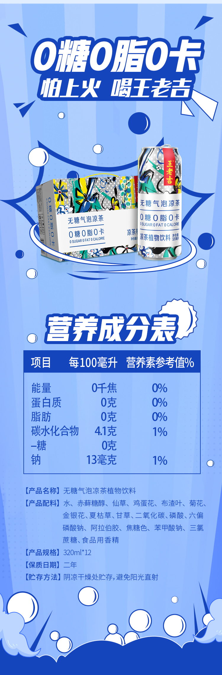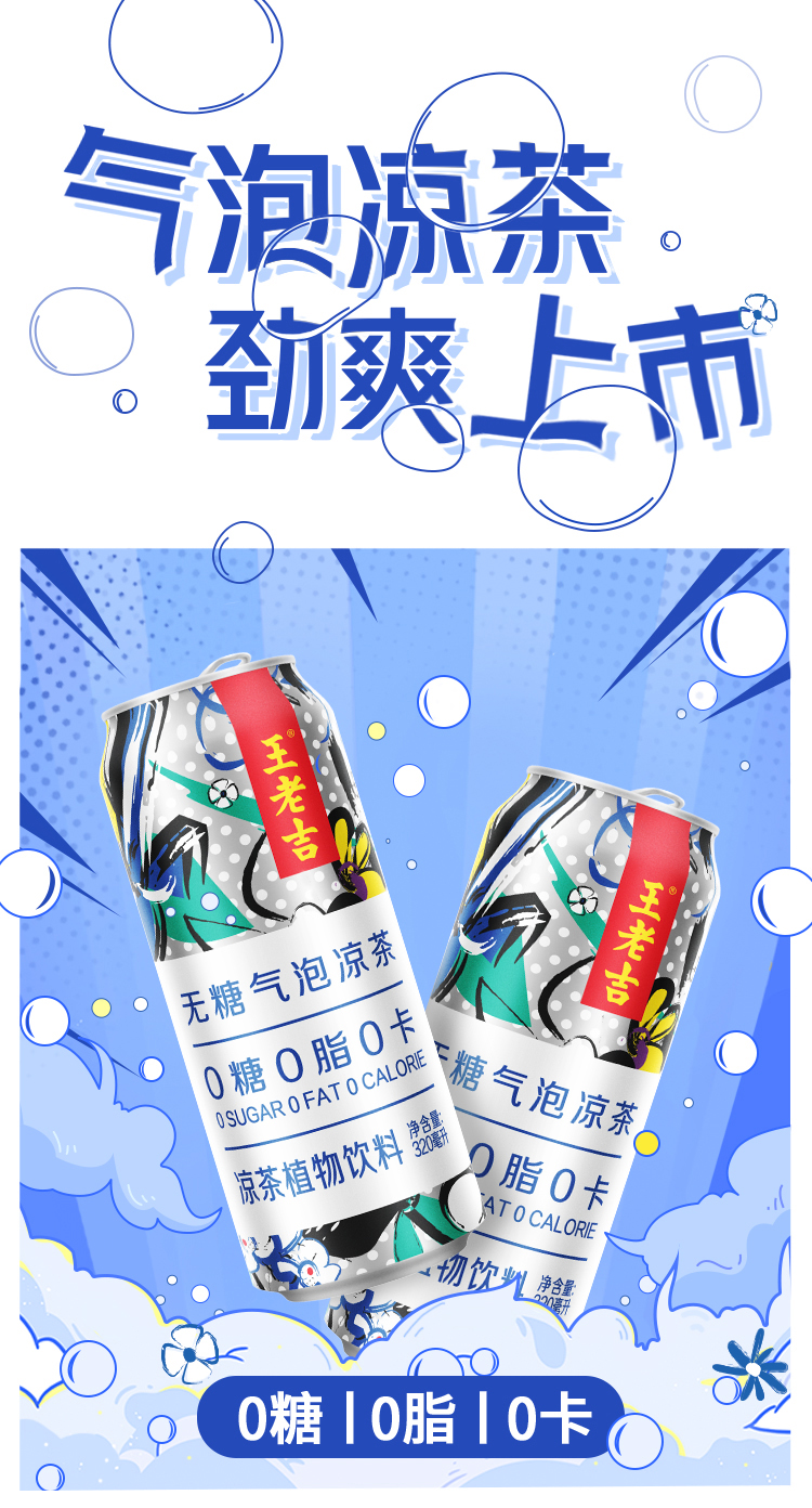 王老吉 无糖 气泡 凉茶 310ml*12罐 0糖0脂0卡 解辣腻 包邮 新老包装随机发货
