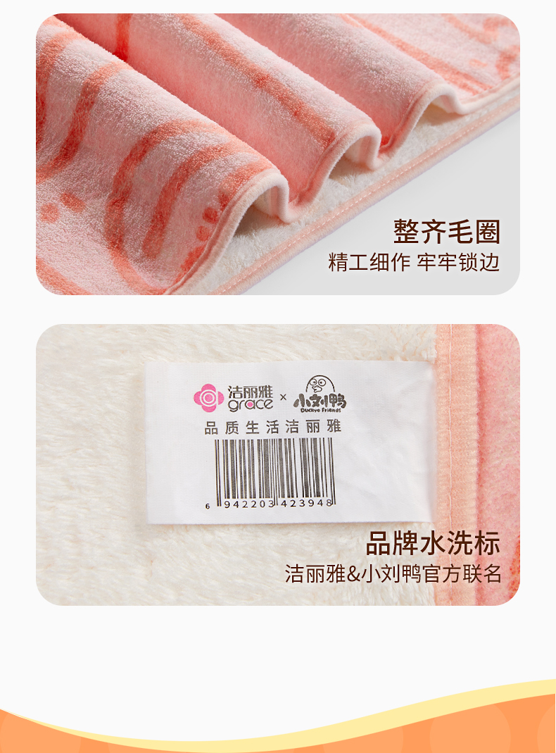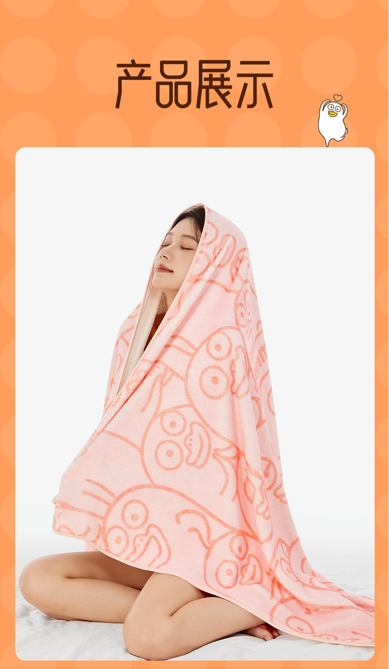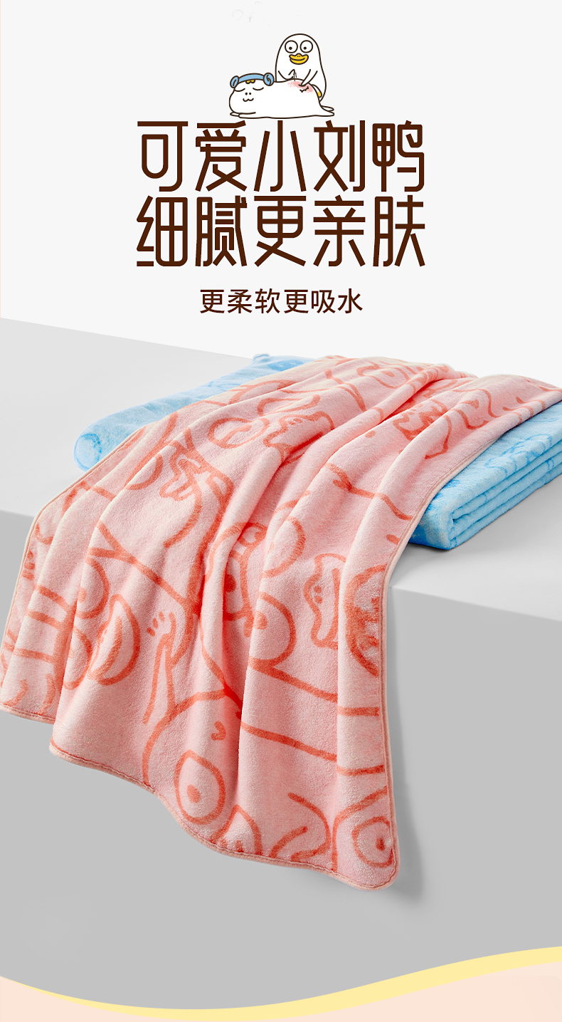 洁丽雅浴巾洗澡女家用全棉不易掉毛A类吸水擦澡巾可爱
