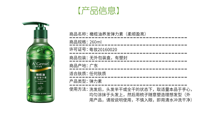 安安金纯橄榄油养发弹力素(柔顺盈亮)260ml
