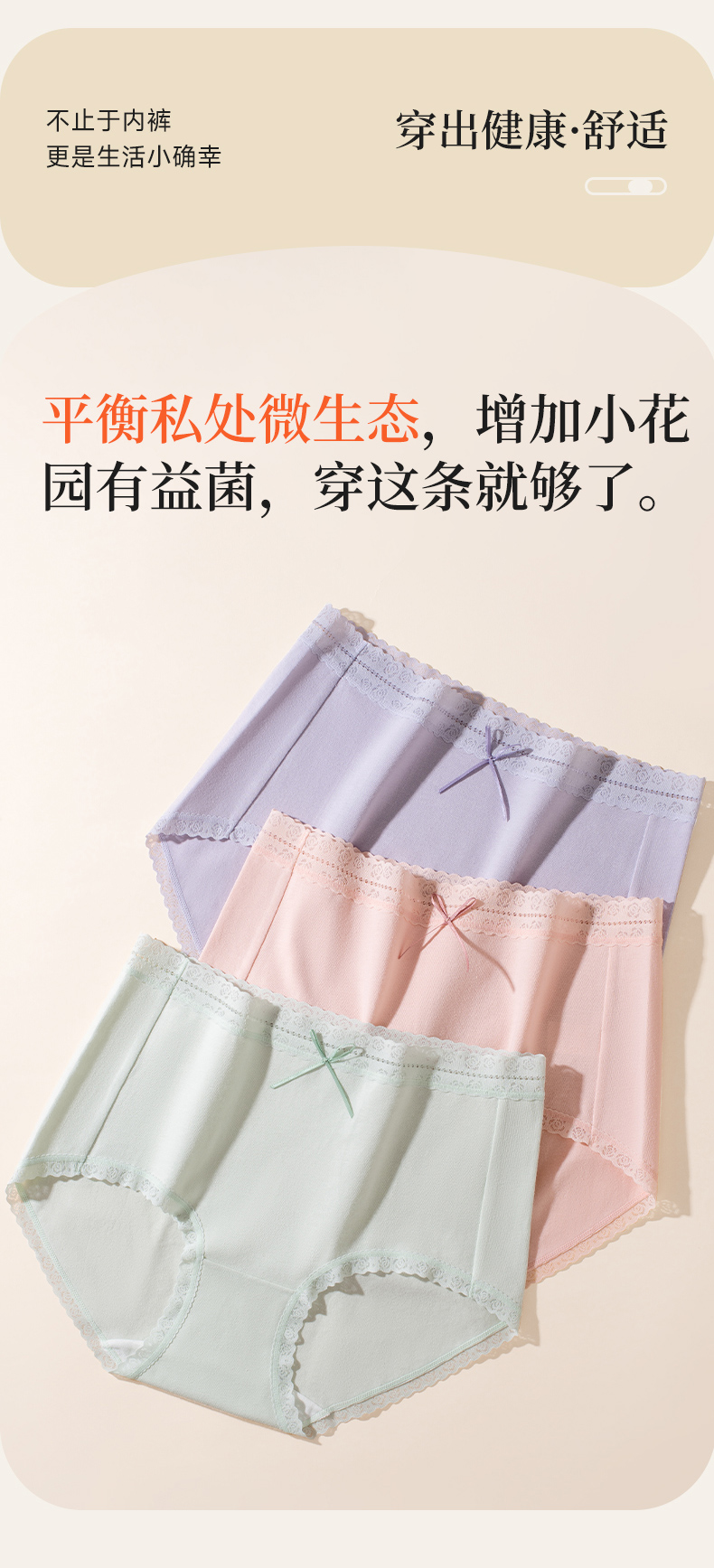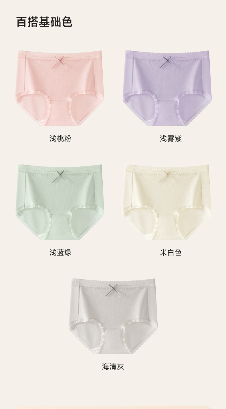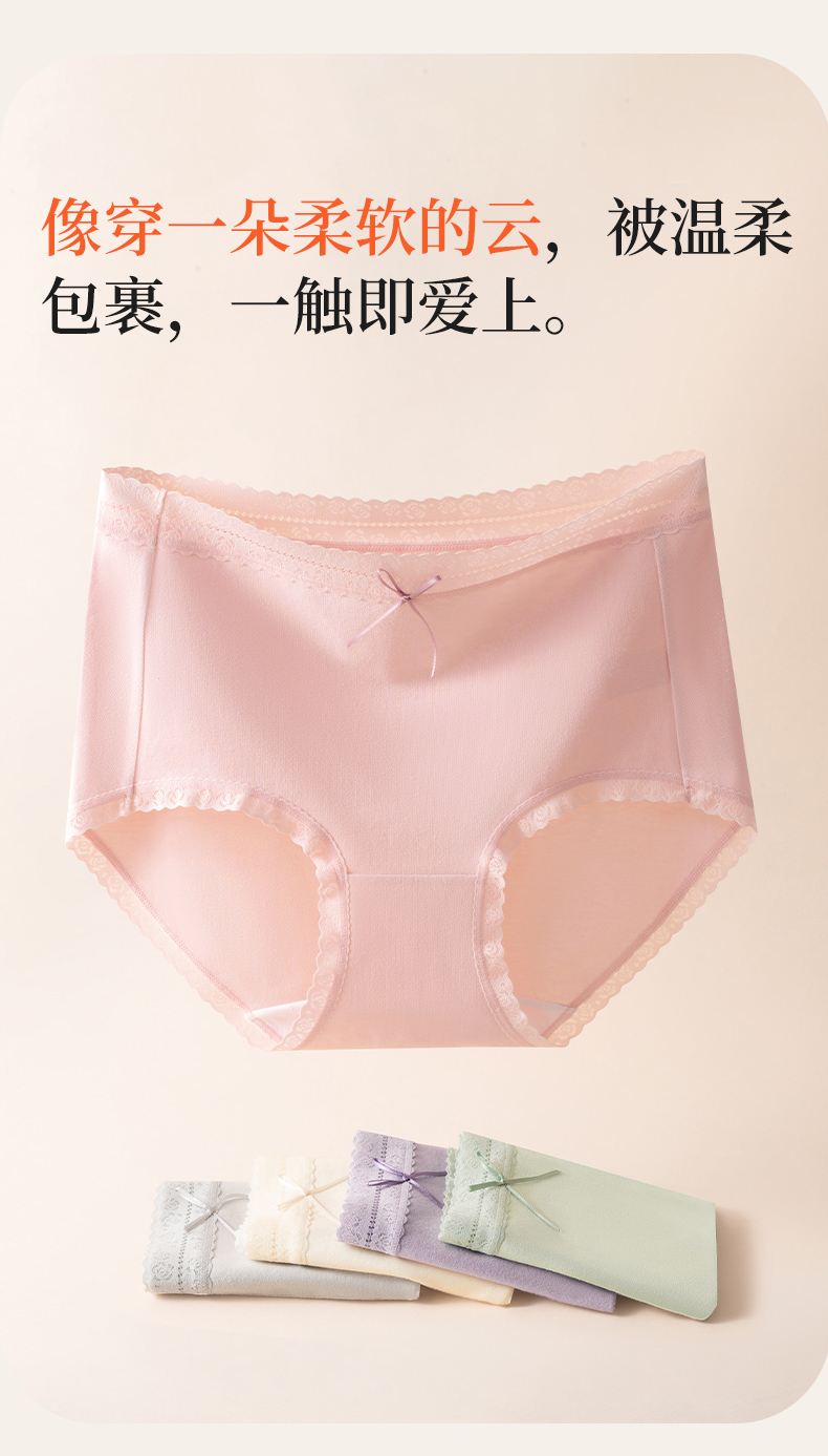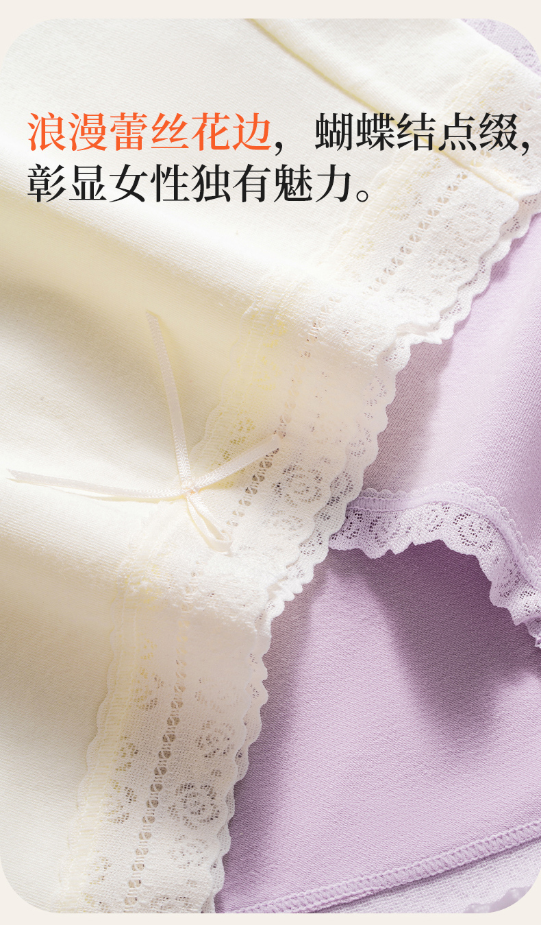 女士长绒棉蕾丝中高腰车缝三角内裤2946