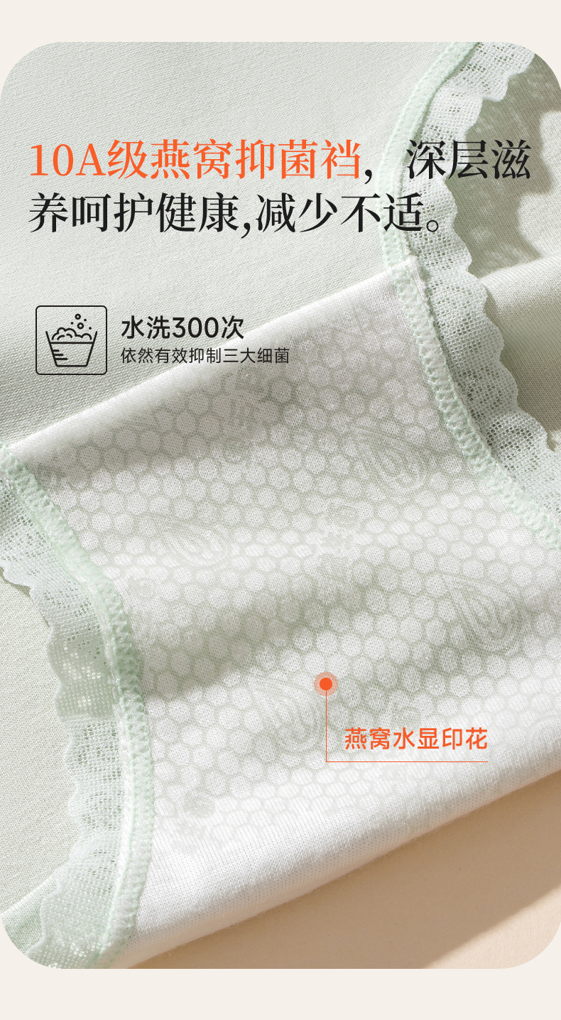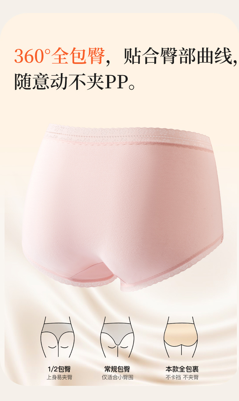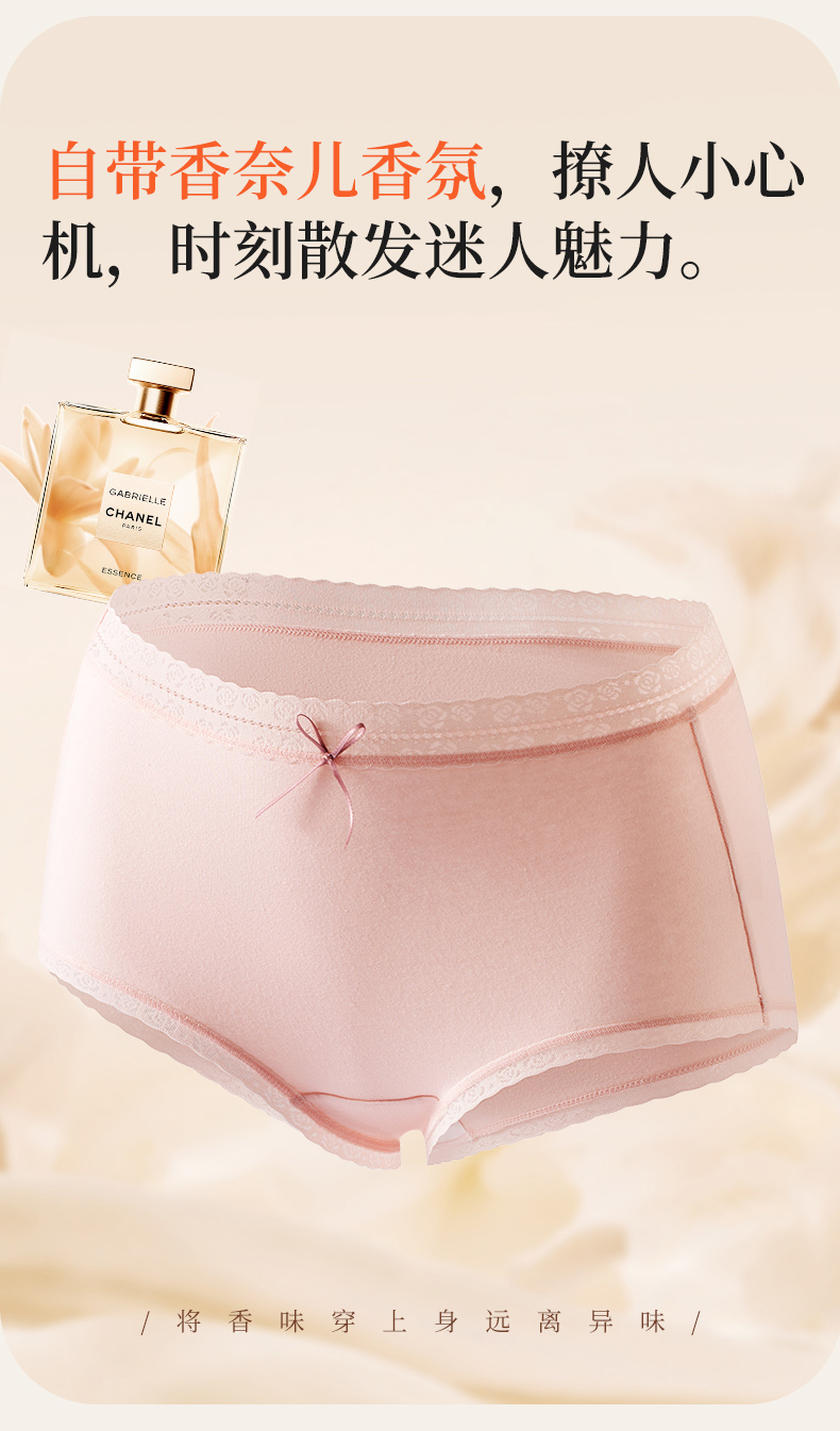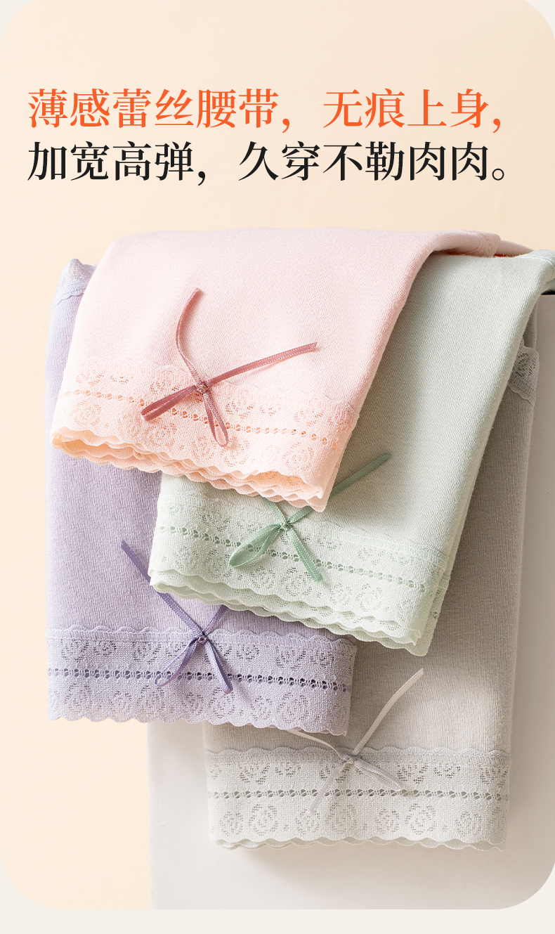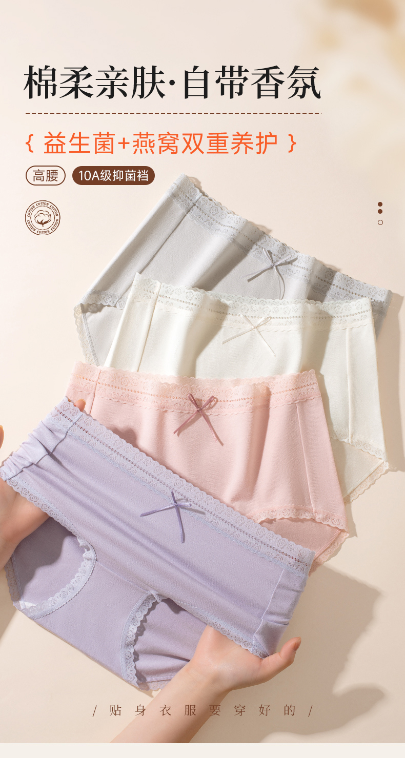 女士长绒棉蕾丝中高腰车缝三角内裤2946
