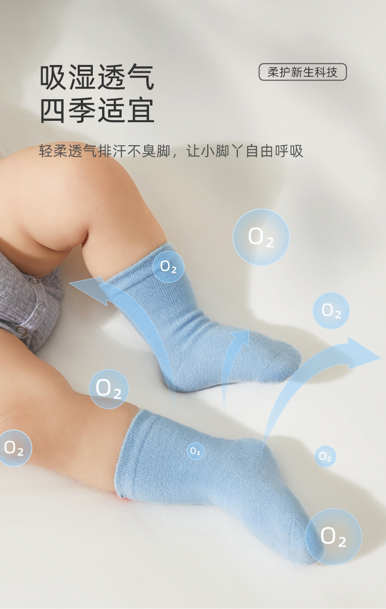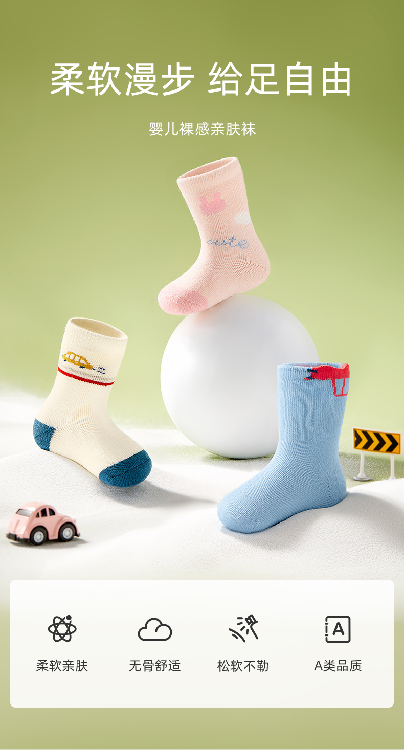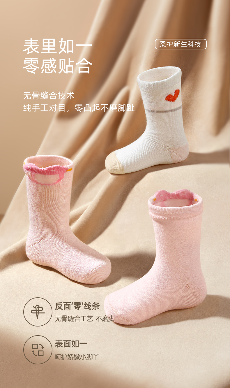 宝宝春秋透气无骨松口婴儿袜3双