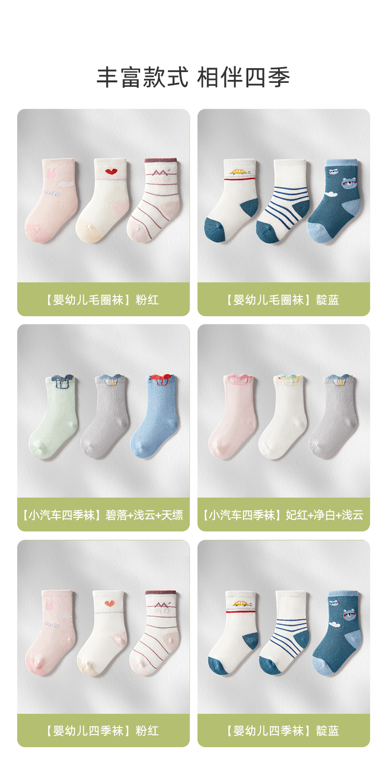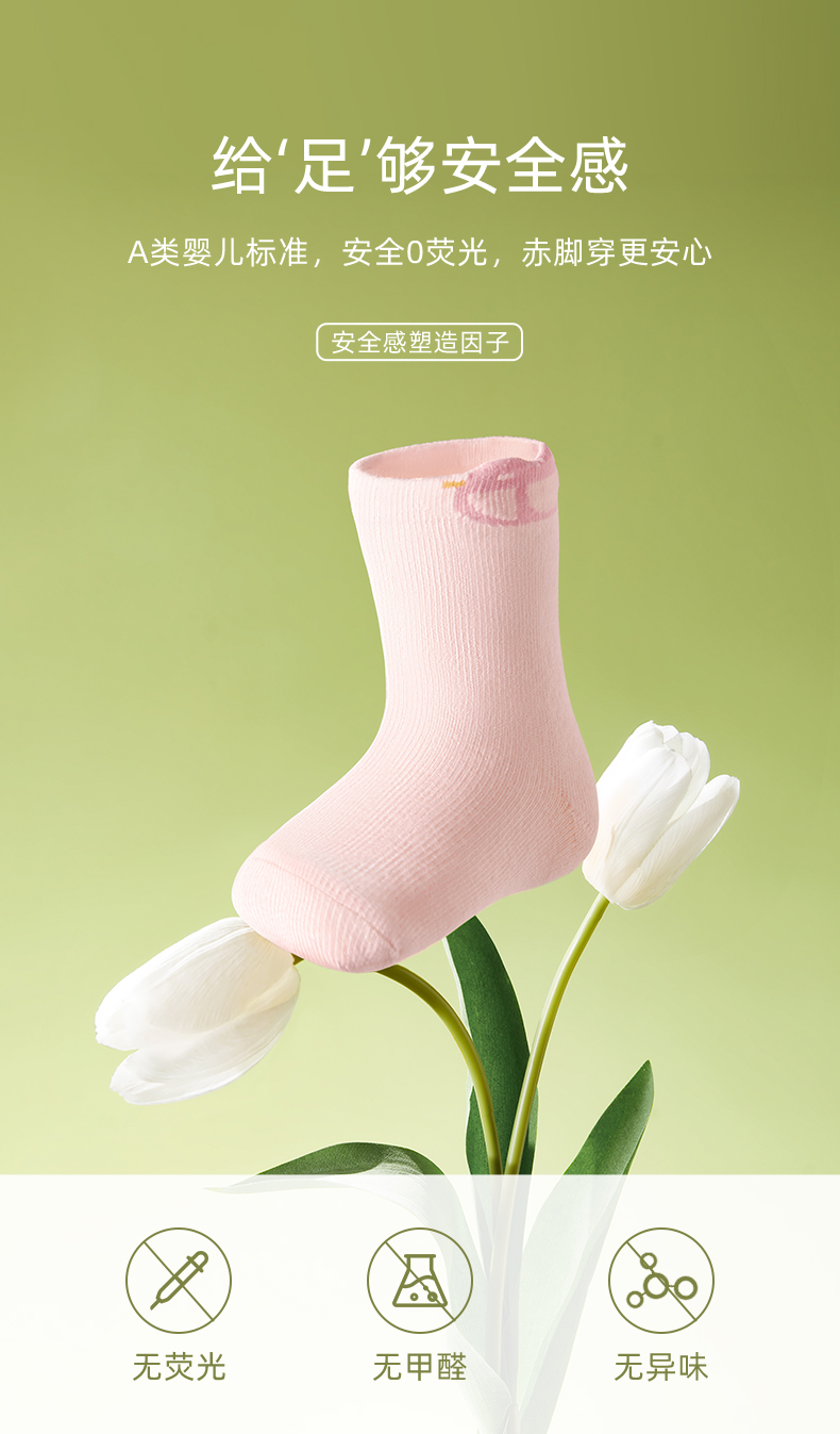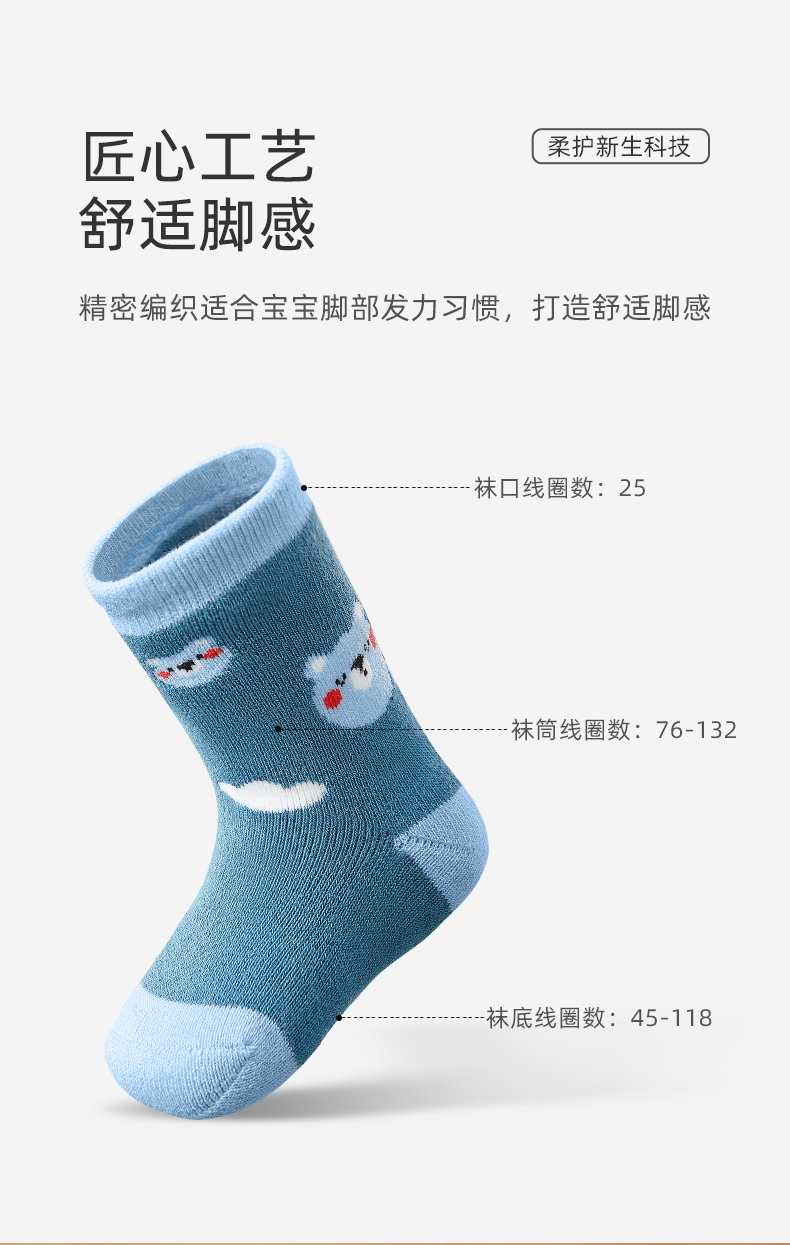 宝宝春秋透气无骨松口婴儿袜3双