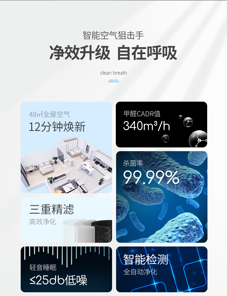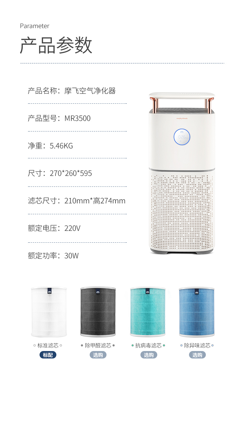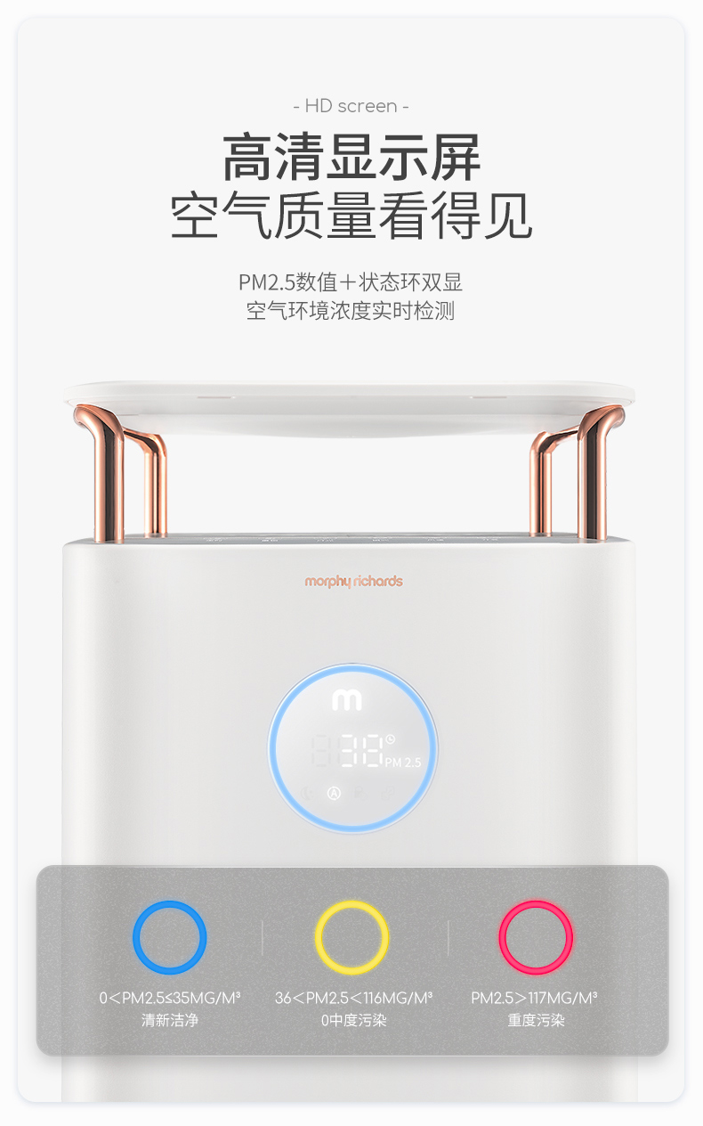 摩飞电器(Morphyrichards)空气净化器 去除甲醛分解 除尘去异味 家用办公室全屋净化新风消毒机 MR3500