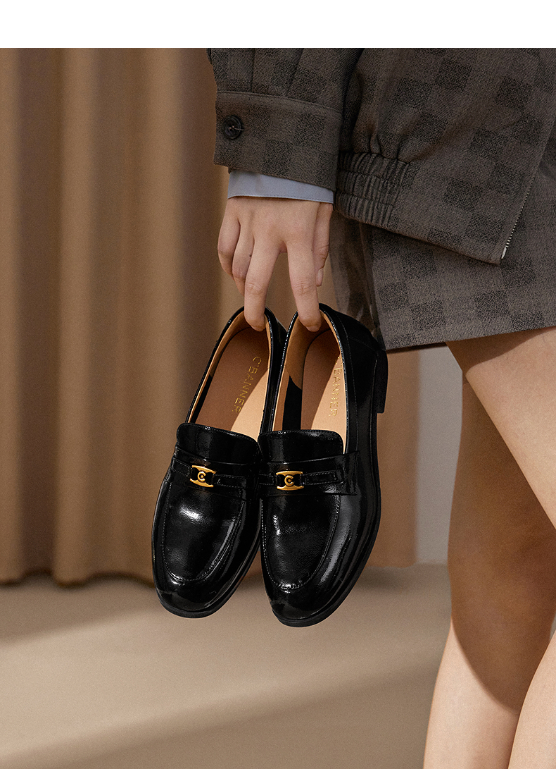 千百度低跟复古乐福鞋女款通勤真皮单鞋一脚蹬小皮鞋A25150160