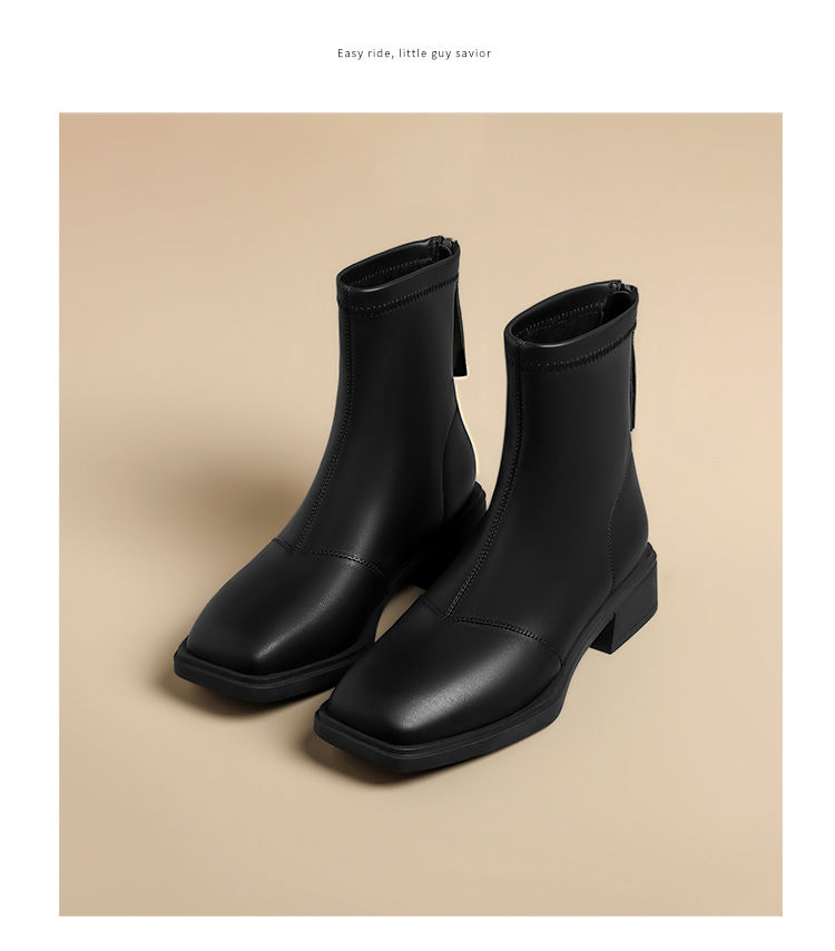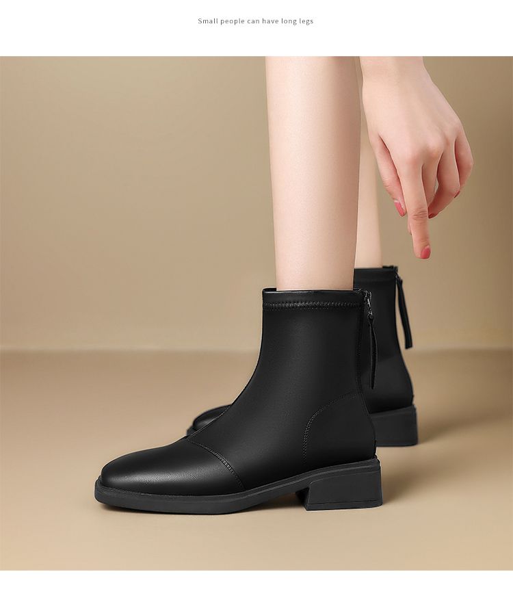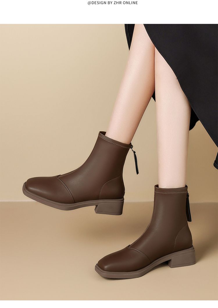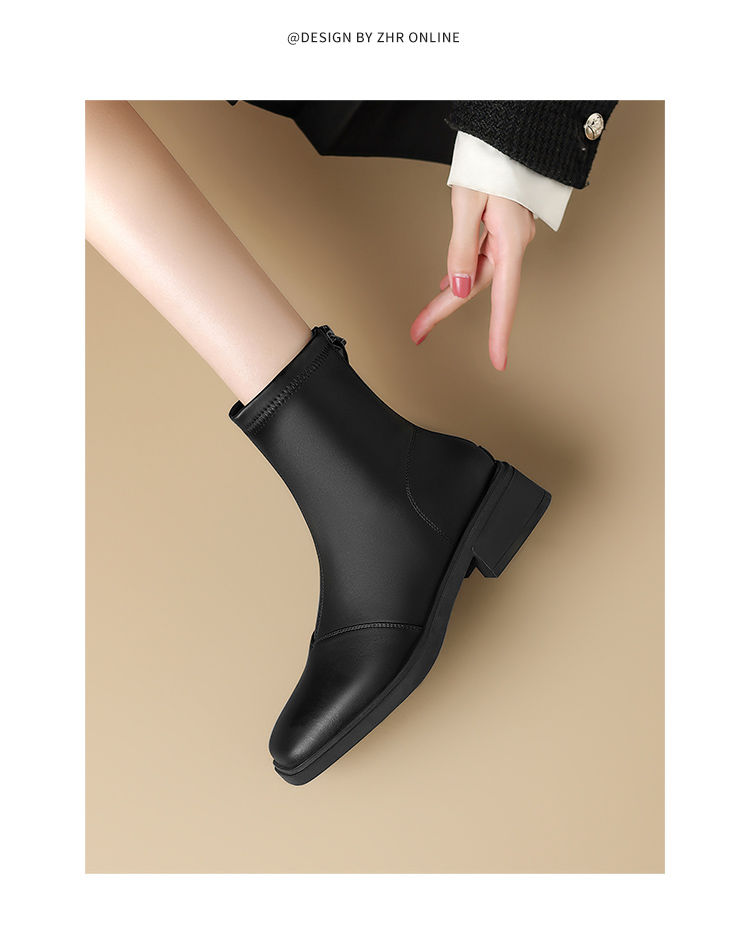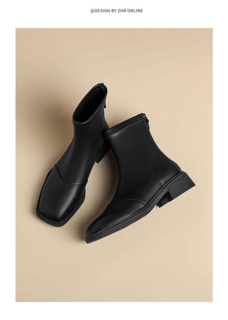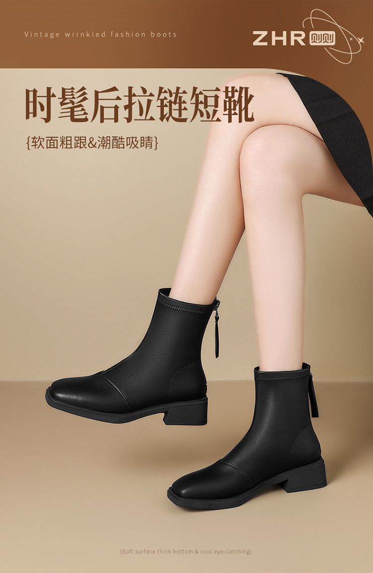 ZHR则则时尚百搭小短靴加绒后拉链瘦瘦靴洋气女靴马丁靴保暖靴子