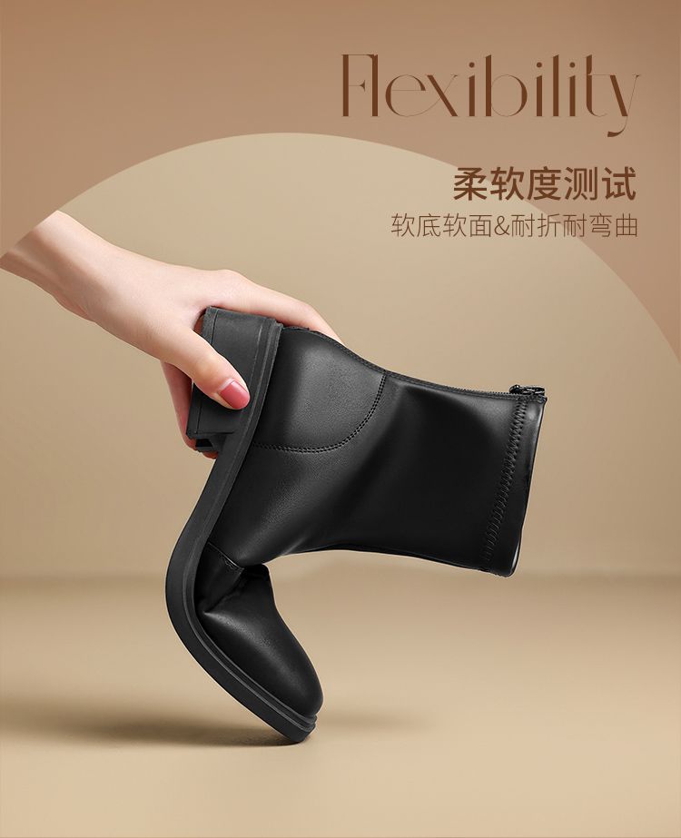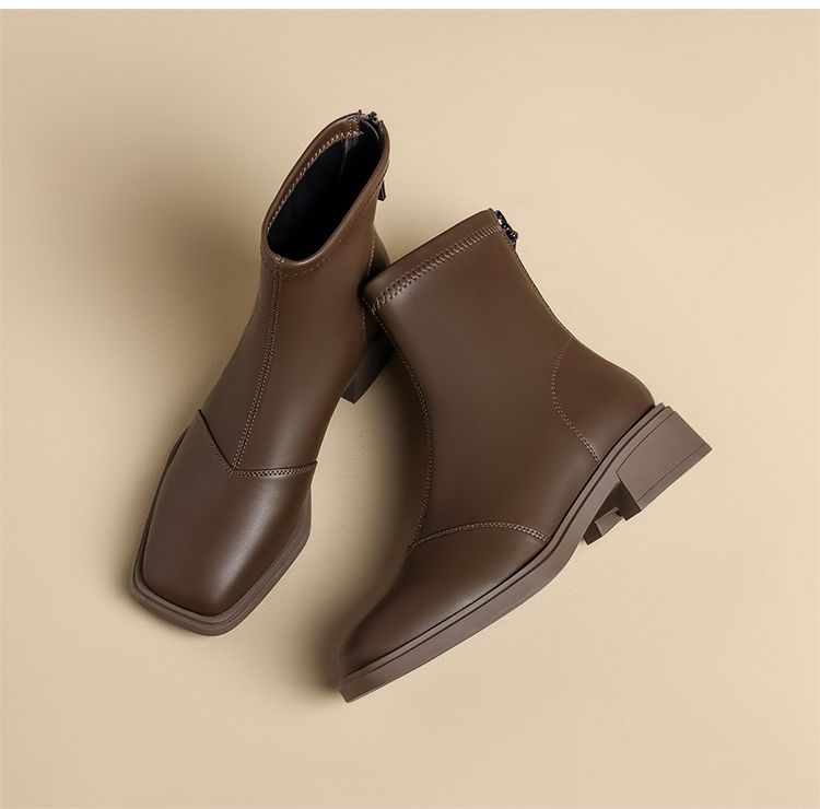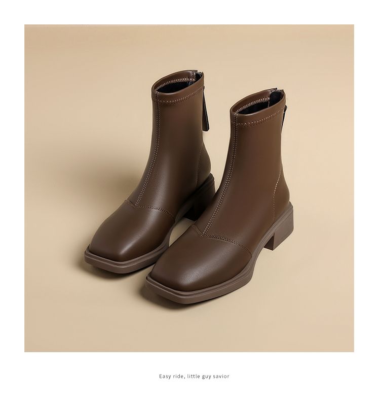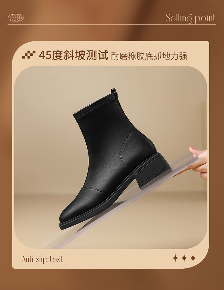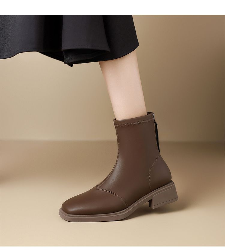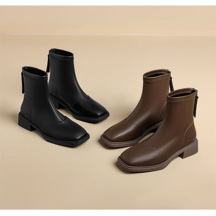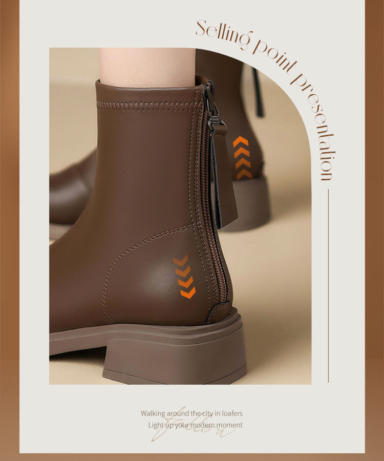 ZHR则则时尚百搭小短靴加绒后拉链瘦瘦靴洋气女靴马丁靴保暖靴子