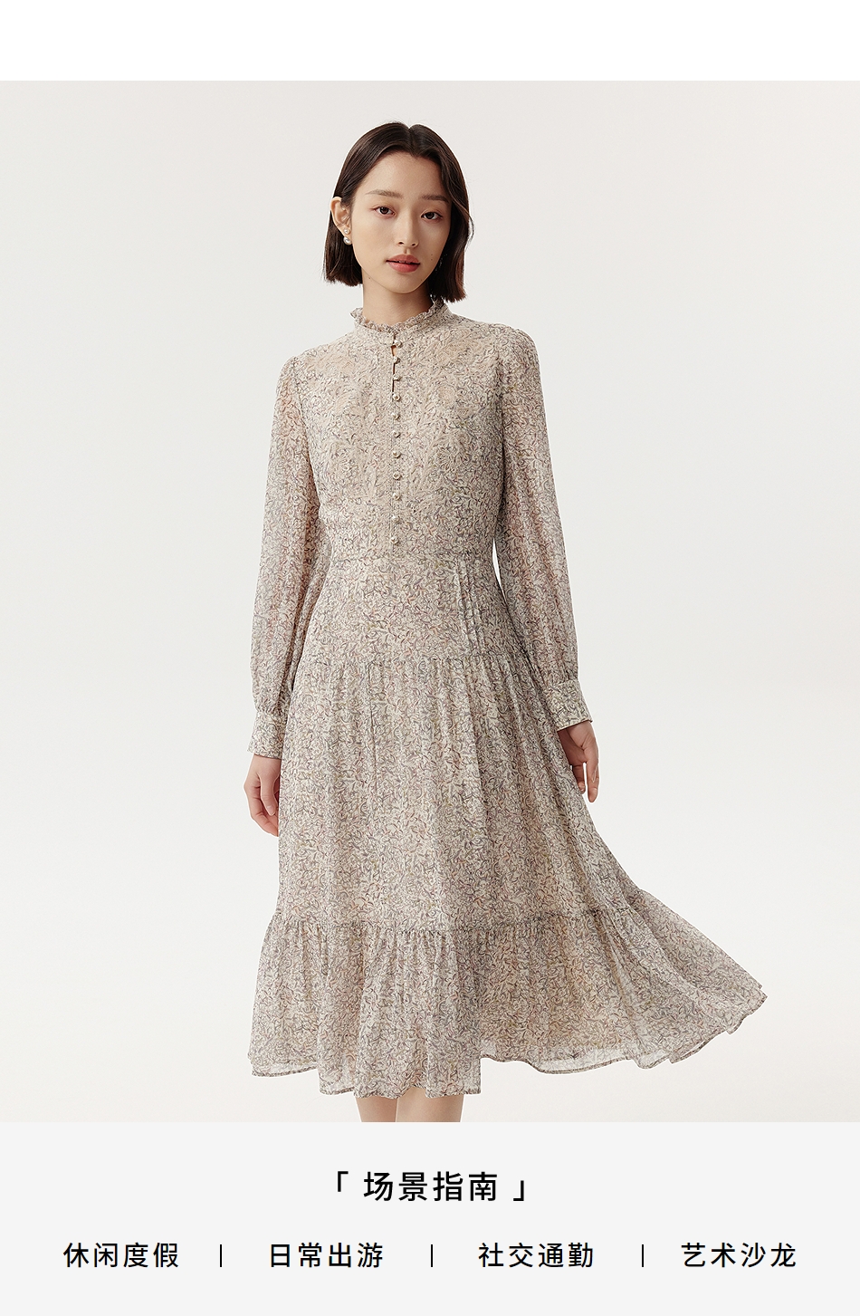 VGRASS维格娜丝25年春季定位印花真丝连衣裙