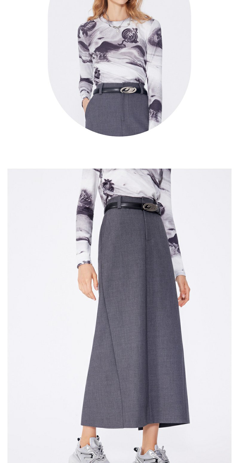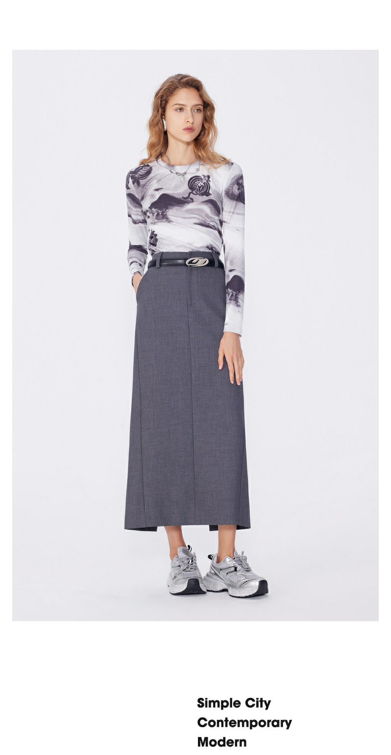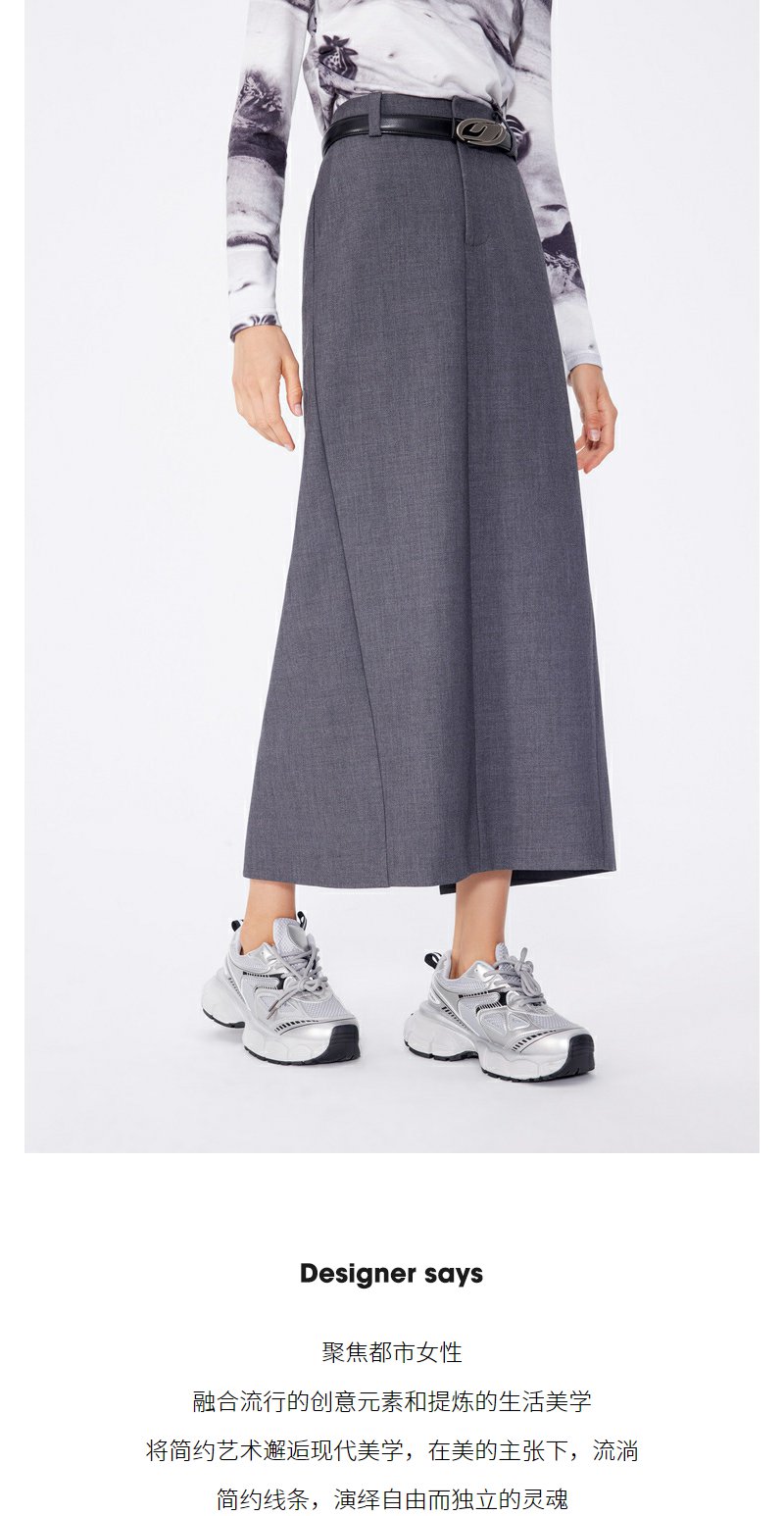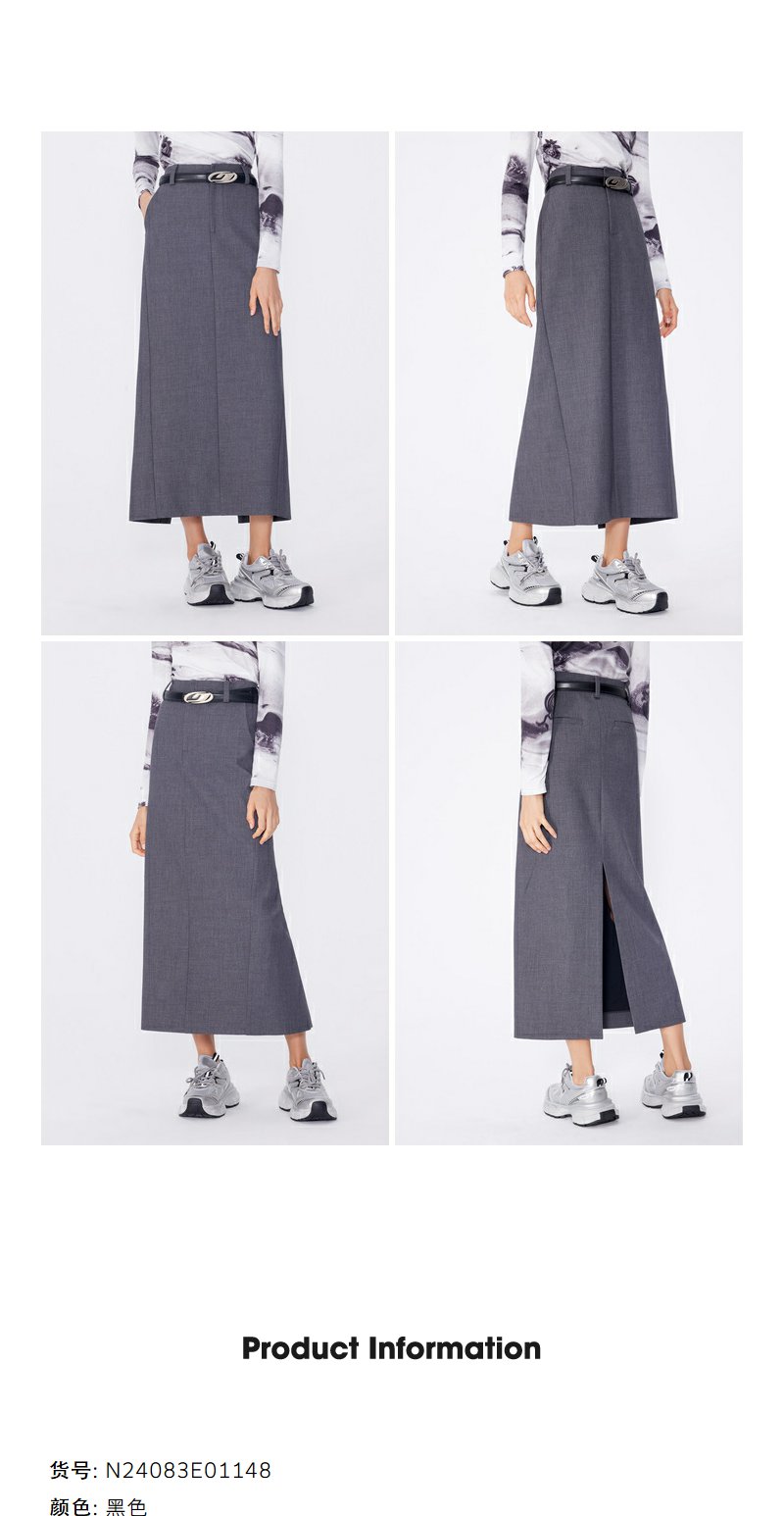 NEELLY纳俪2024秋商场同气质通勤半身裙中长款腰带后开叉女新款N24083E01148