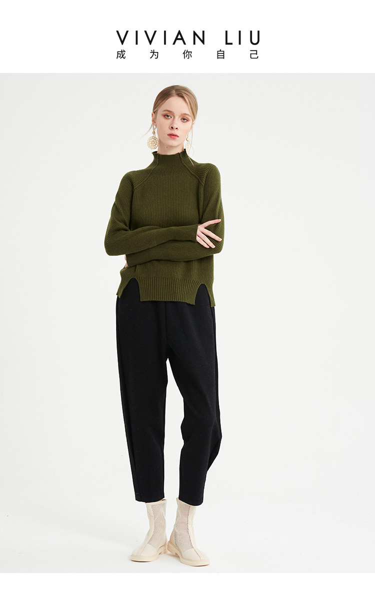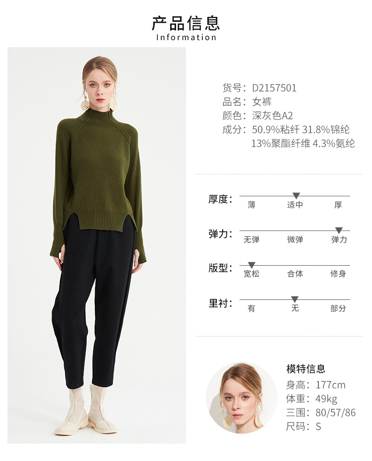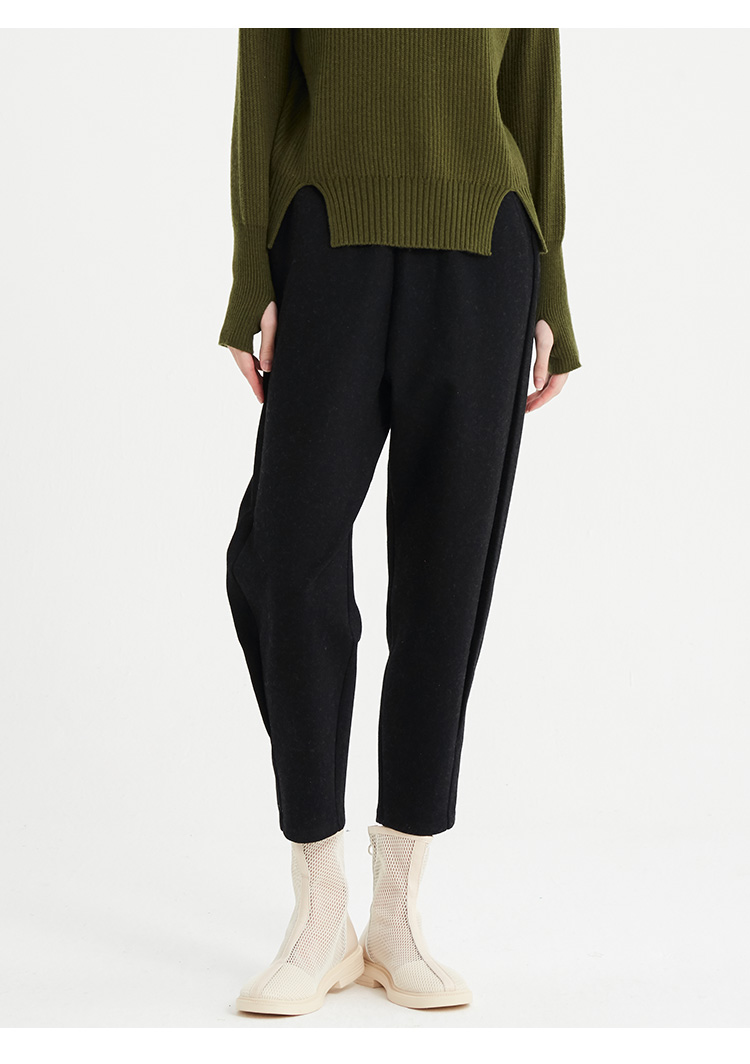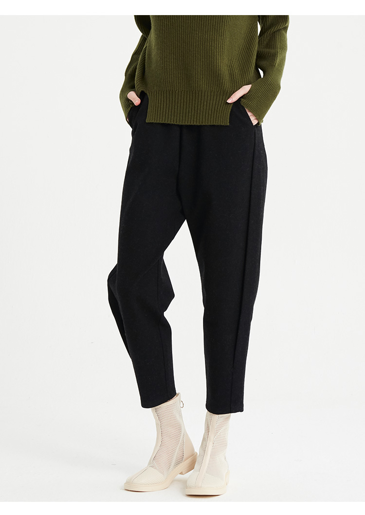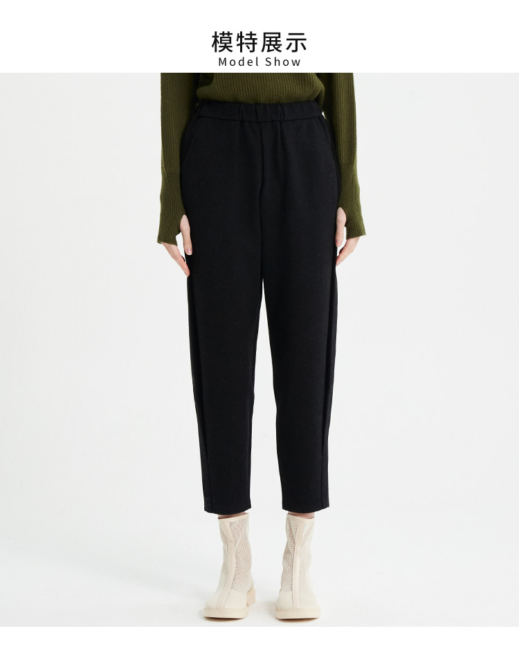 VIVIAN LIU D2157501 2021秋女装新款松紧腰哈伦休闲针织九分裤