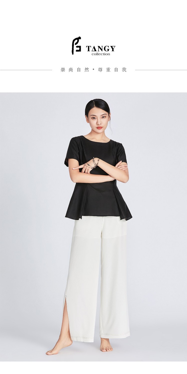 TANGY Collection 天意精品 暮禅系列 经典线迹香云纱长裤 莨绸休闲裤 L204506