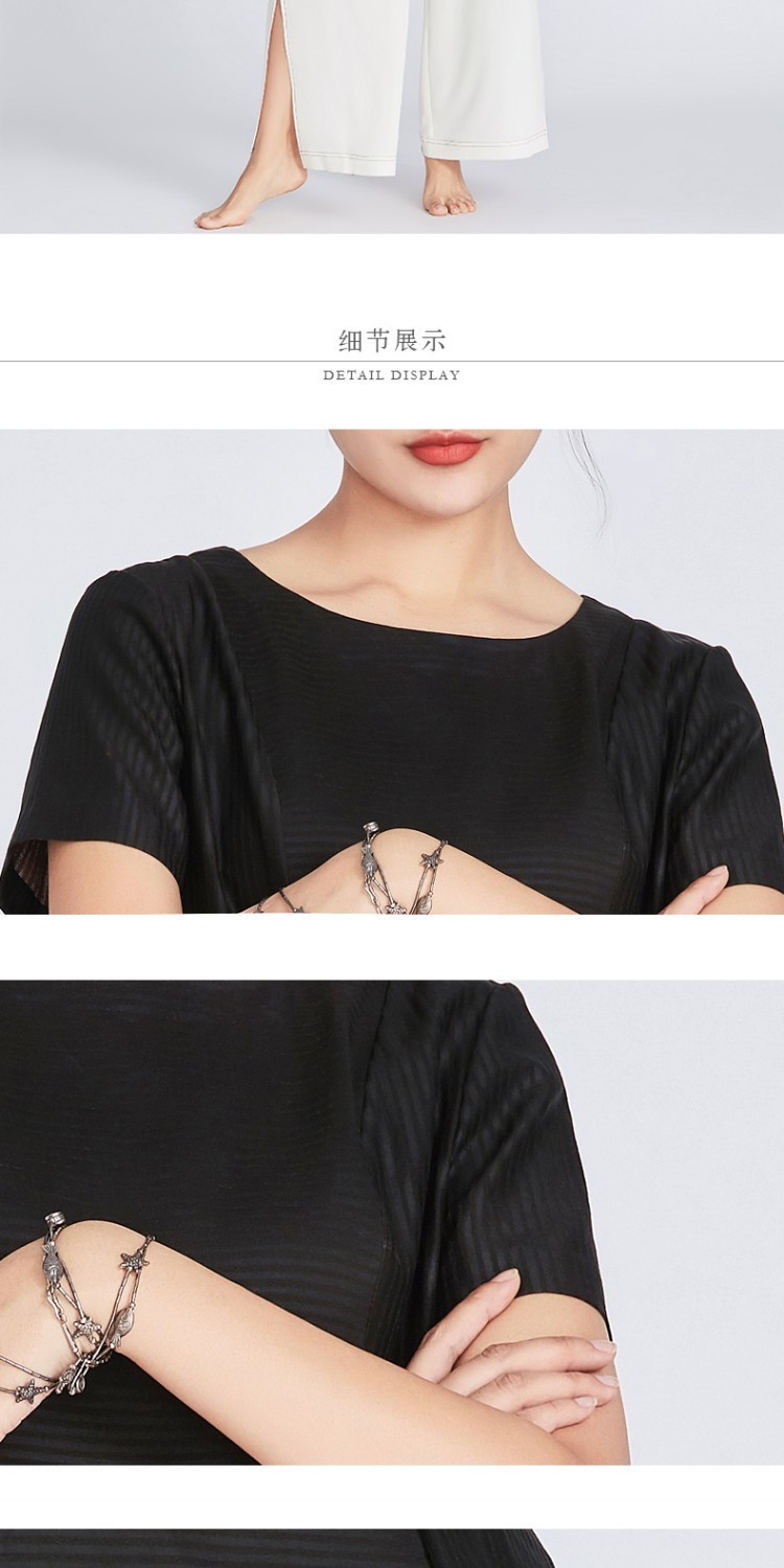 TANGY Collection/天意精品2021年秋季新品吊染拼撞莨绸高腰连衣裙
