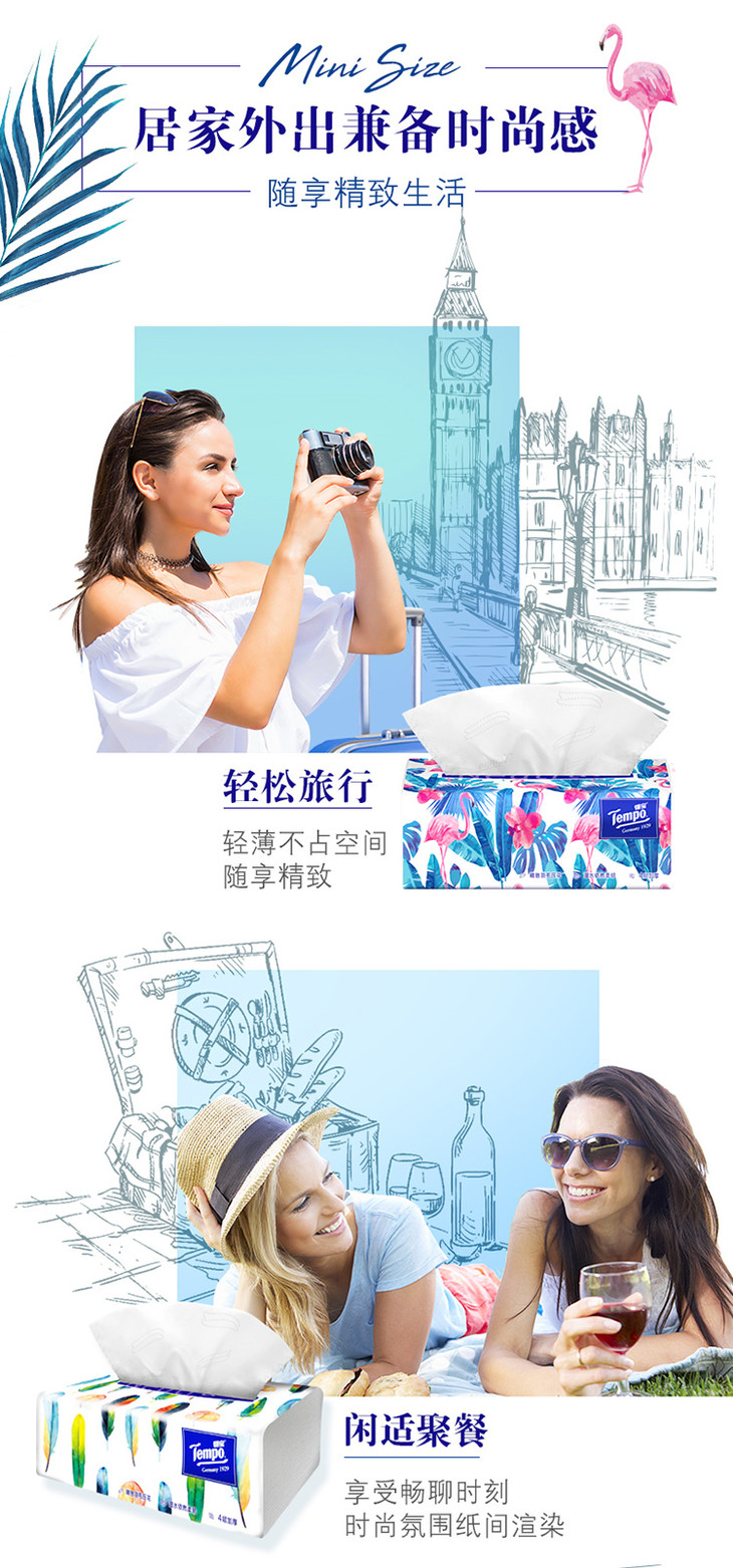 Tempo源自德国1929 MINI系列纸巾 18包整箱 无味 软抽 4层80抽 抽纸 德宝 得宝 面巾纸