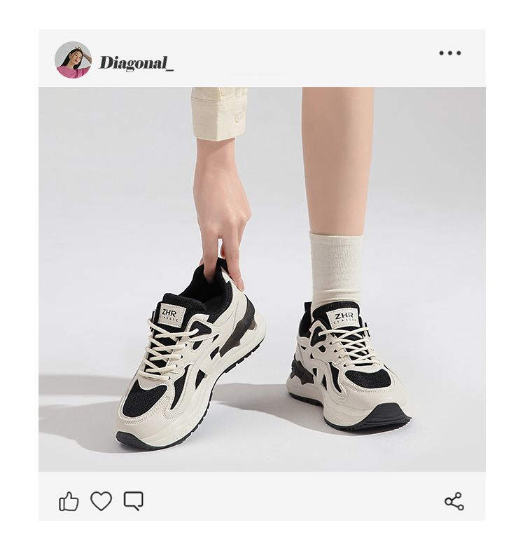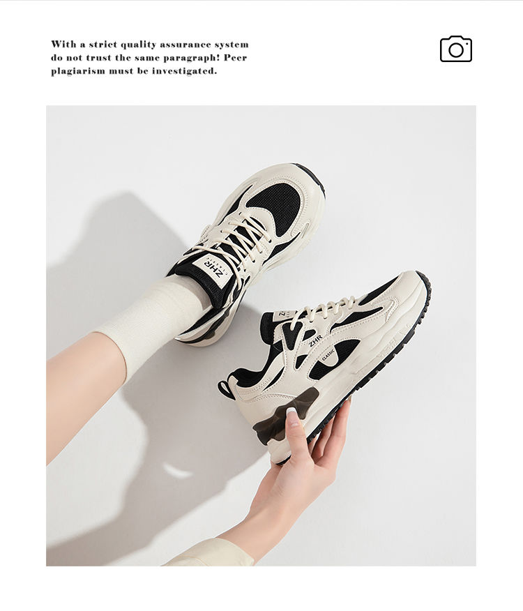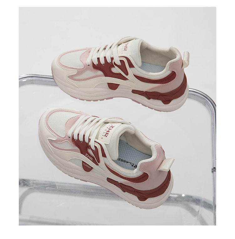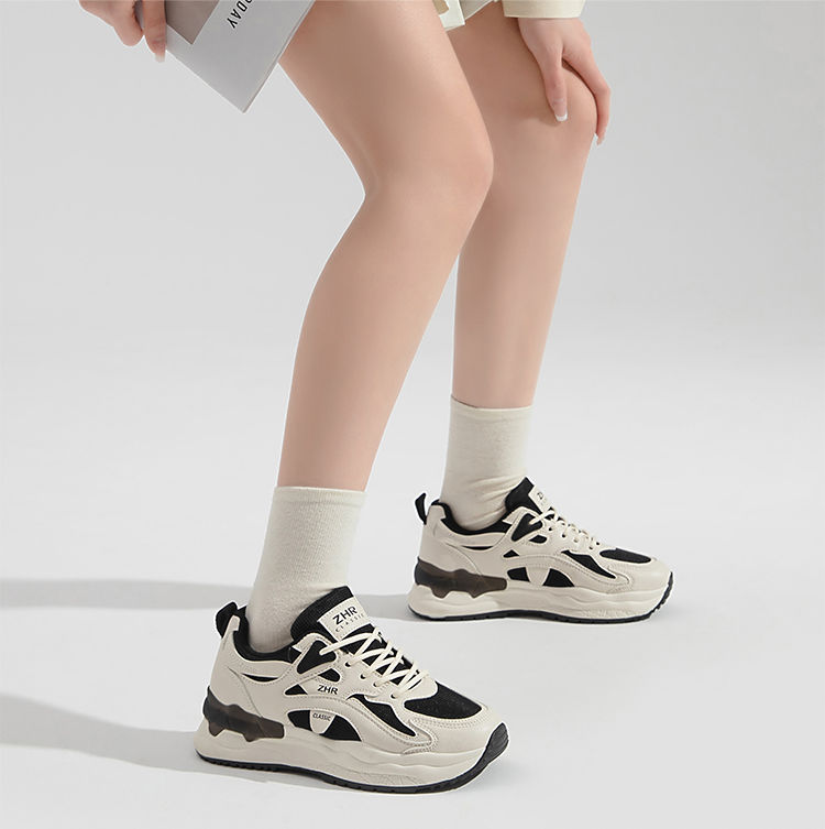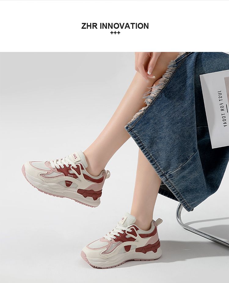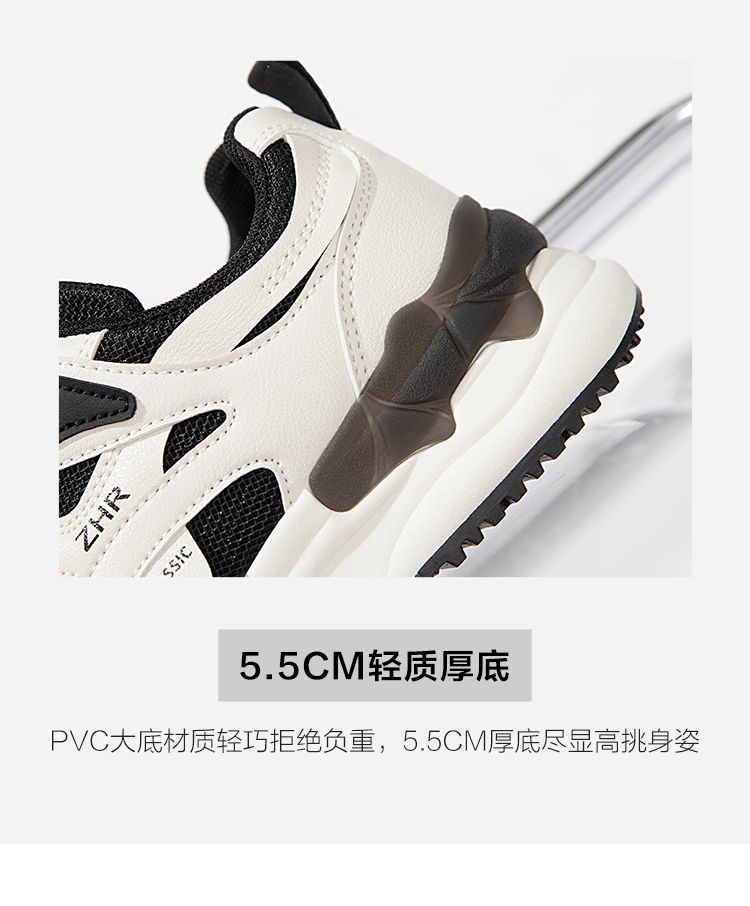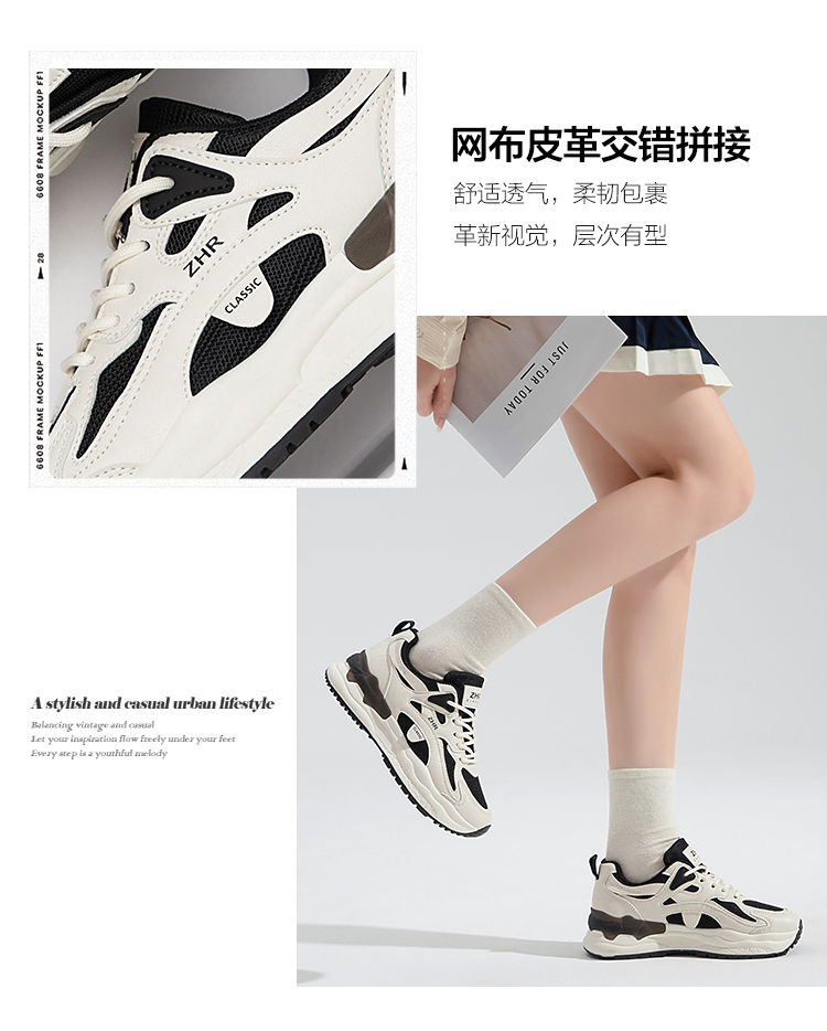 ZHR老爹鞋女2024春季新款百搭休闲松糕底耐磨低帮撞色拼接厚底休闲鞋