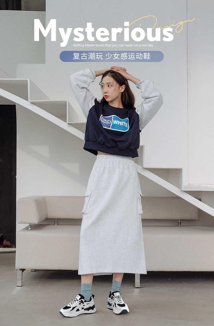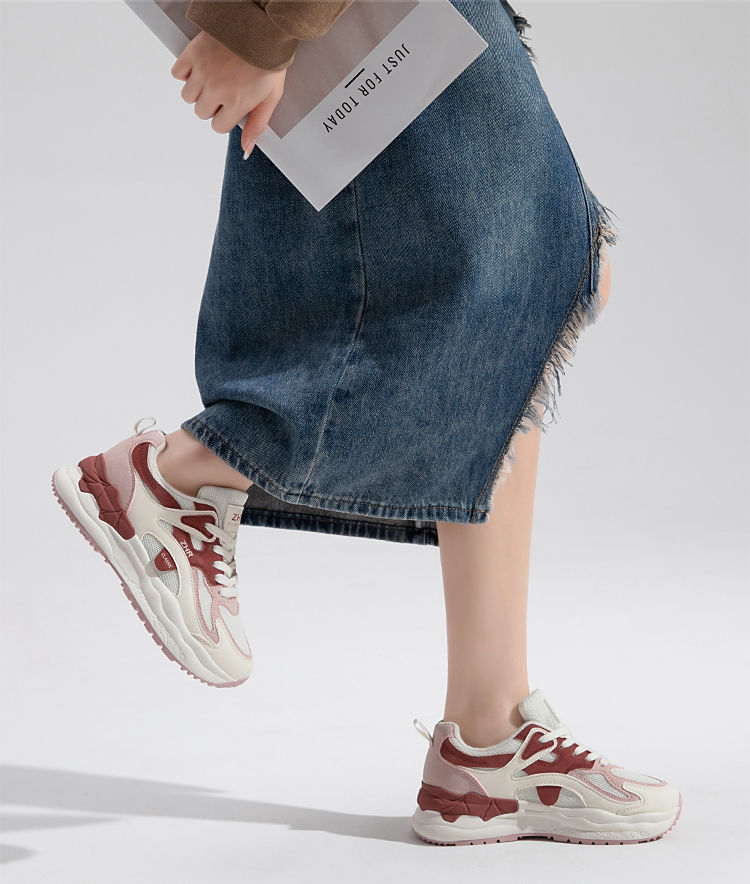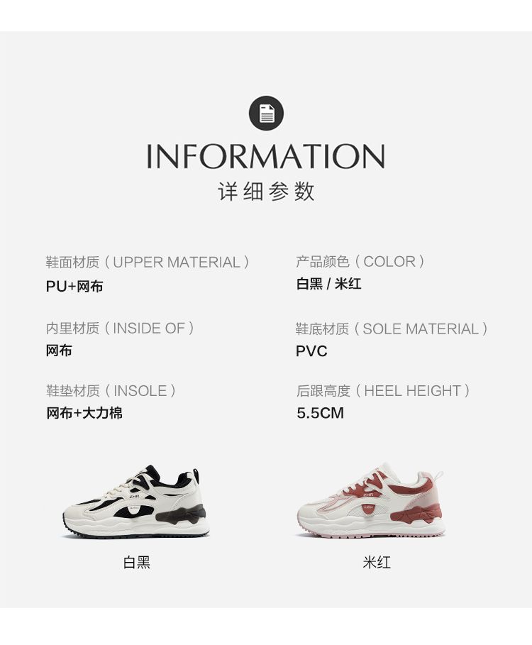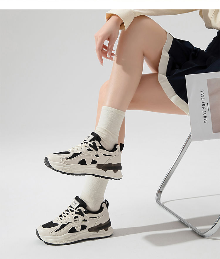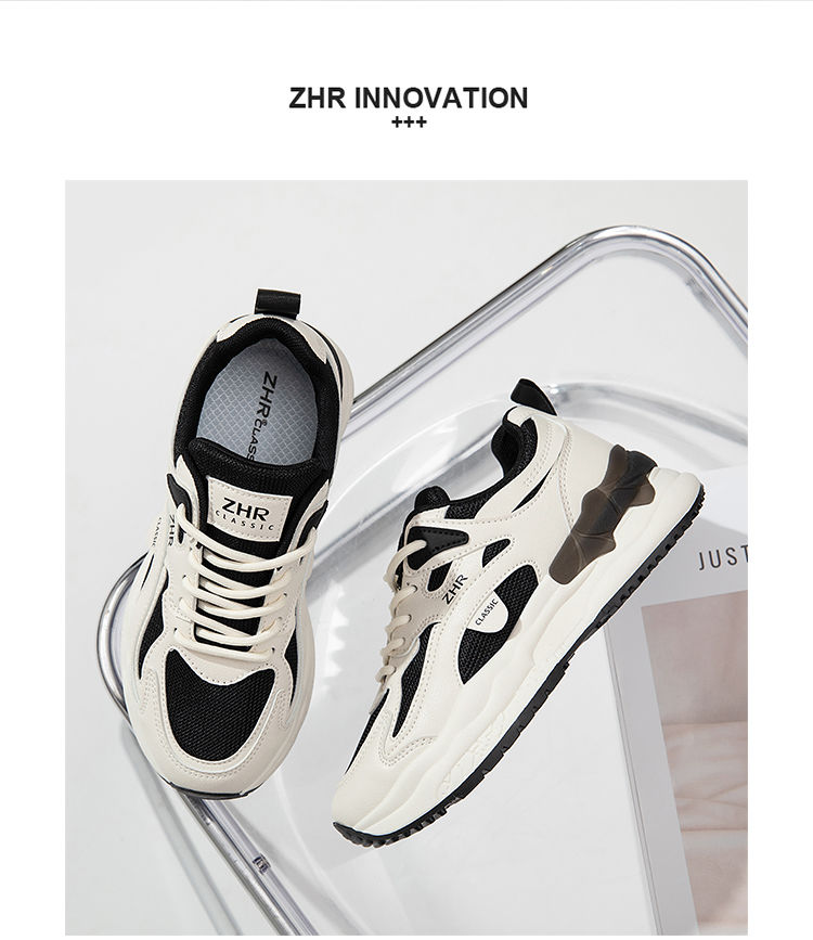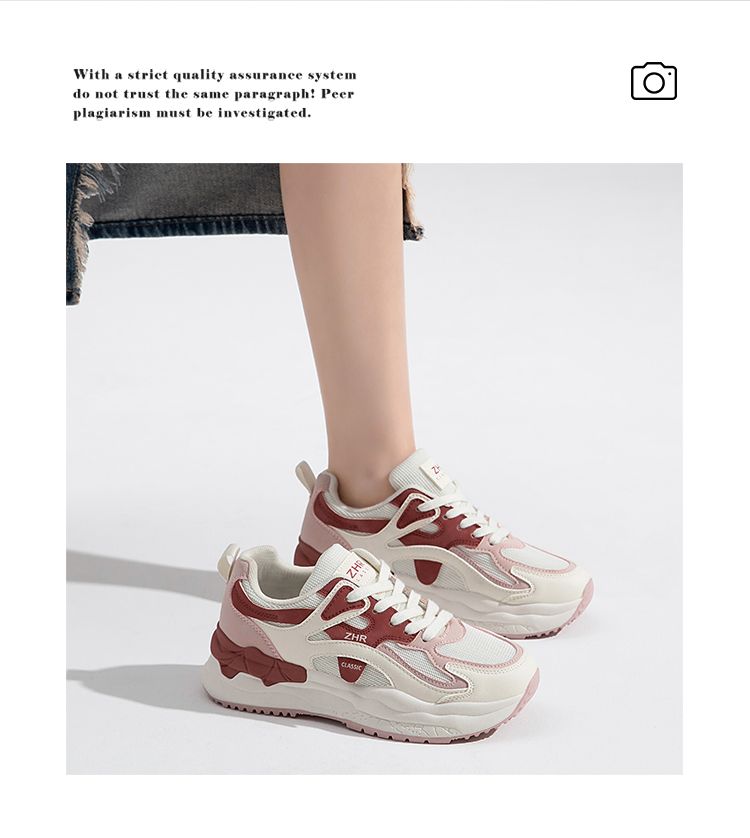 ZHR老爹鞋女2024春季新款百搭休闲松糕底耐磨低帮撞色拼接厚底休闲鞋