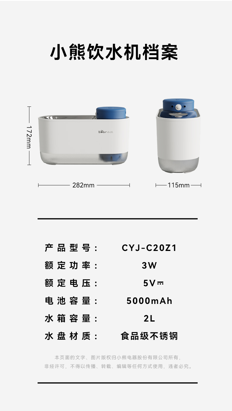 【小程序】小熊宠物饮水机 CYJ-C20Z1 浅杏色 自动感应出水