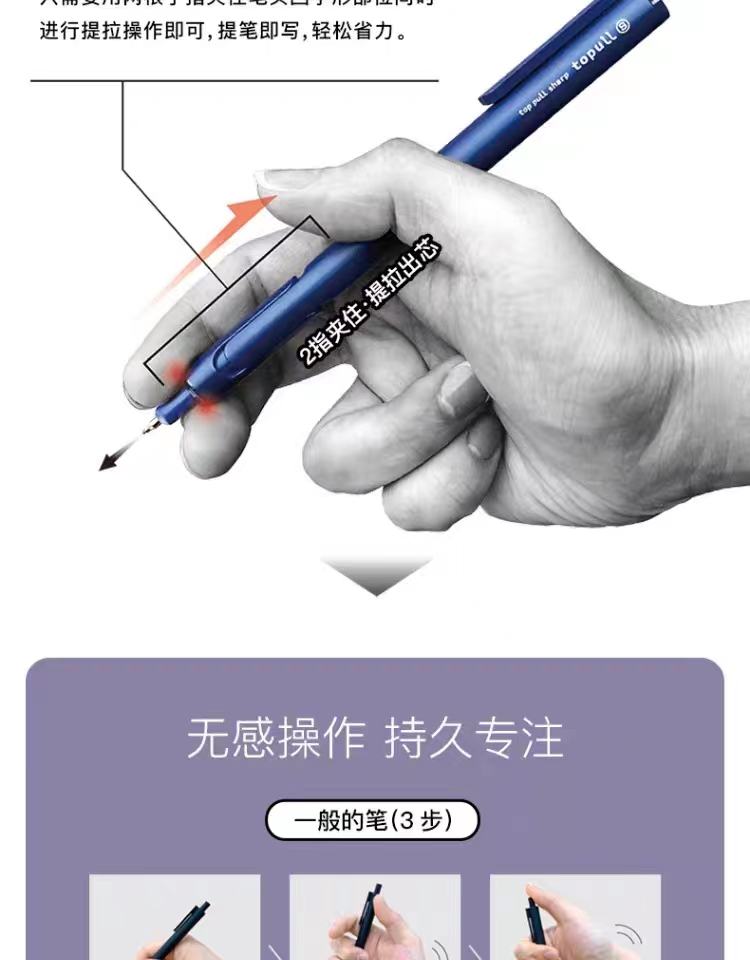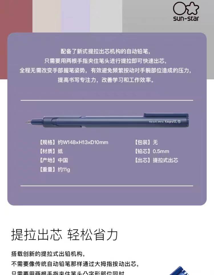 日本SUN-STAR太阳星TOPULL S头部提拉式金属材质自动铅笔0.5mm