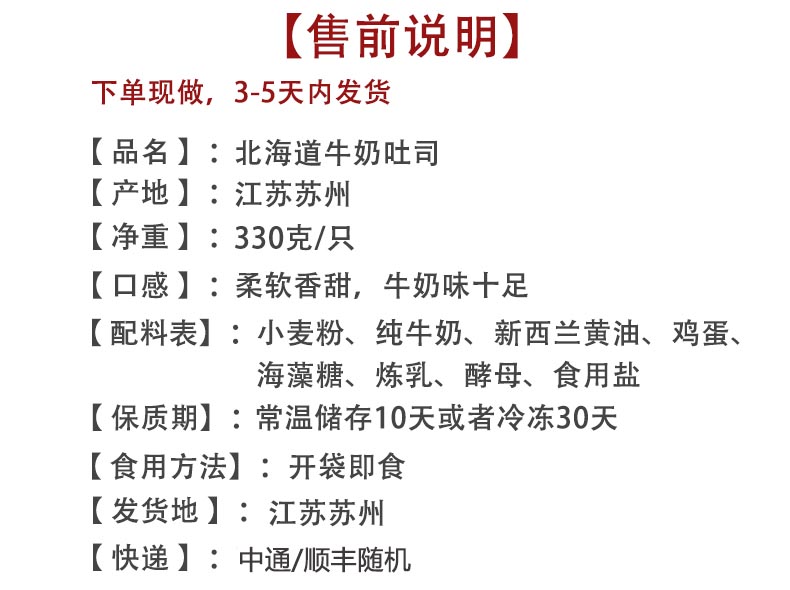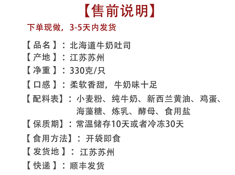 热卖 !【北海道无添加牛奶吐司】顺丰包邮!接单现做,牛奶和面,不加一滴水的北海道吐司,奶香浓郁,如棉花般绵软拉丝!纯手工无添加,10天保质期,销售已超1000万件的国民吐司!