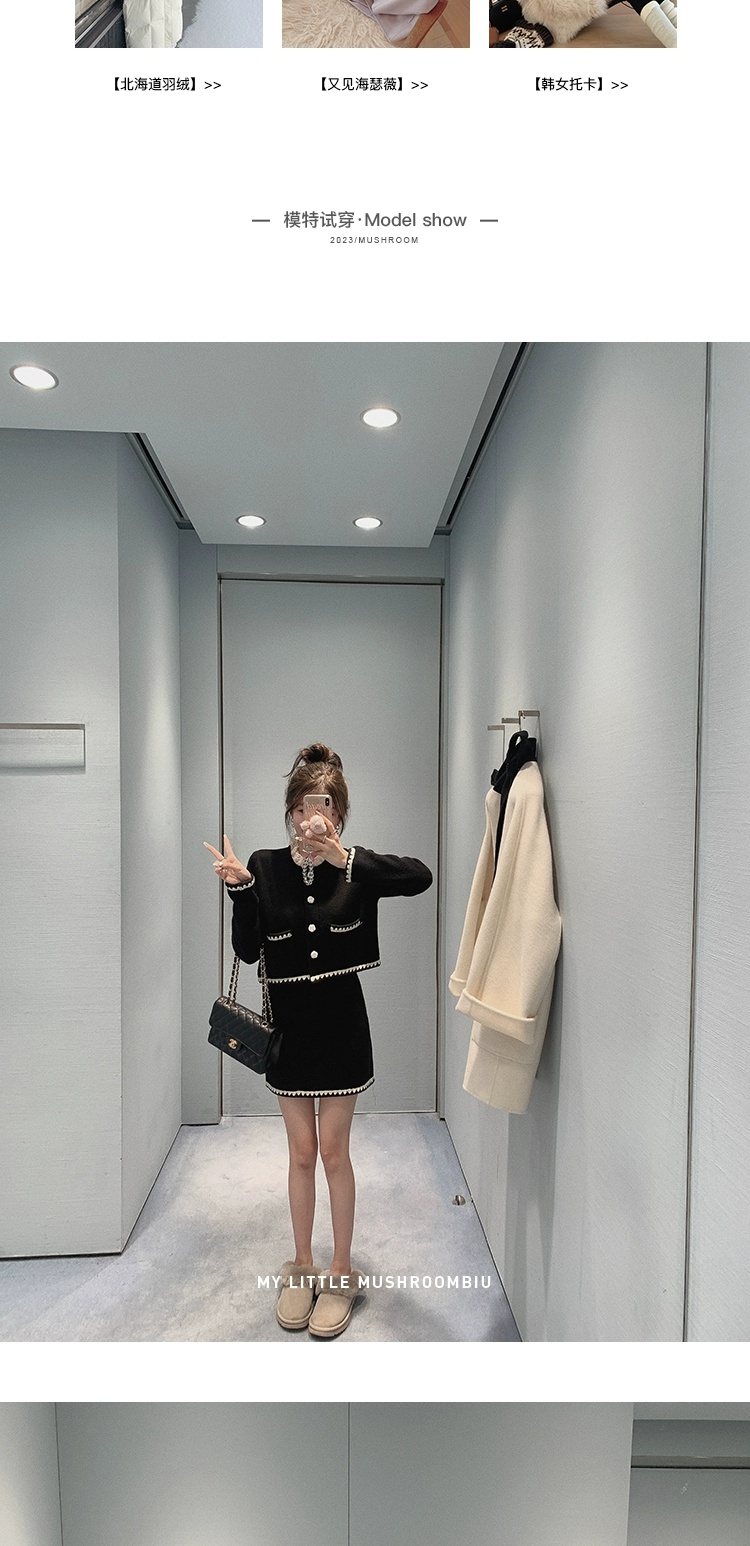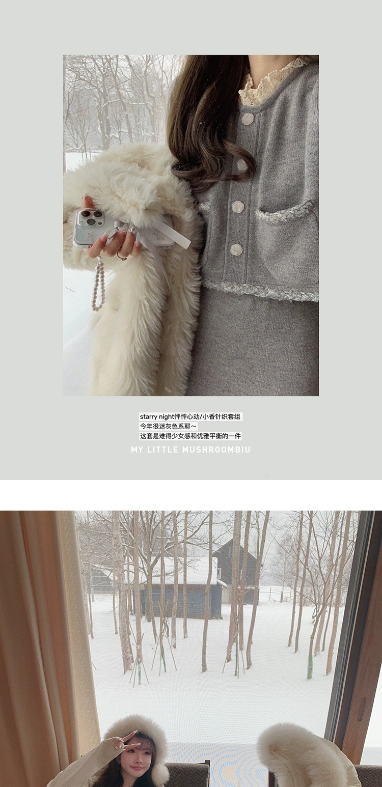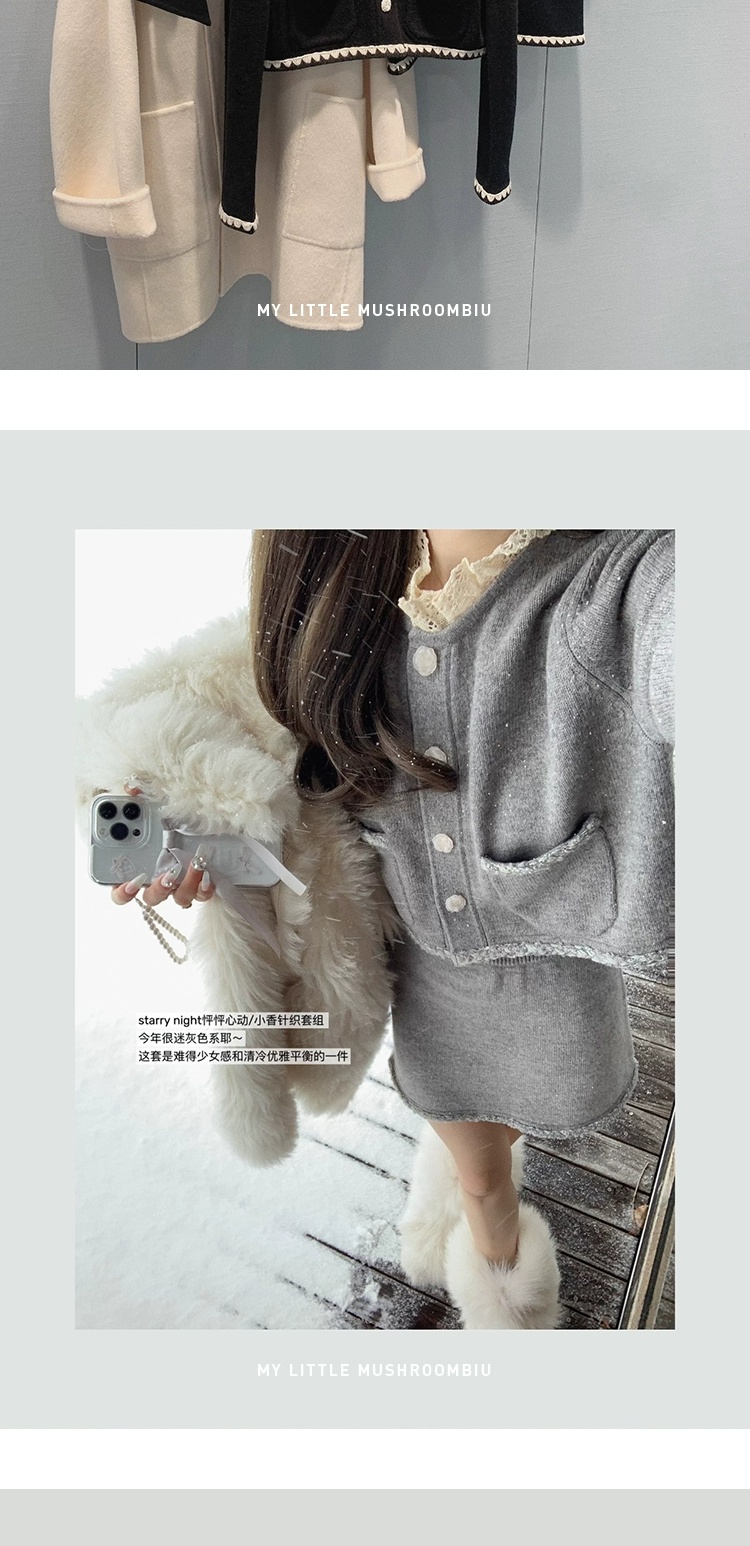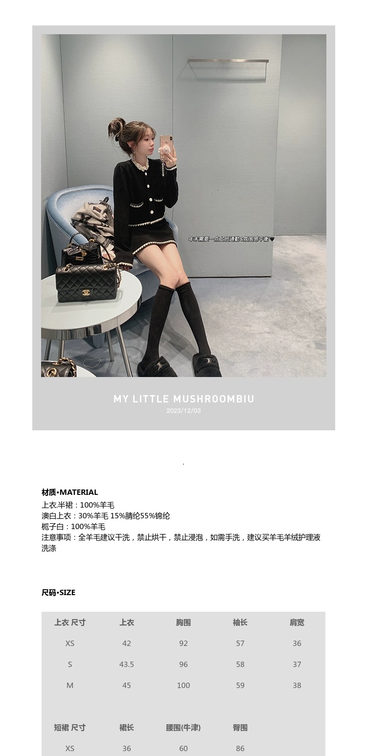 金蘑菇菇 starry night怦怦心动/ 100wool小香针织上衣+半裙套装