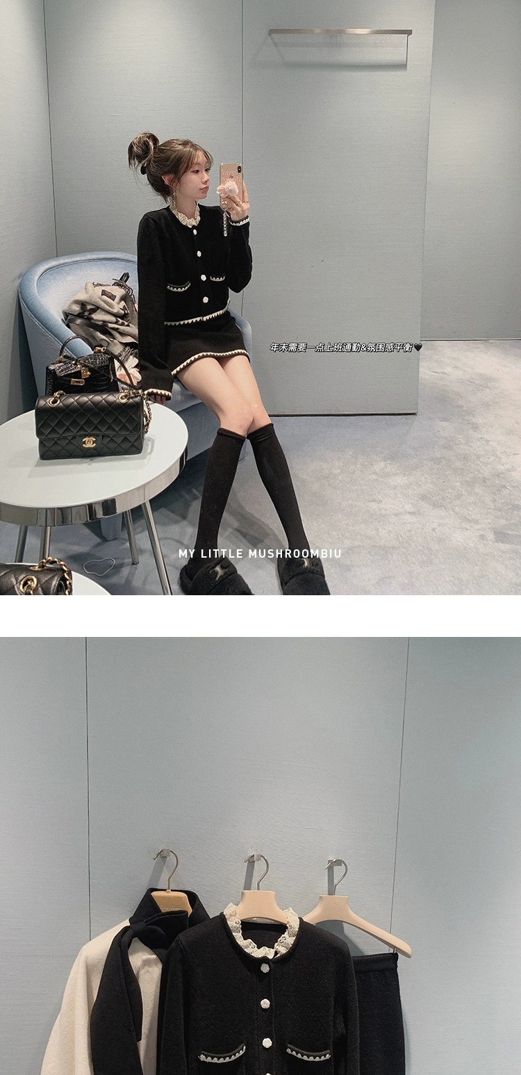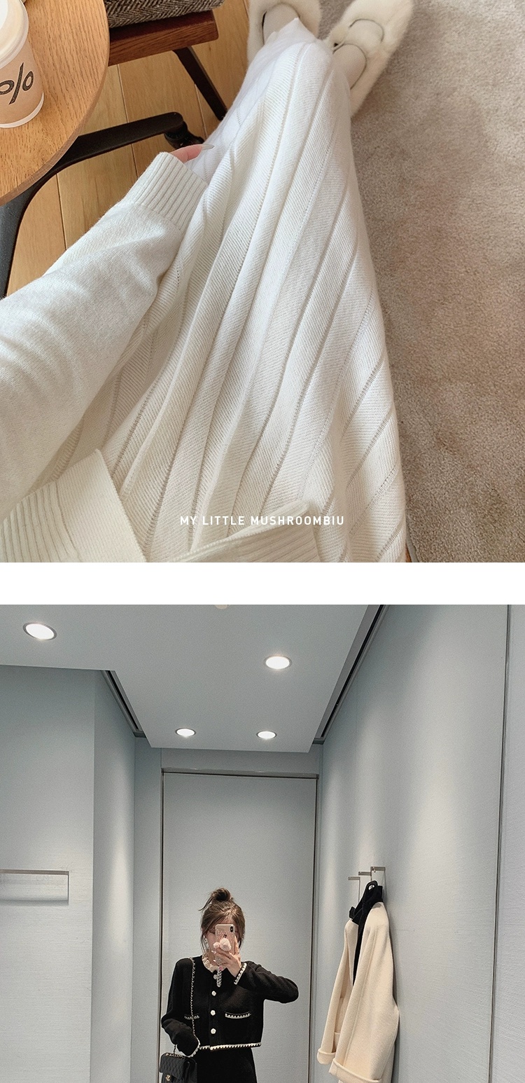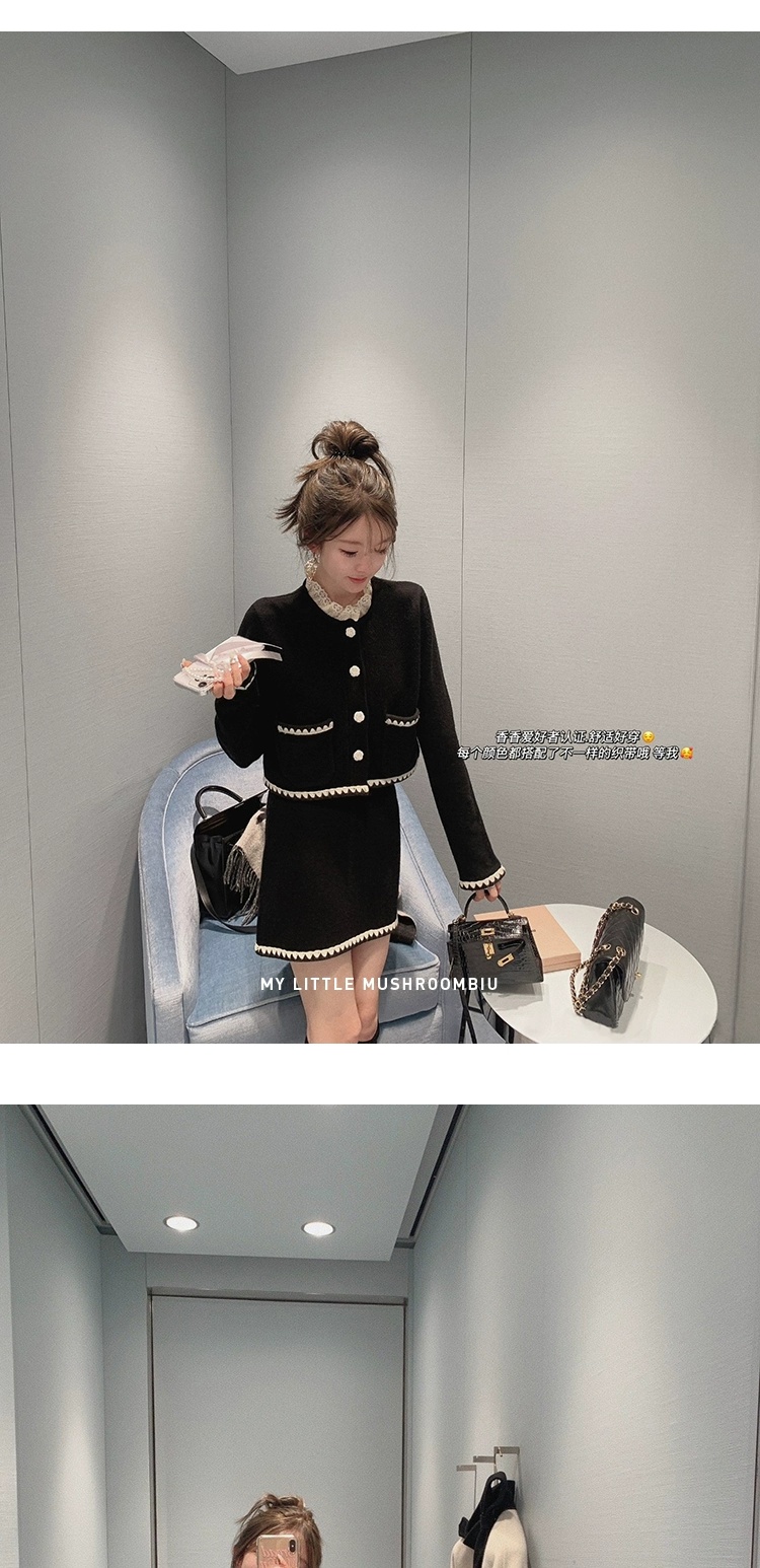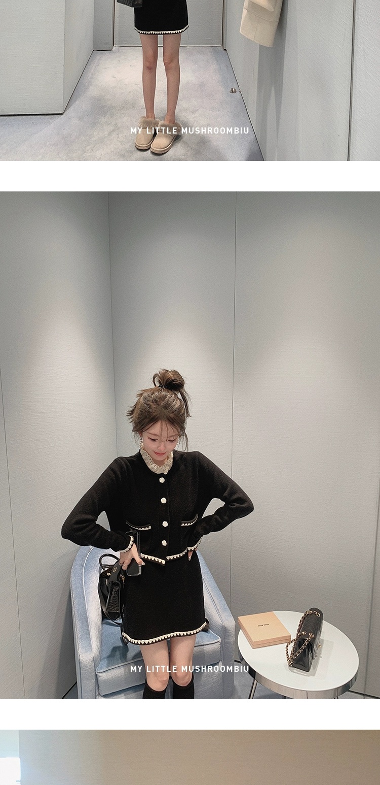 金蘑菇菇 starry night怦怦心动/ 100wool小香针织上衣+半裙套装