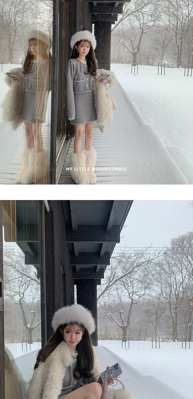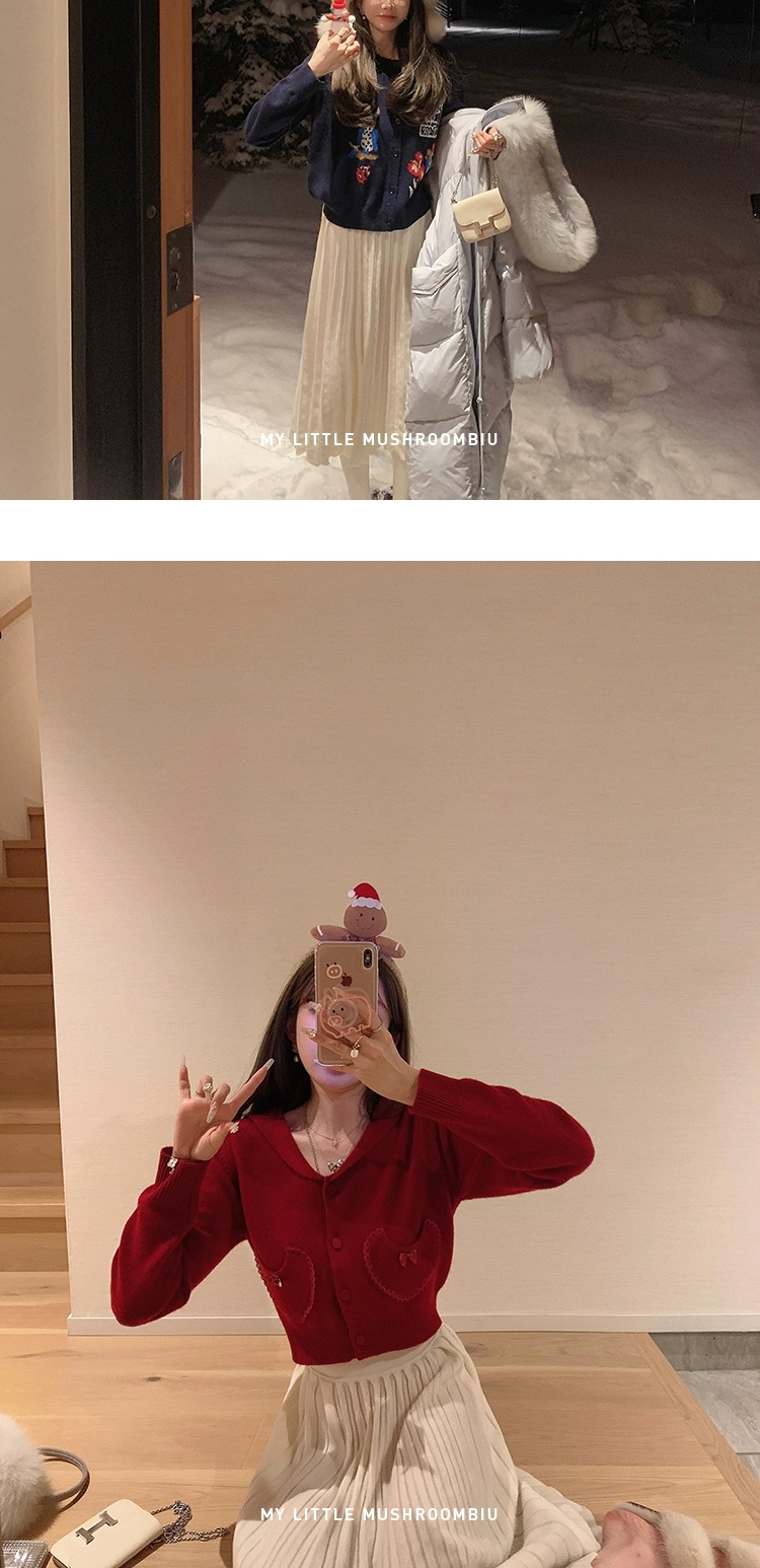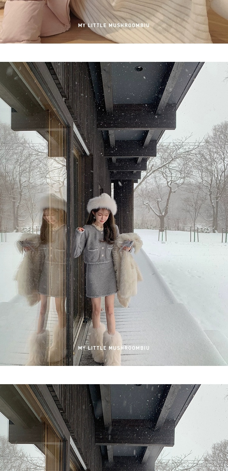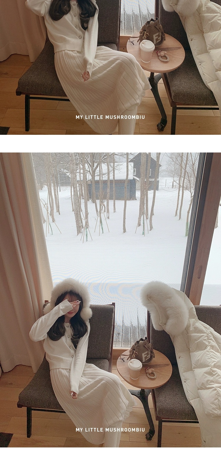 金蘑菇菇 starry night怦怦心动/ 100wool小香针织上衣+半裙套装