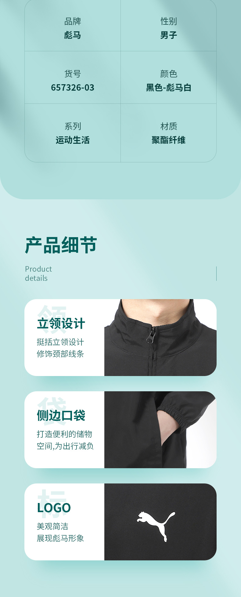 puma/彪马 2021夏季 男装 夹克 运动服 跑步 休闲 时尚 风衣 上衣 外套 657326-03