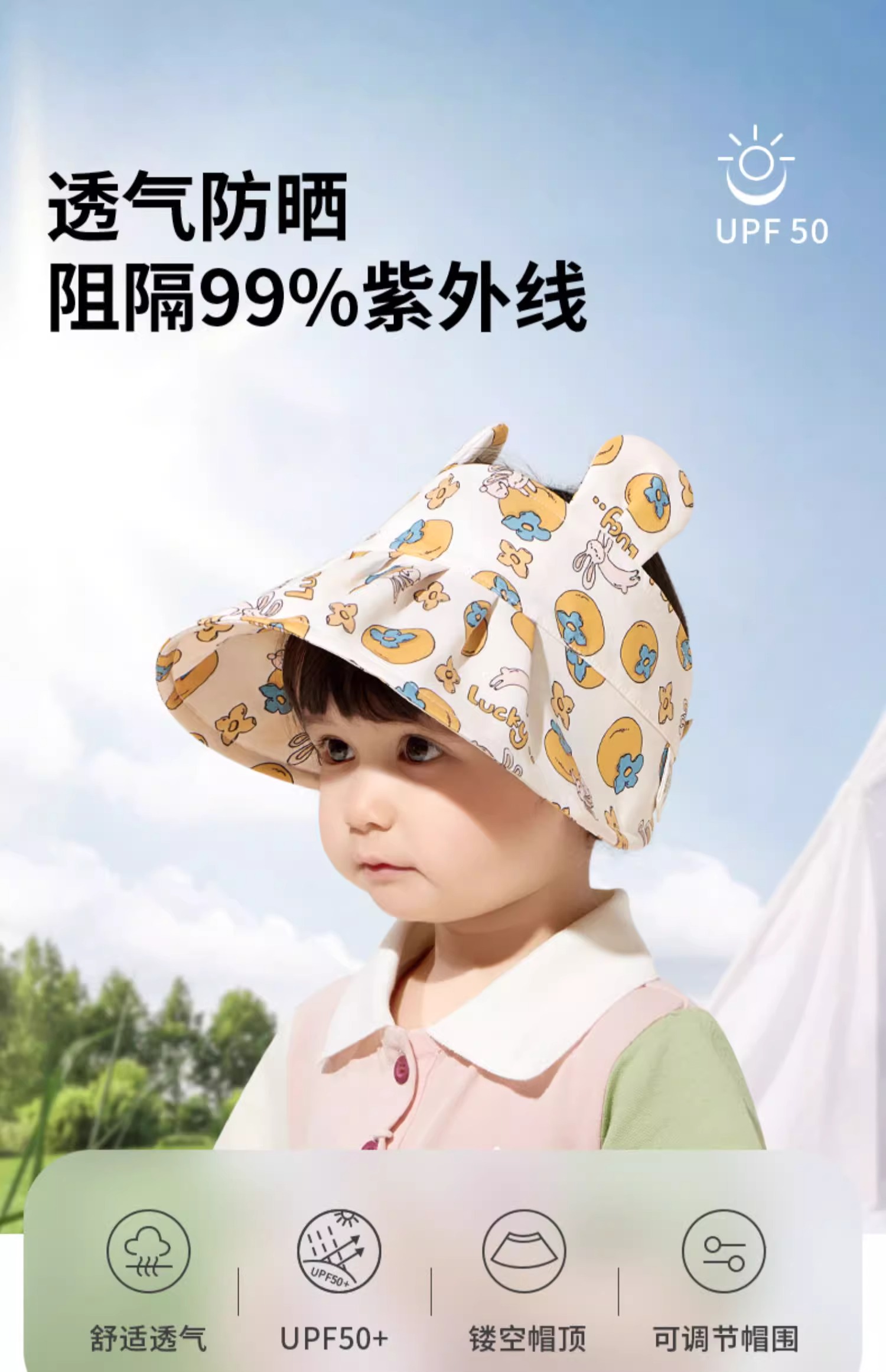 婴儿遮阳太阳帽男童女童防紫外线空顶夏季儿童防晒帽宝宝帽子薄款