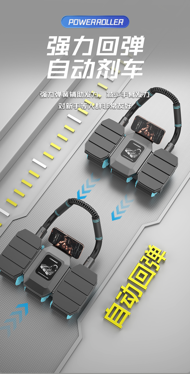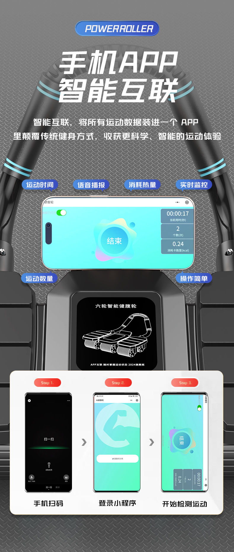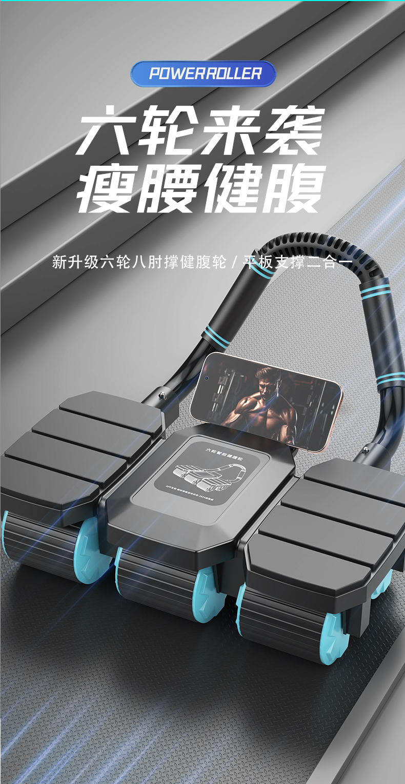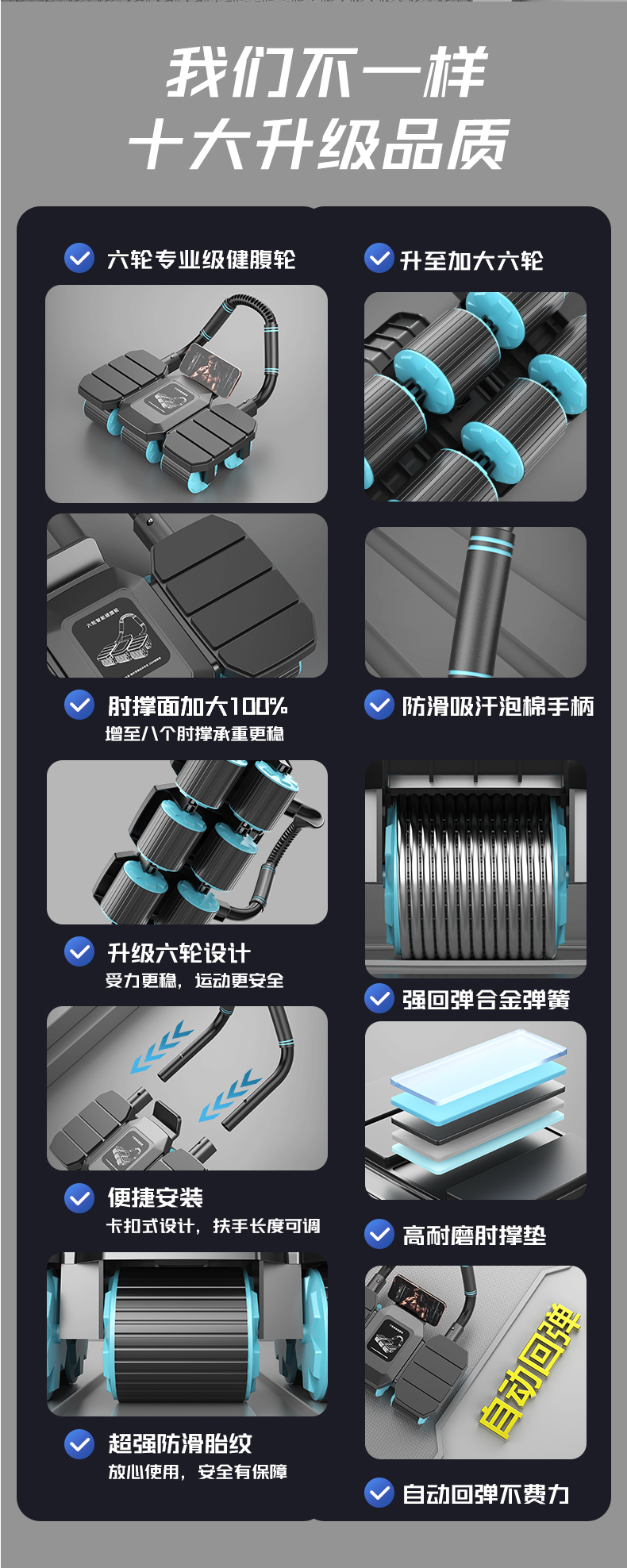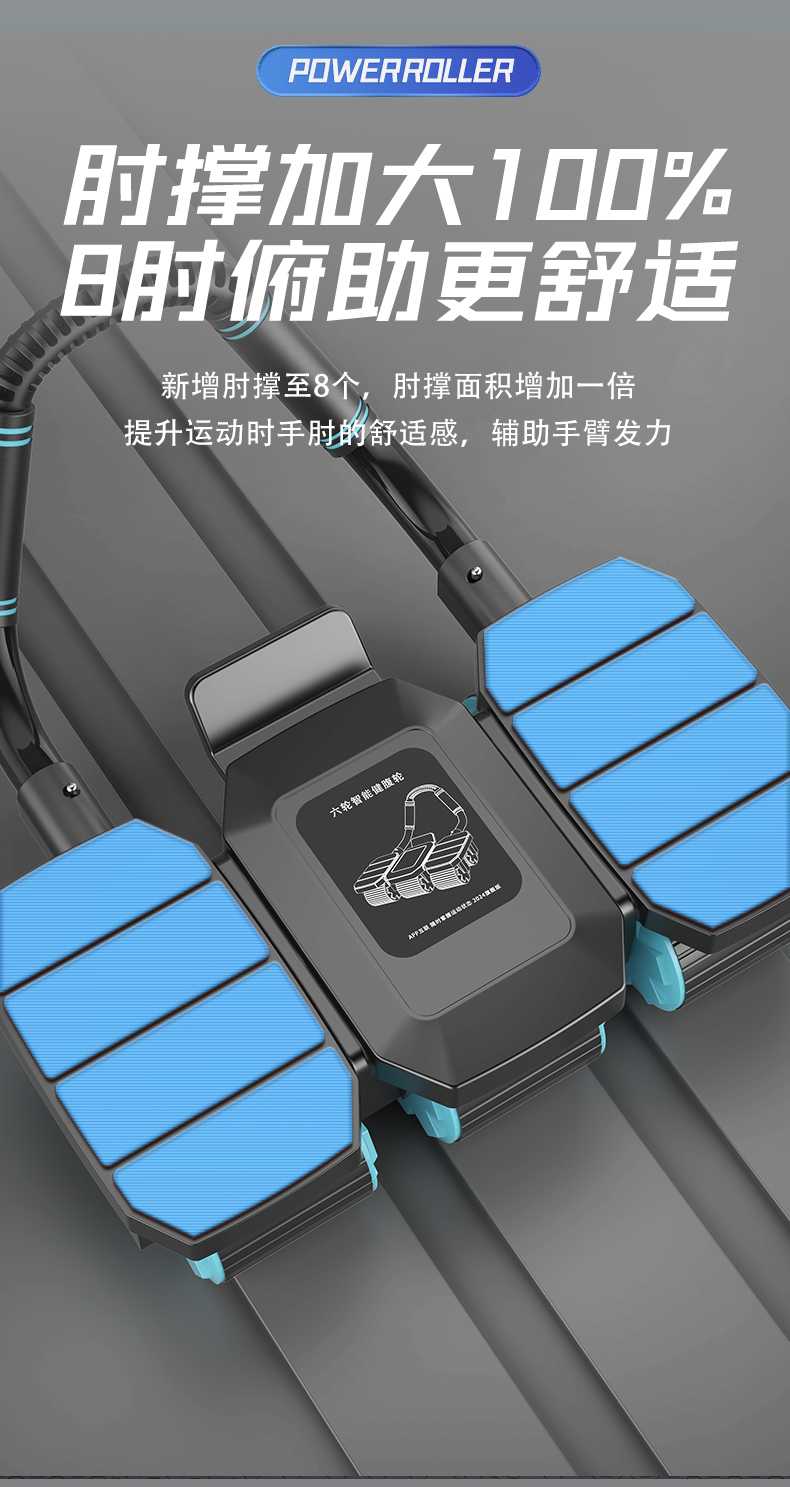 【2025全新升级六轮八肘健腹轮】8肘撑设计 六轮稳固 自带手机支架 强力回弹 稳定不侧翻 手机互联 智能计时