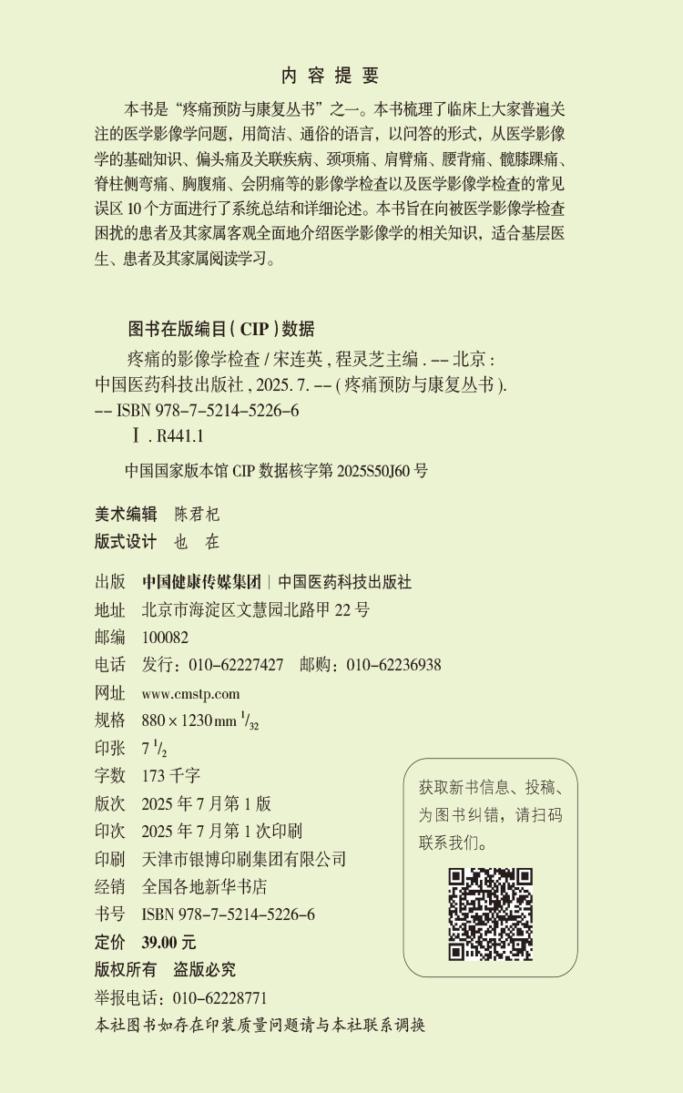 疼痛的影像学检查(疼痛预防与康复丛书)宋连英 程灵芝 主编 全面地介绍医学影像学的相关知识 9787521452266中国医药科技出版社