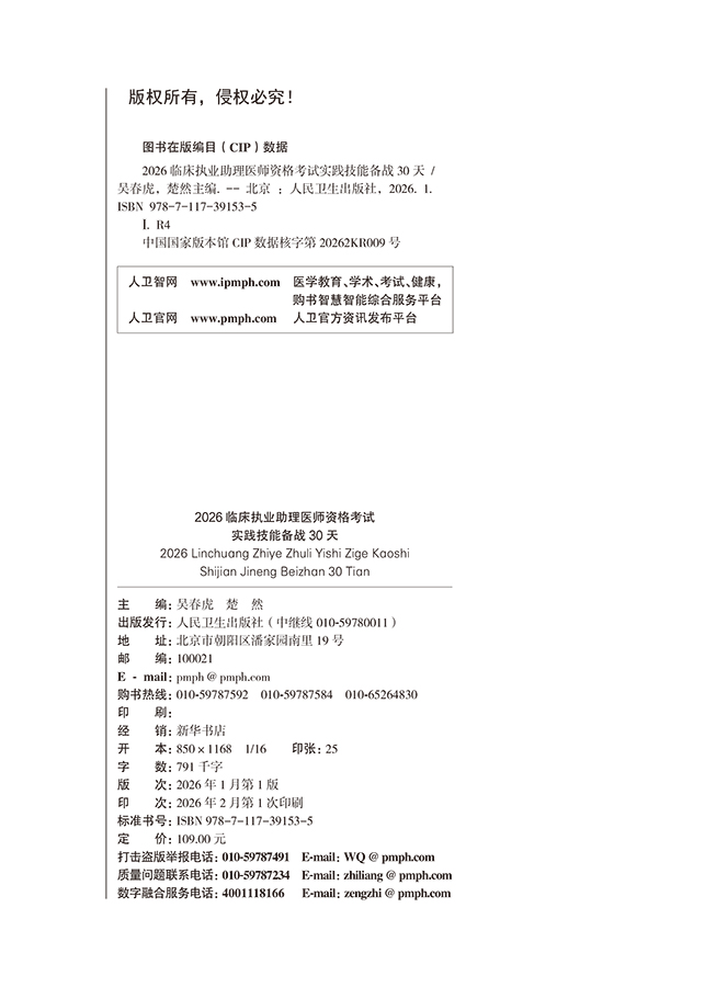 书名:2026临床执业助理医师资格考试实践技能备战30天