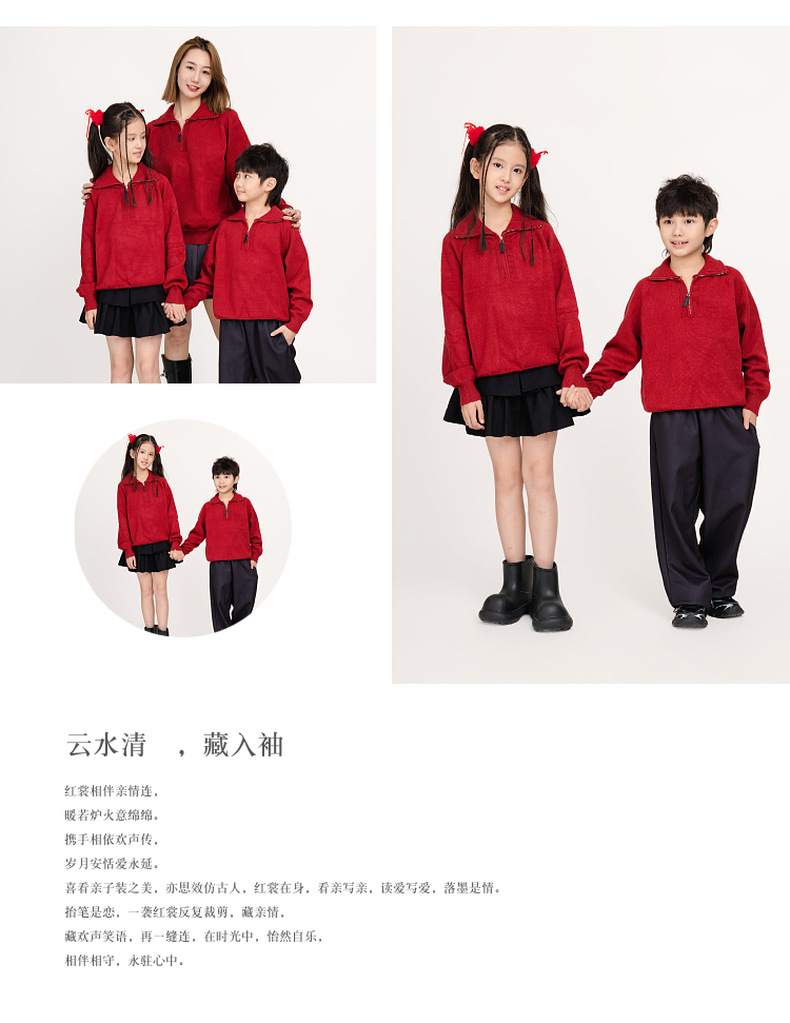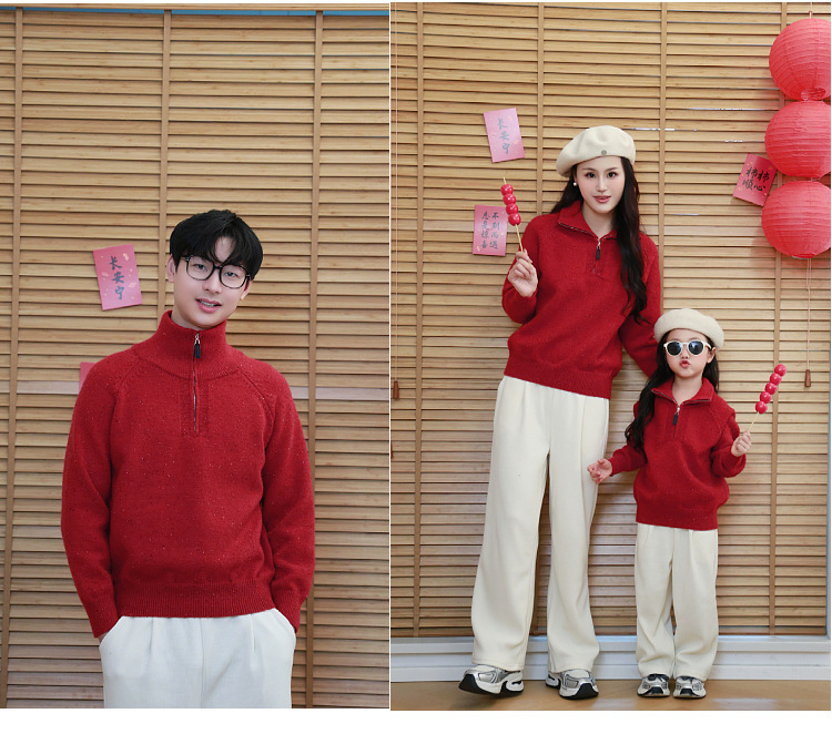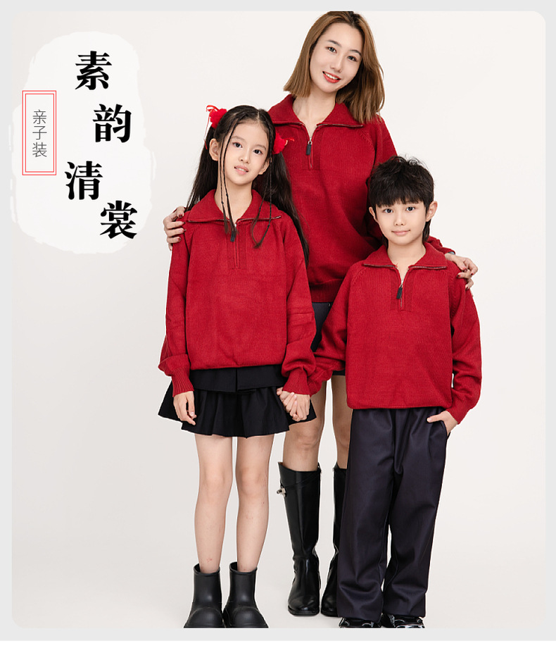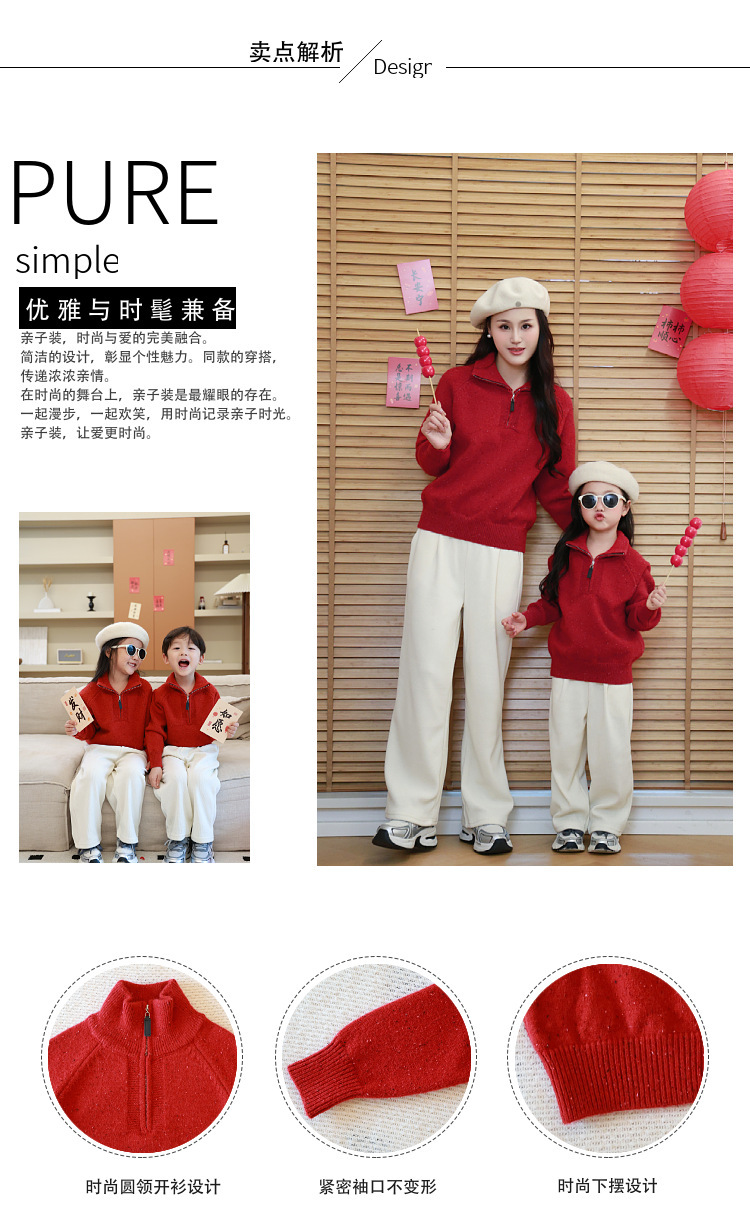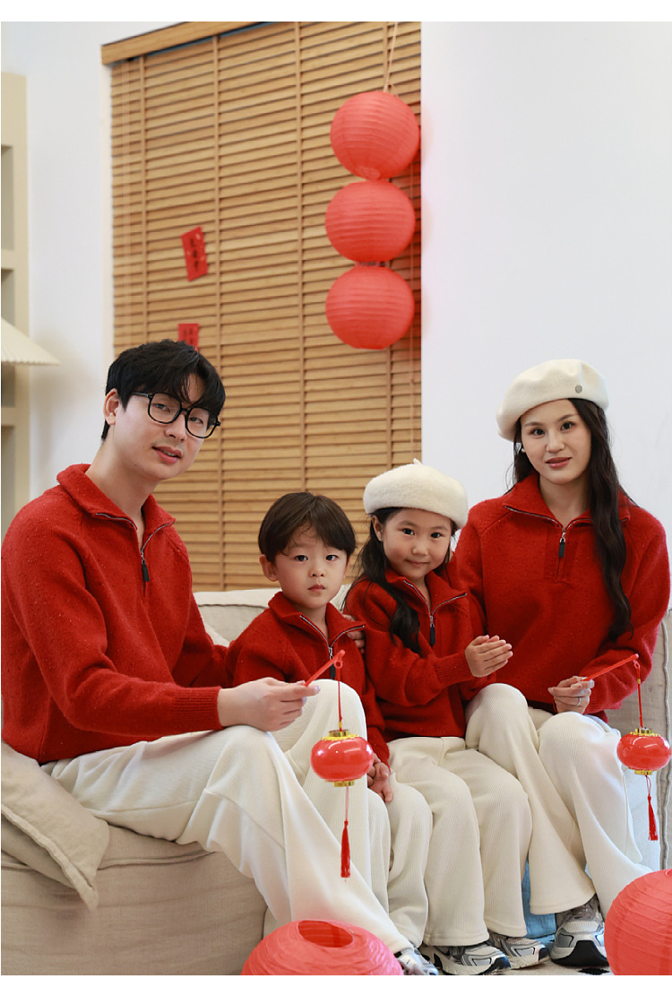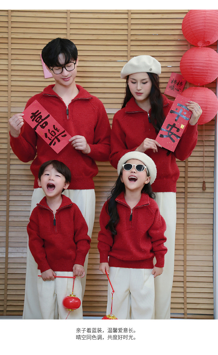 【优雅与时髦兼备❗️传递浓浓亲情】2026新年春节秋冬网红爆款翻领加厚高弹力彩点绒保暧性超好一家三口四口亲子装。jc