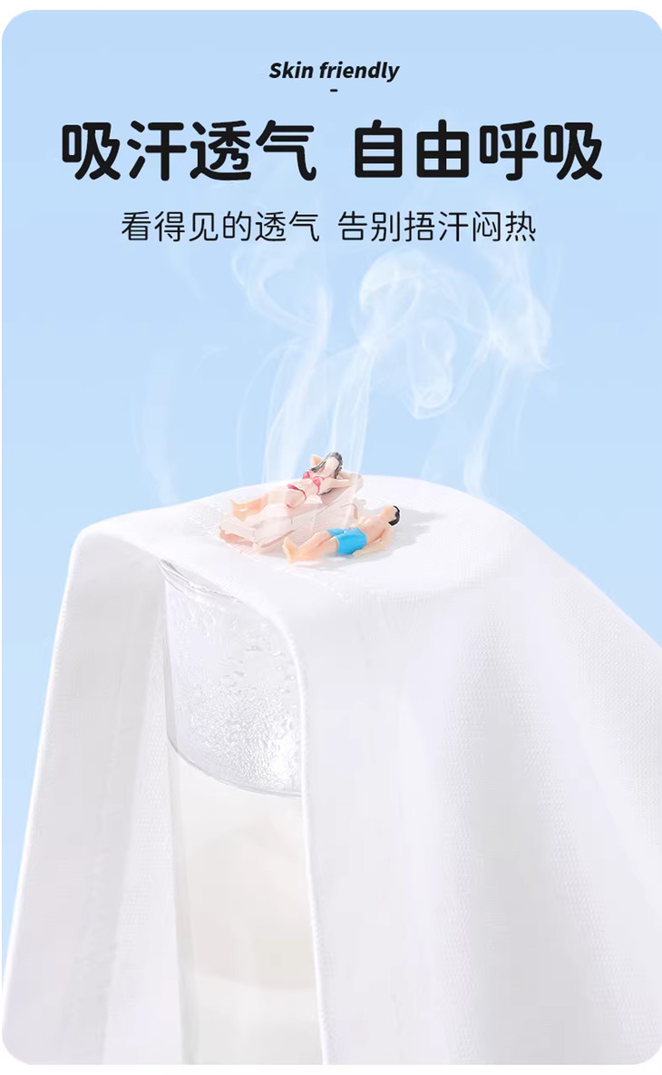 ✔ 凉感黑科技:特殊的凉感处理,接触皮肤瞬间降温, 解决普通纯棉出汗后闷热黏腻的感受。