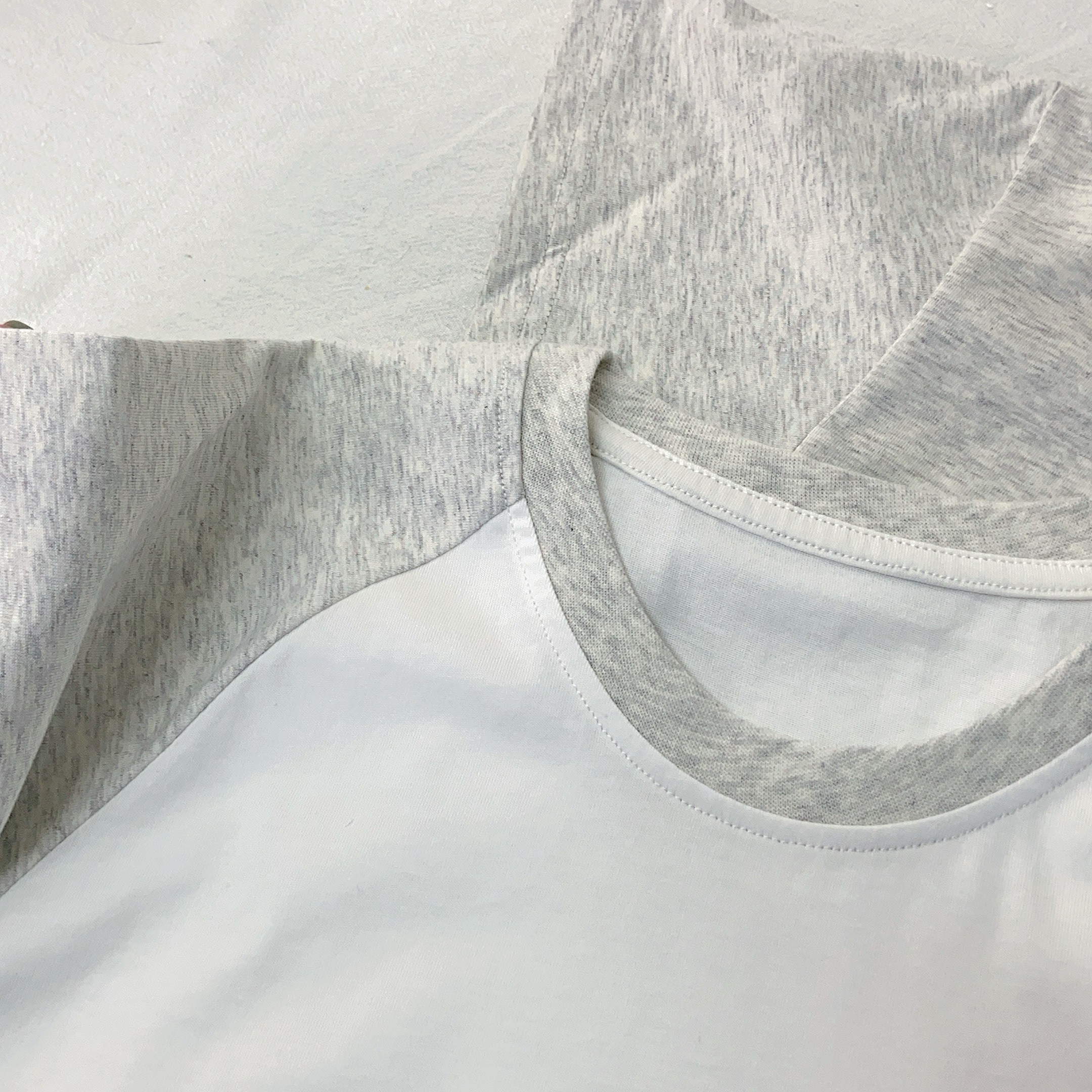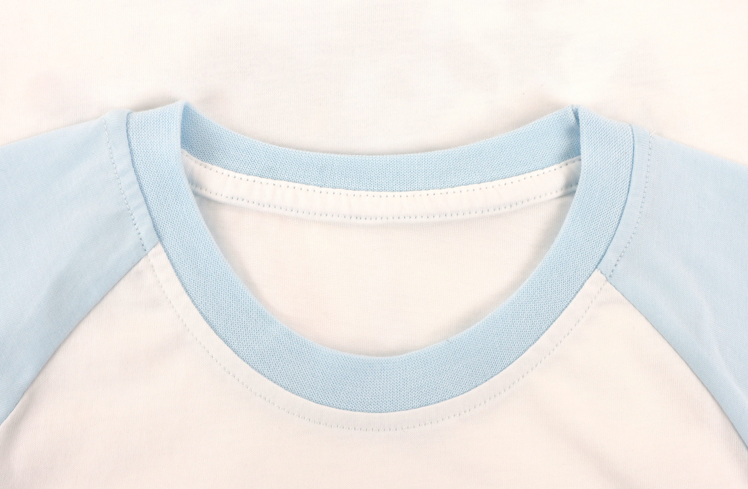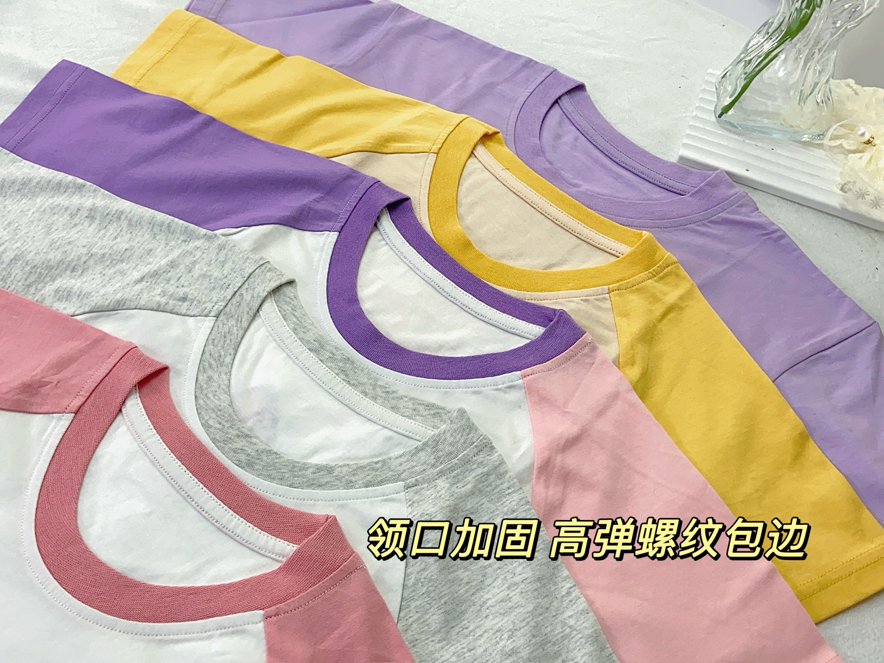 使用高弹螺纹包边,不易变形,避免多次洗涤后领口变大外翻。
