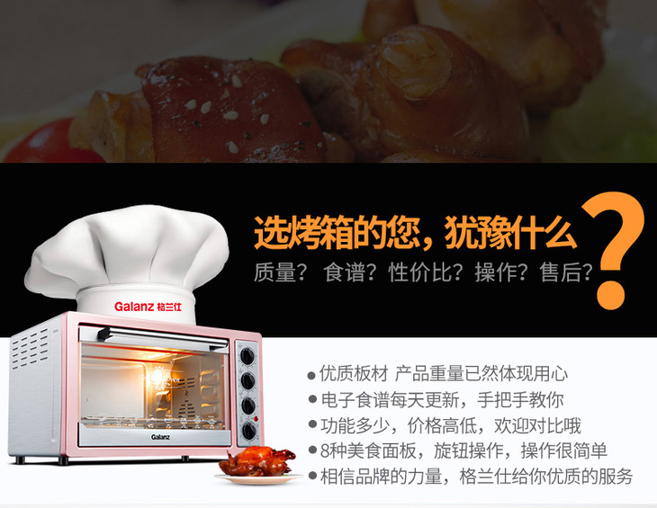 格兰仕(Galanz) 30升 独立控温 多功能烘焙 家用电烤箱 K1R 商品缩略图0 格兰仕(Galanz) 30升 独立控温 多功能烘焙 家用电烤箱 K1R 商品缩略图1 格兰仕(Galanz) 30升 独立控温 多功能烘焙 家用电烤箱 K1R 商品缩略图2 格兰仕(Galanz) 30升 独立控温 多功能烘焙 家用电烤箱 K1R 商品缩略图3 格兰仕(Galanz) 30升 独立控温 多功能烘焙 家用电烤箱 K1R 商品缩略图4