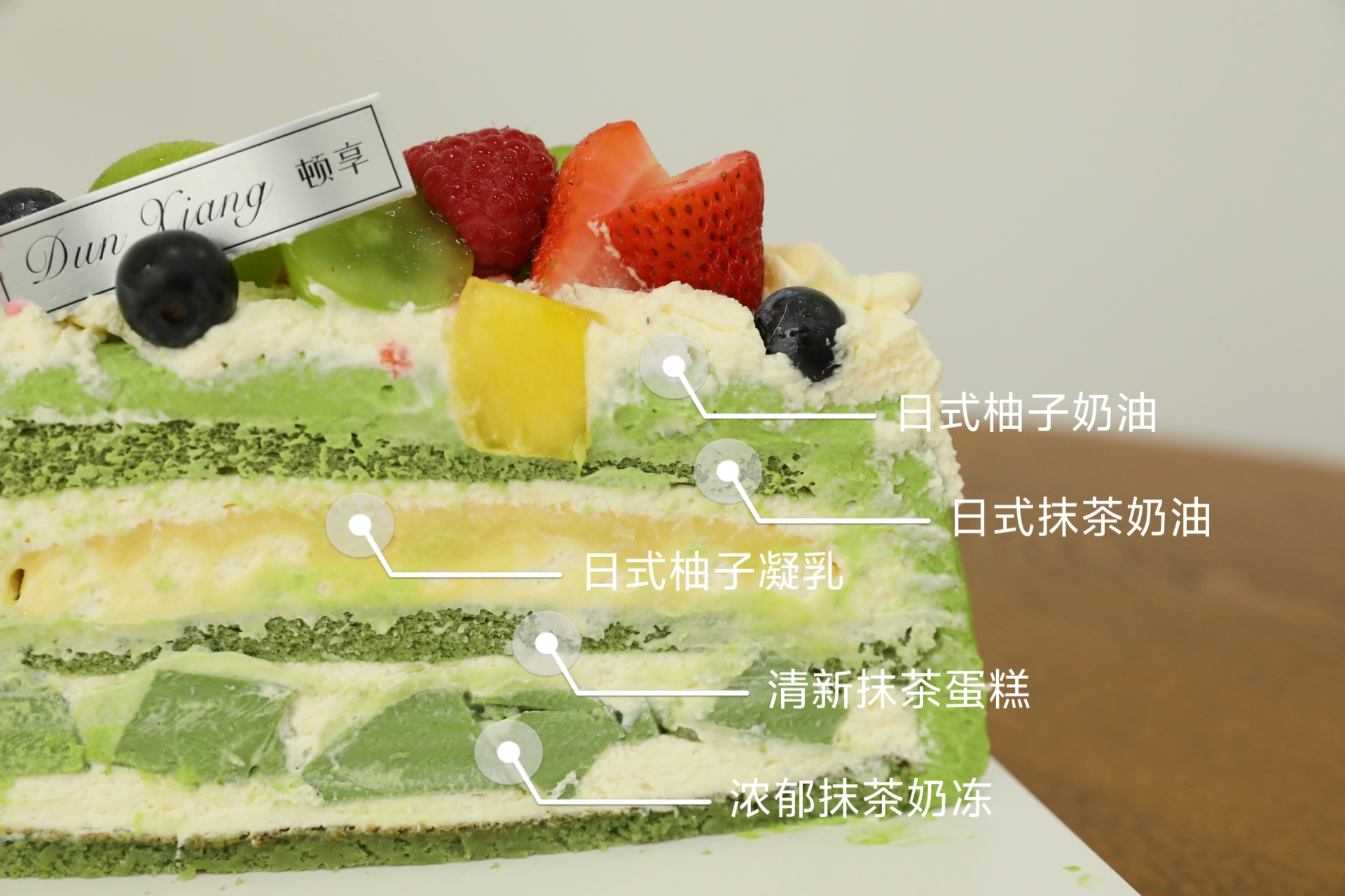 选用日本抹茶粉特调抹茶口味奶油,日本柚子果泥特调柚子口味奶油及凝乳。