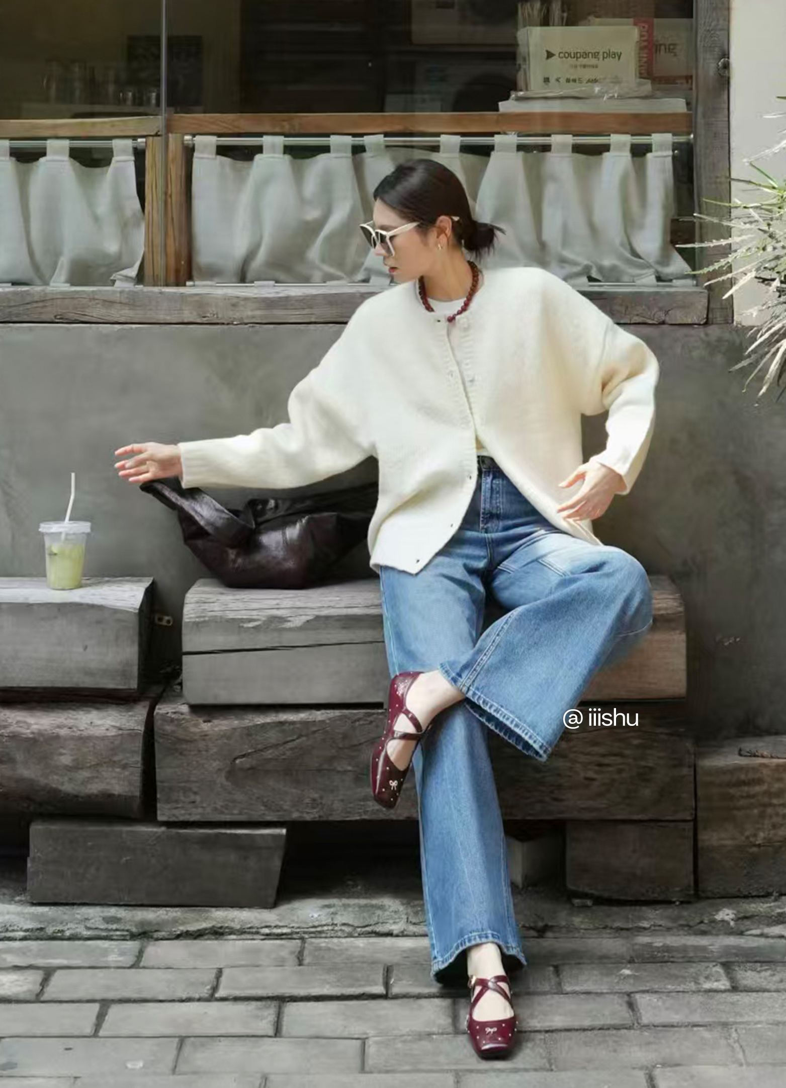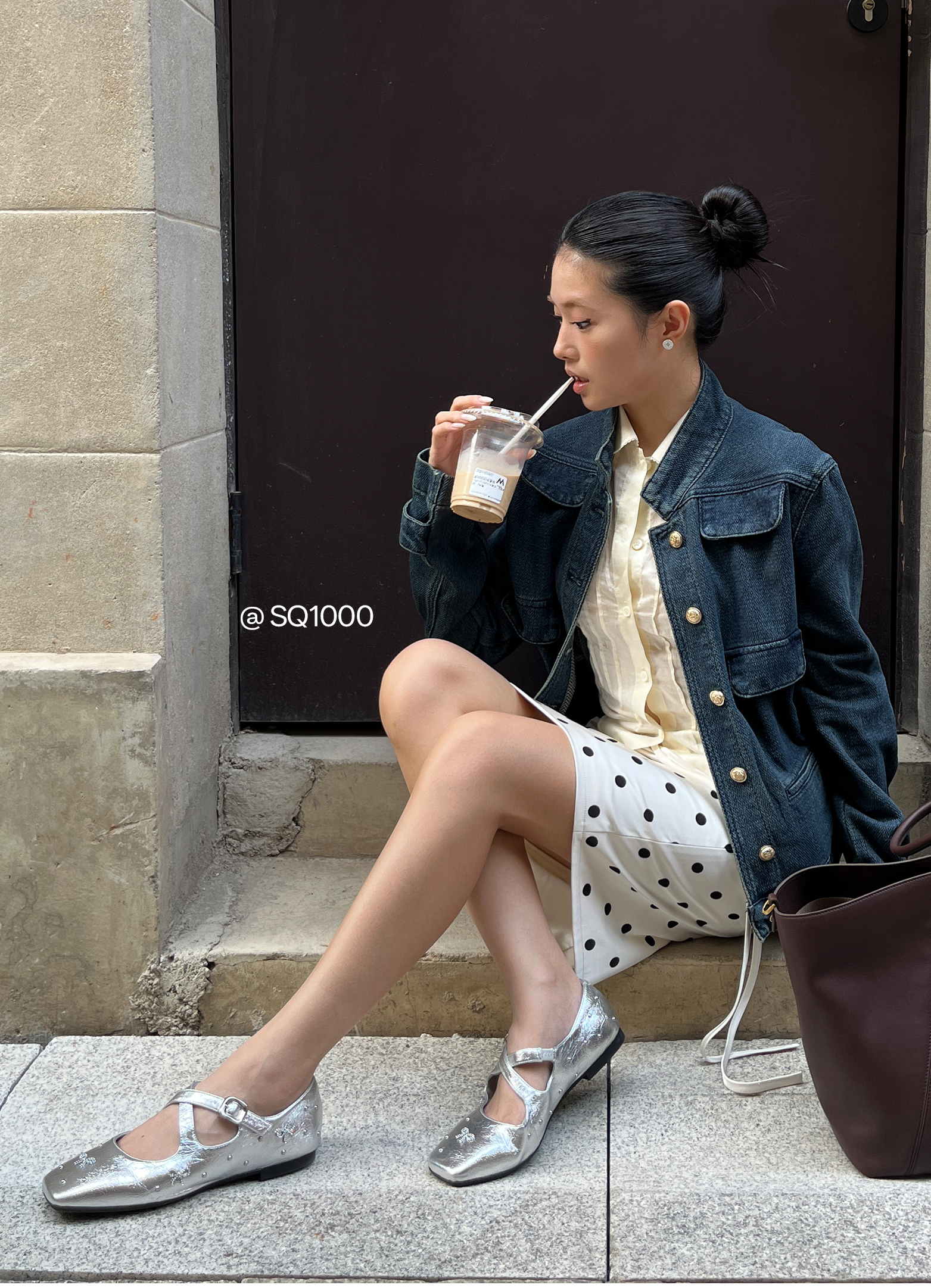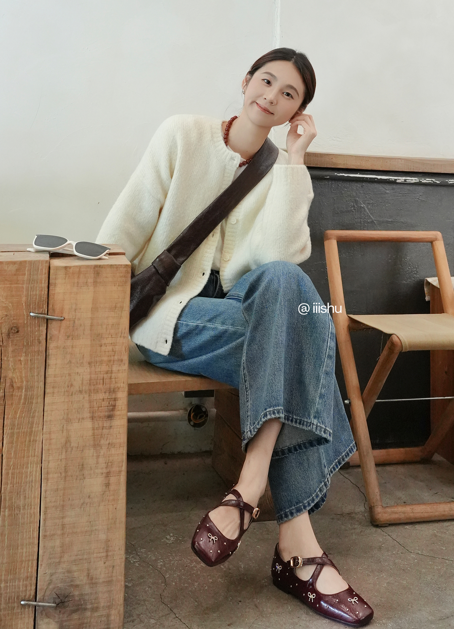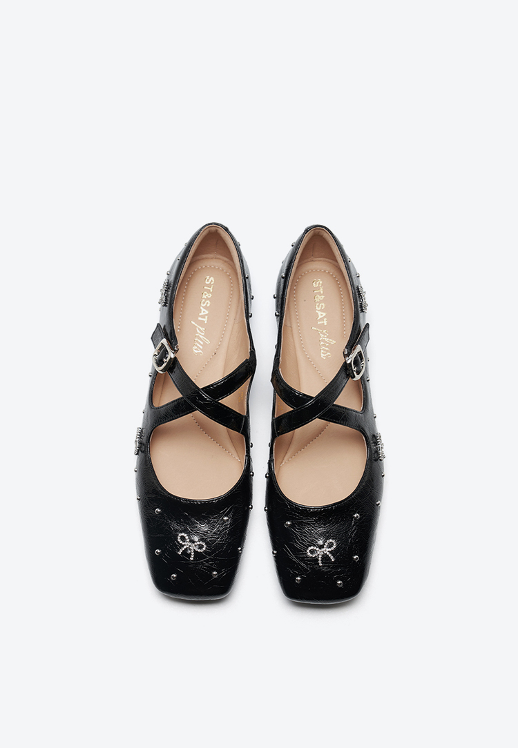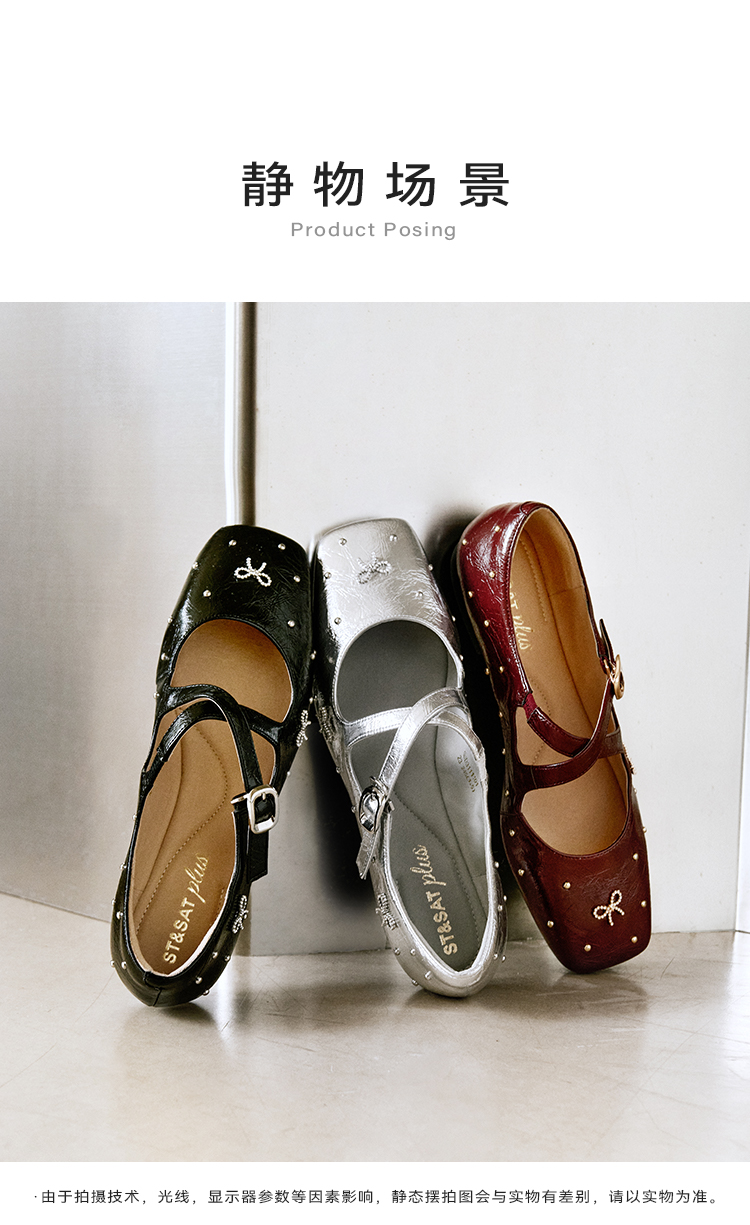 星期六复古褶皱交叉带玛丽珍SSD3111101