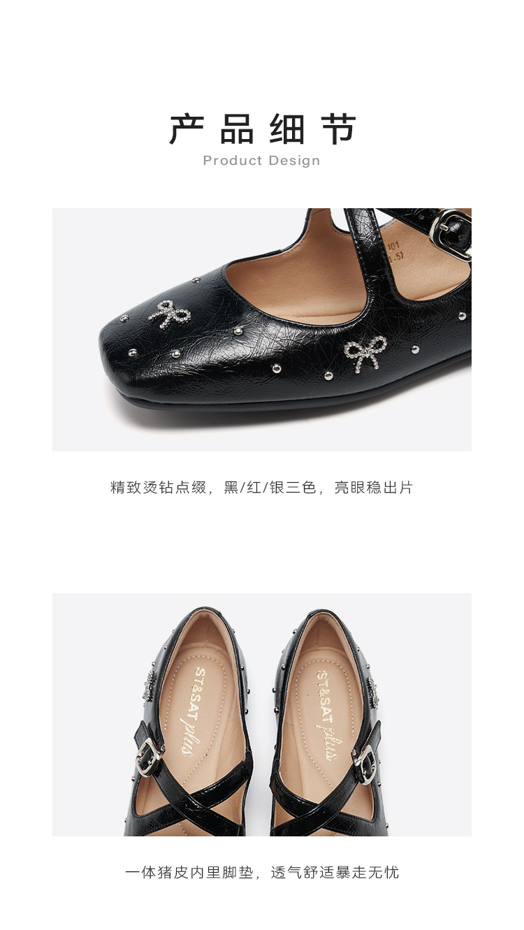 【人气新品】星期六气质水钻蝴蝶结浅口单鞋SSD1114B0J
