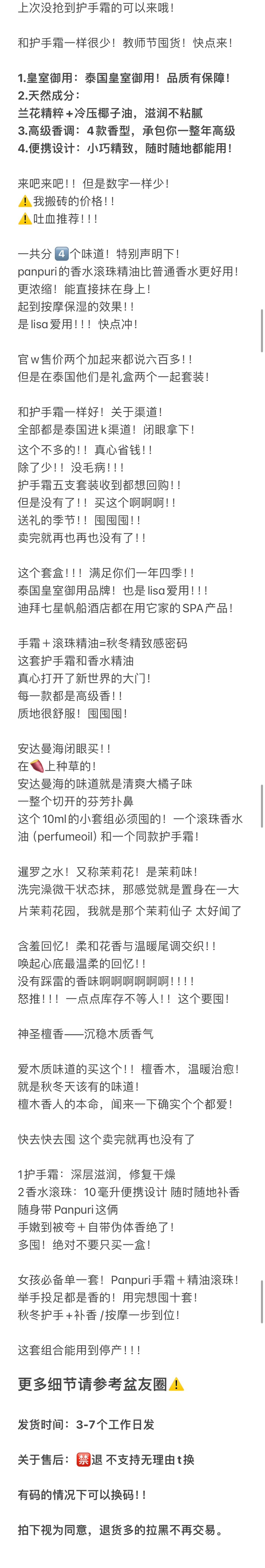泰国奢华SPA品牌 panpuri手霜/滚珠精油套装 渠道货 自留送礼 护手霜礼盒